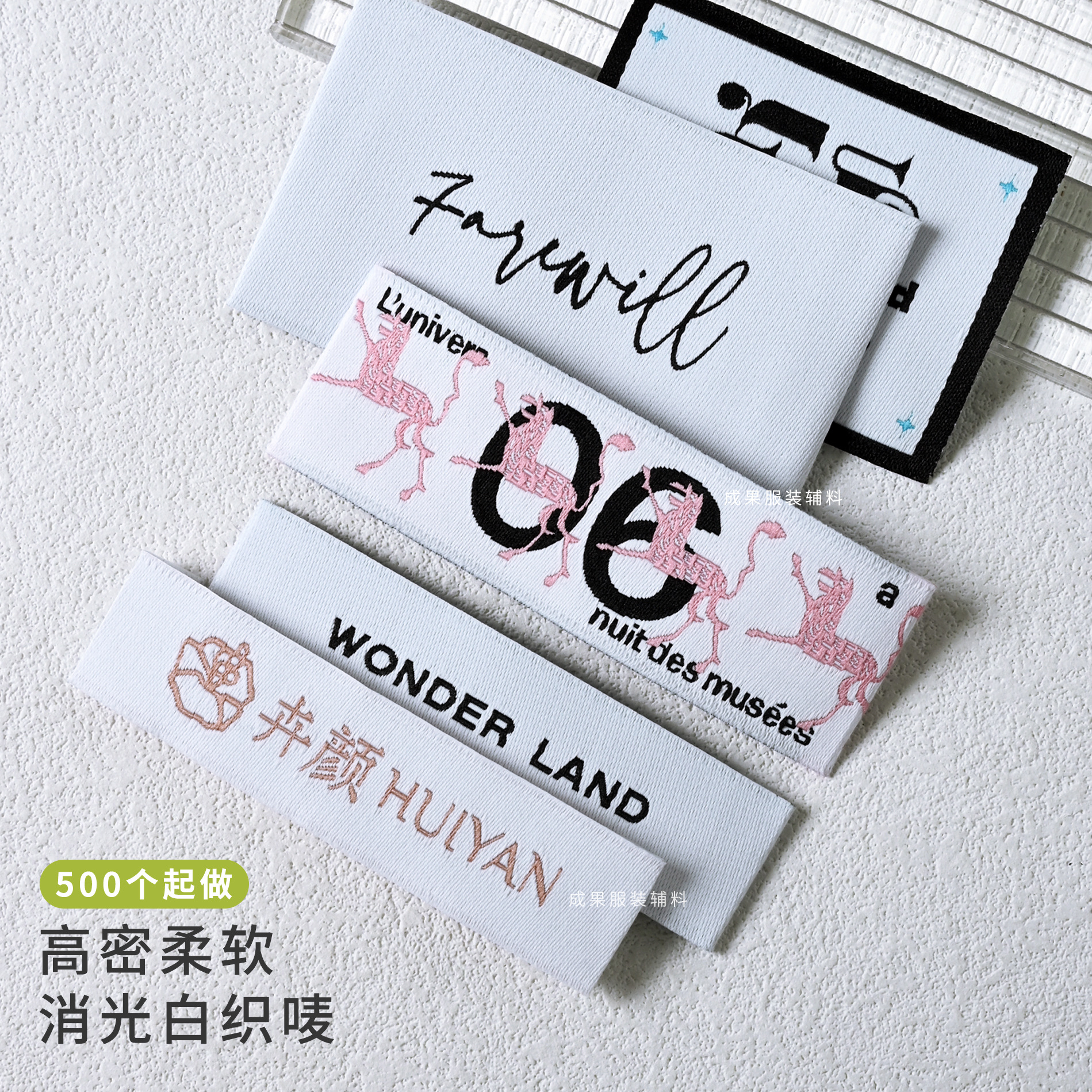 • 고밀도의 부드러운 무광택 흰색 직조 라벨
