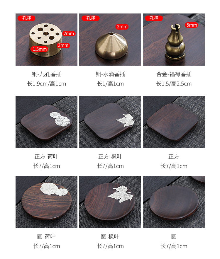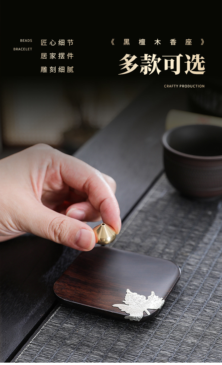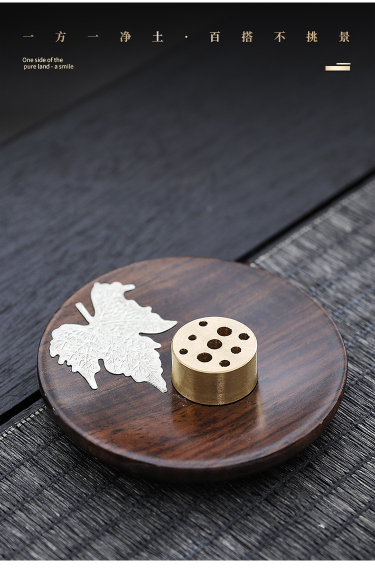 • 둥근 흑단 단풍잎 향판 + 구리 물방울 향 삽입물