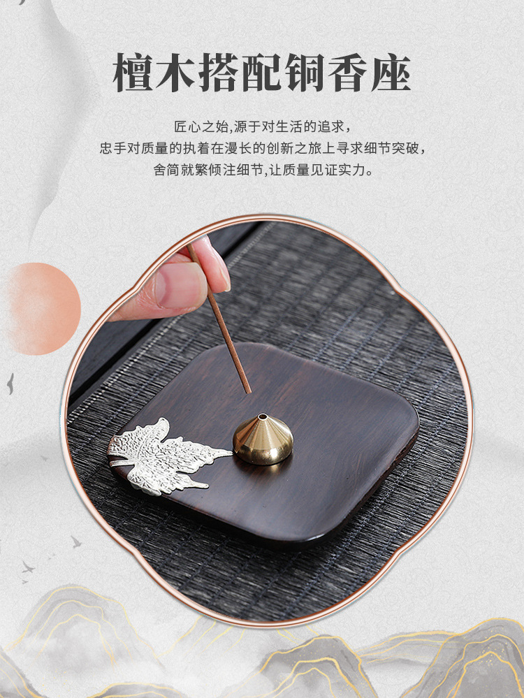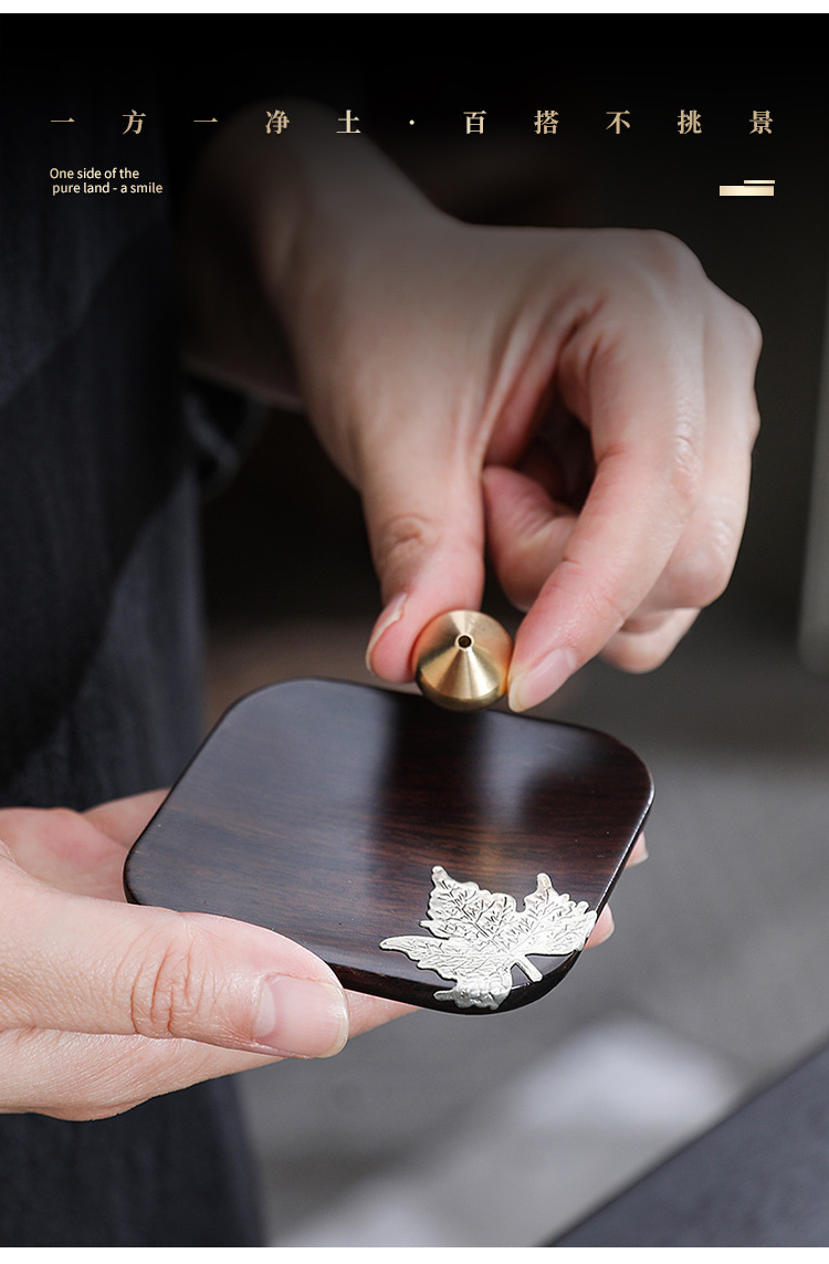 • 사각 흑단 단풍잎 향판 + 구리 물방울 향