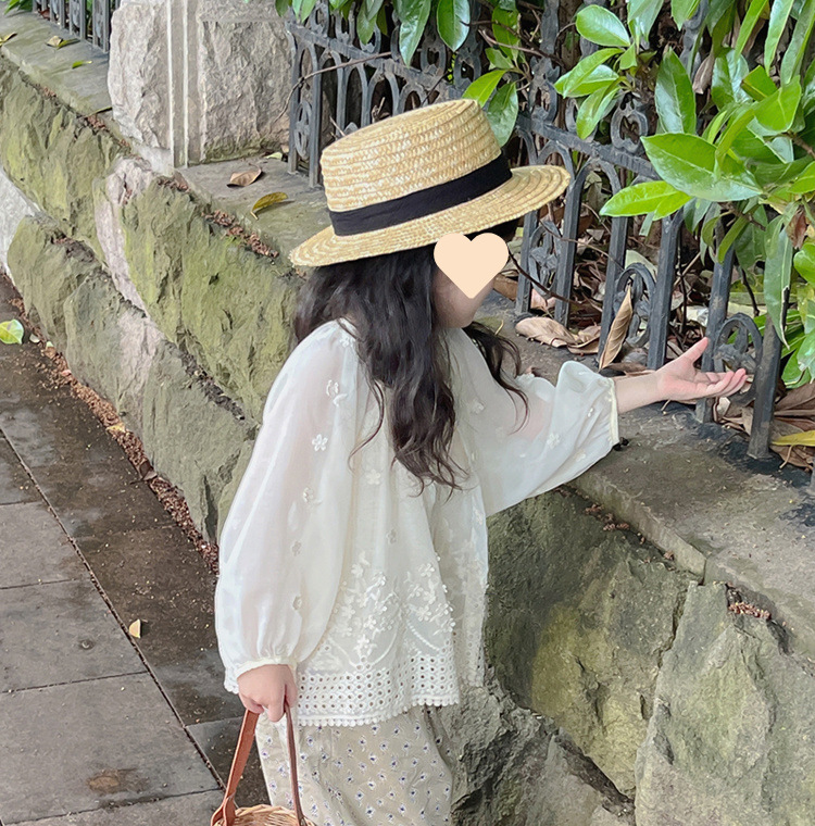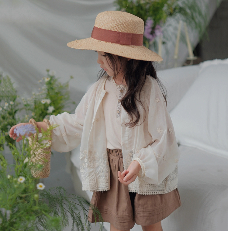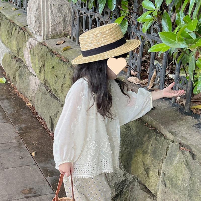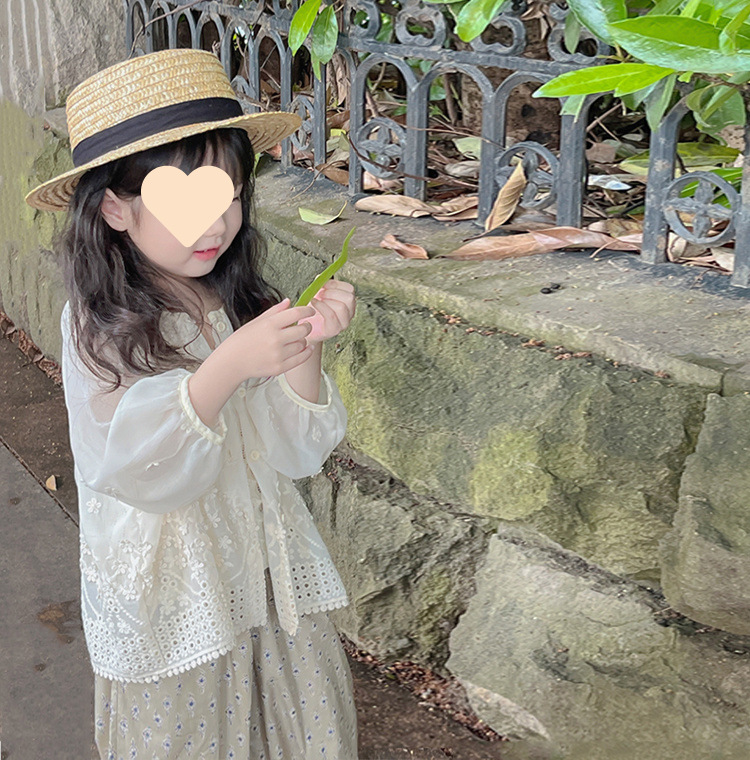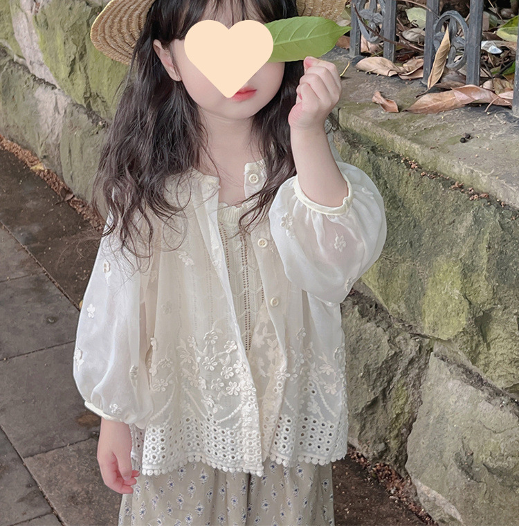 [1464 명] 여자 여름 얇은 태양 보호 의류 2025 새로운 중소 아기 소녀 자수 외국 스타일 착용