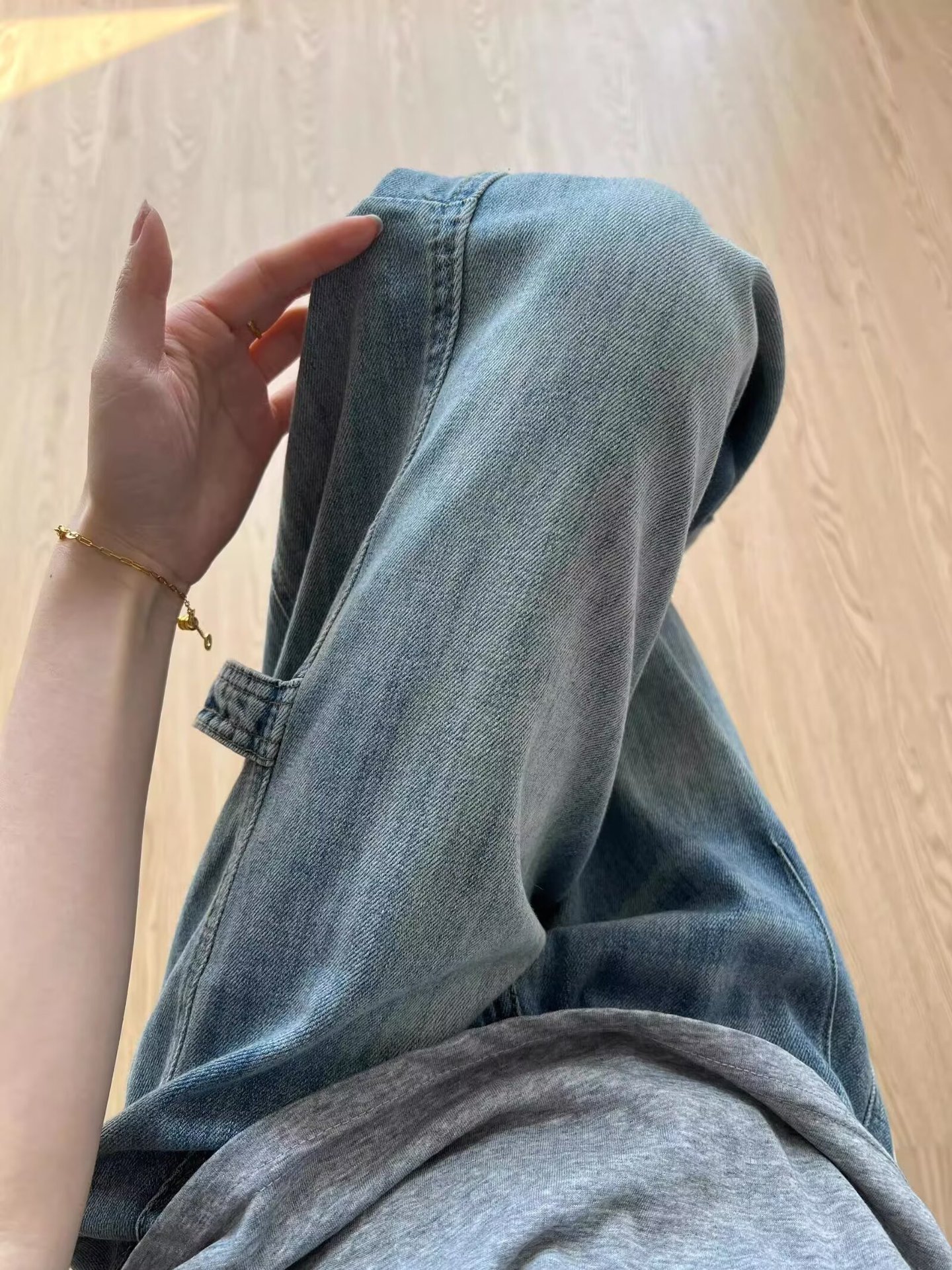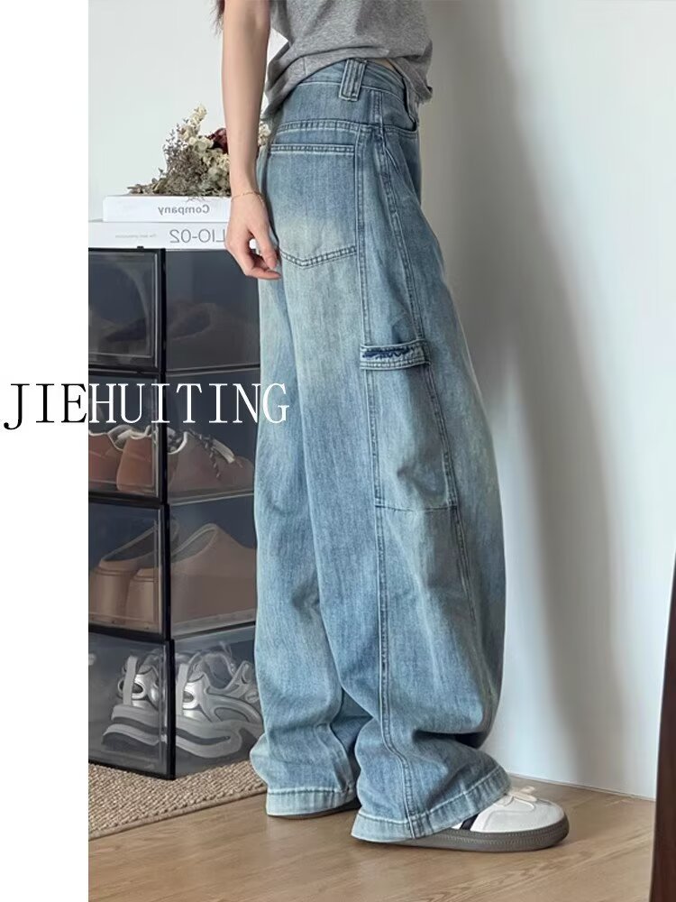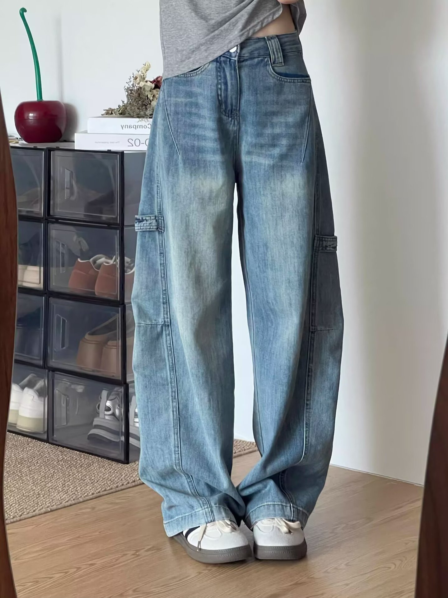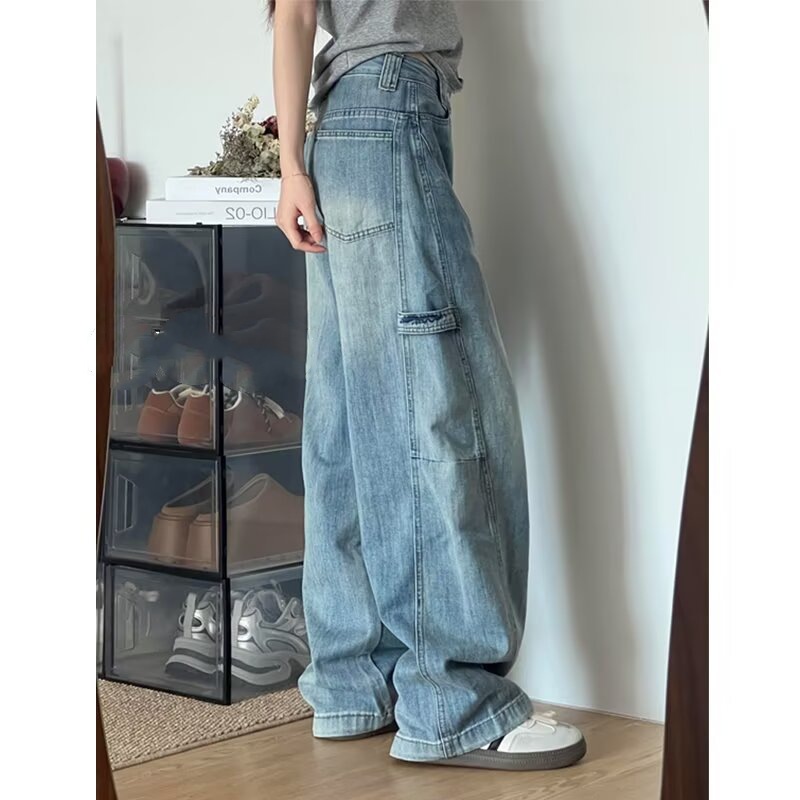 국경 간 복고풍 씻은 와이드 레그 청바지 여성의 봄 2025 새로운 하이 웨이스트 딥 루즈 스트레이트 슬리밍 시미 터