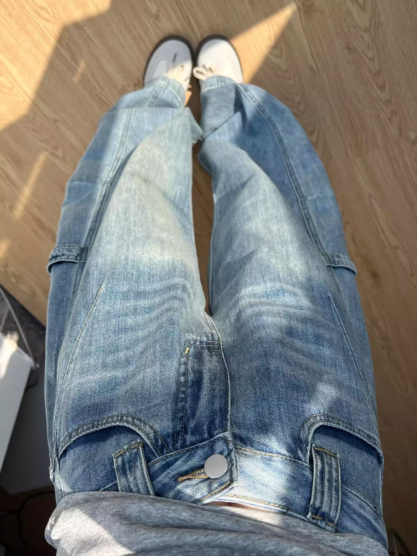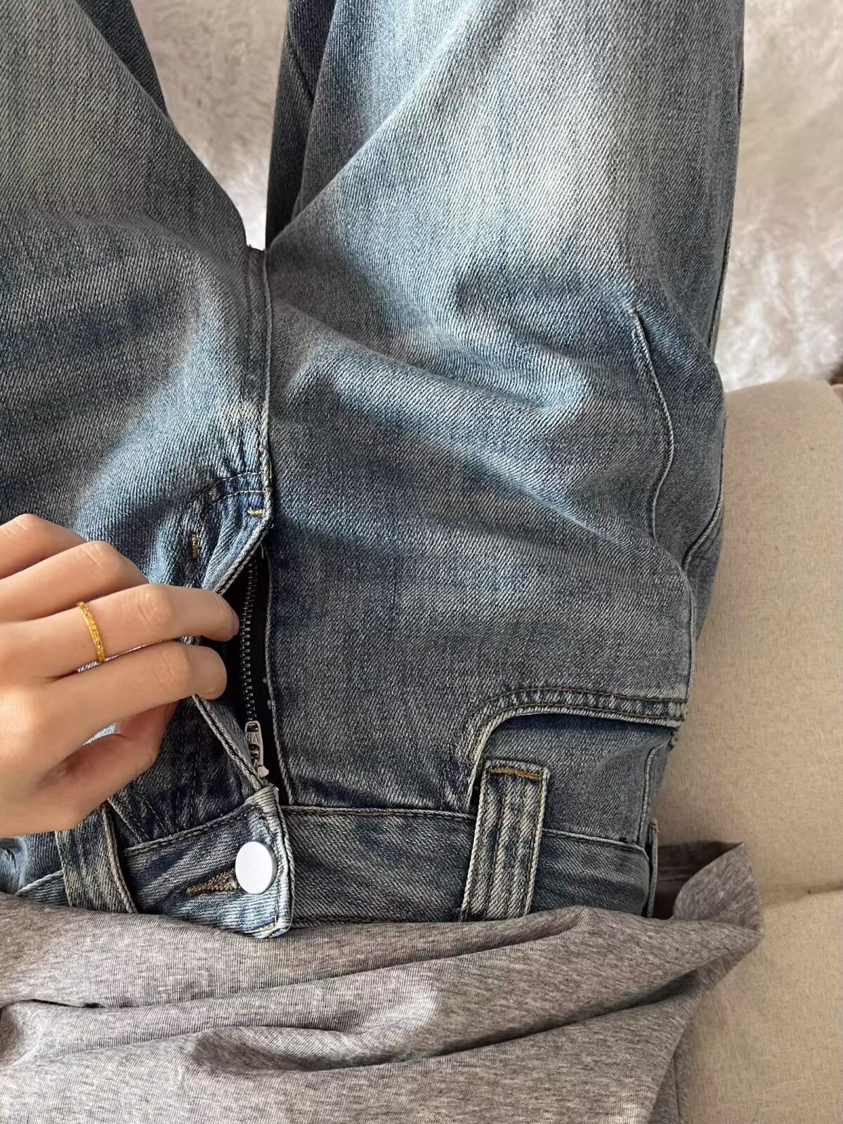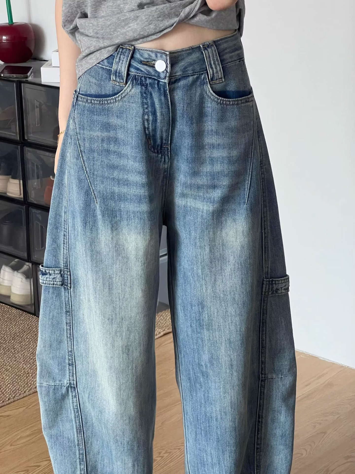 국경 간 복고풍 씻은 와이드 레그 청바지 여성의 봄 2025 새로운 하이 웨이스트 딥 루즈 스트레이트 슬리밍 시미 터
