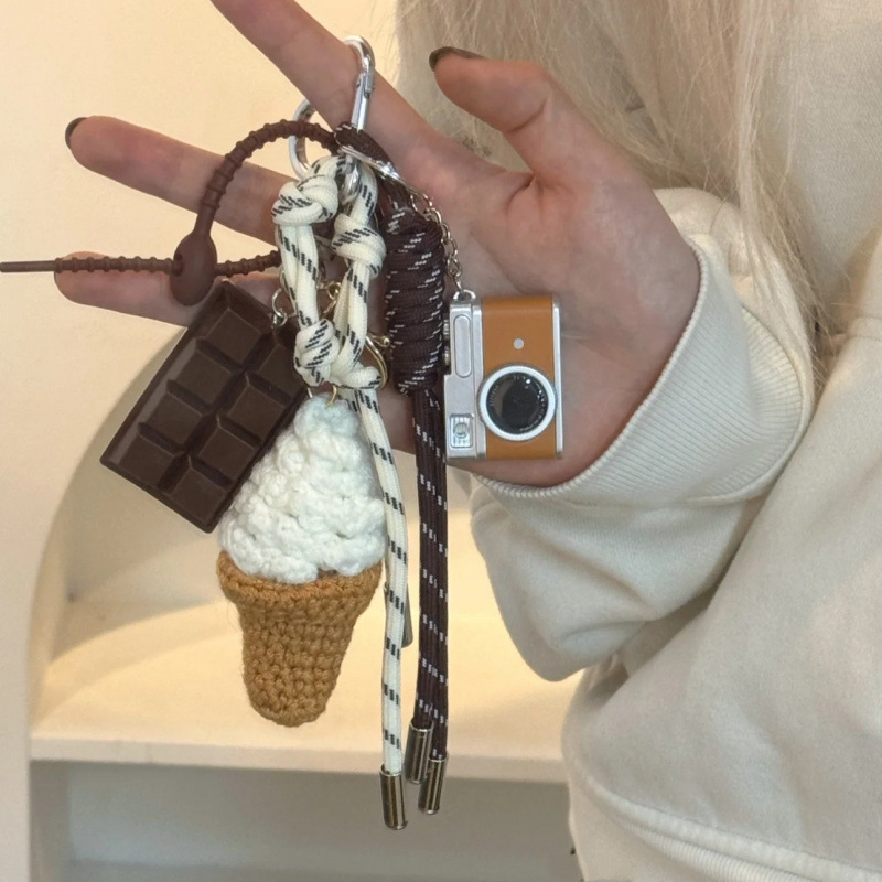 • 크로셰 아이스크림 브라운 카메라 M 스타일 펜던트