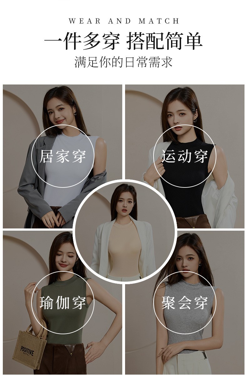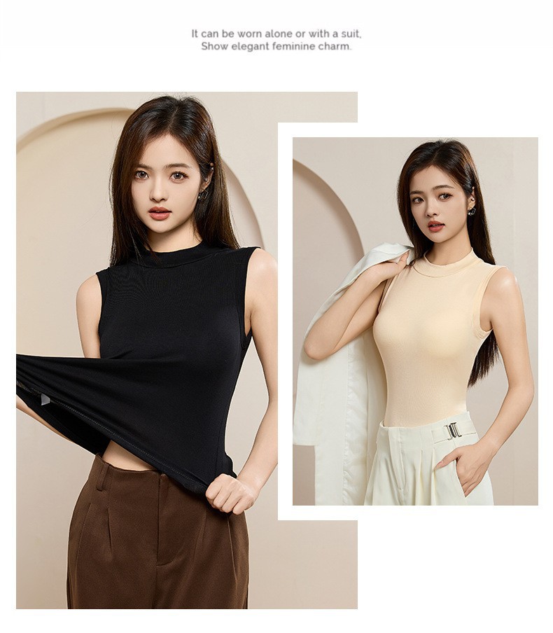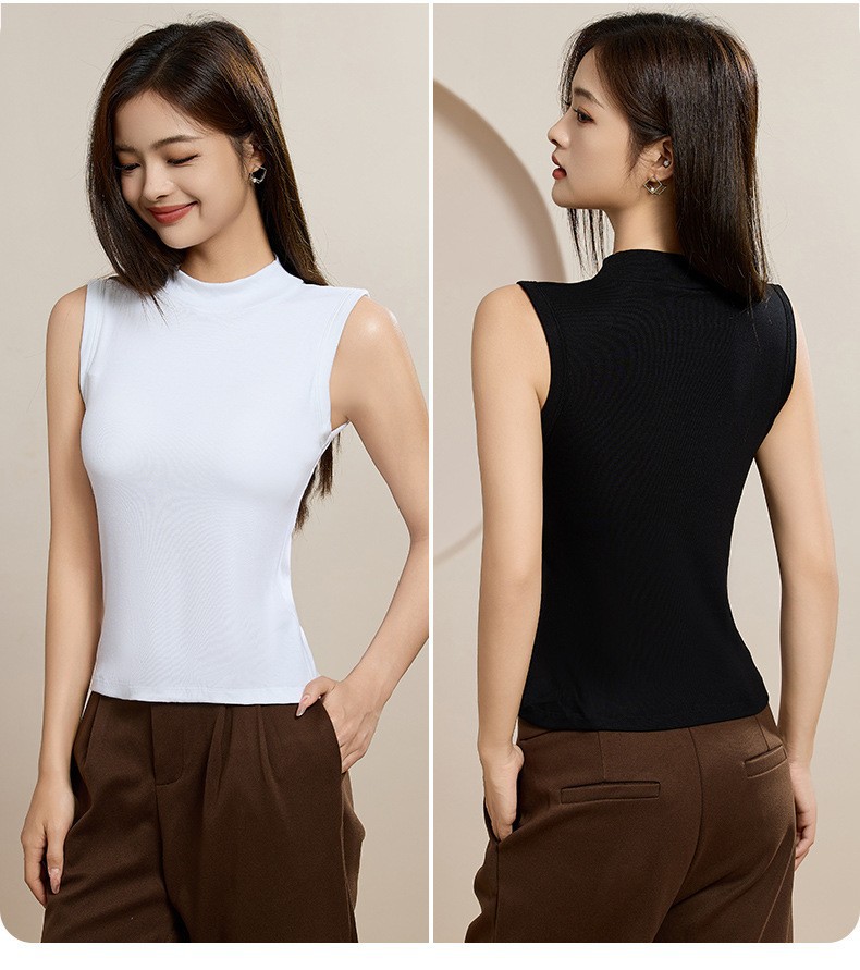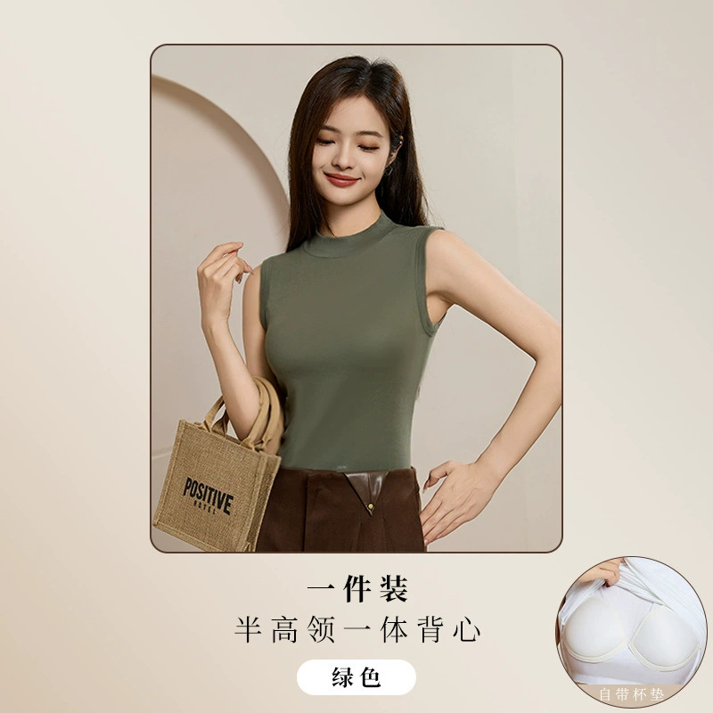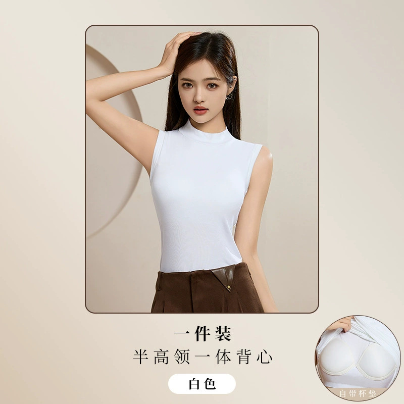 브래지어 원피스 하프 하이 넥 민소매 조끼 여성 내부 벨트 가슴 패드 여성 아우터웨어 서스펜더베이스 셔츠 커버 파라 맨