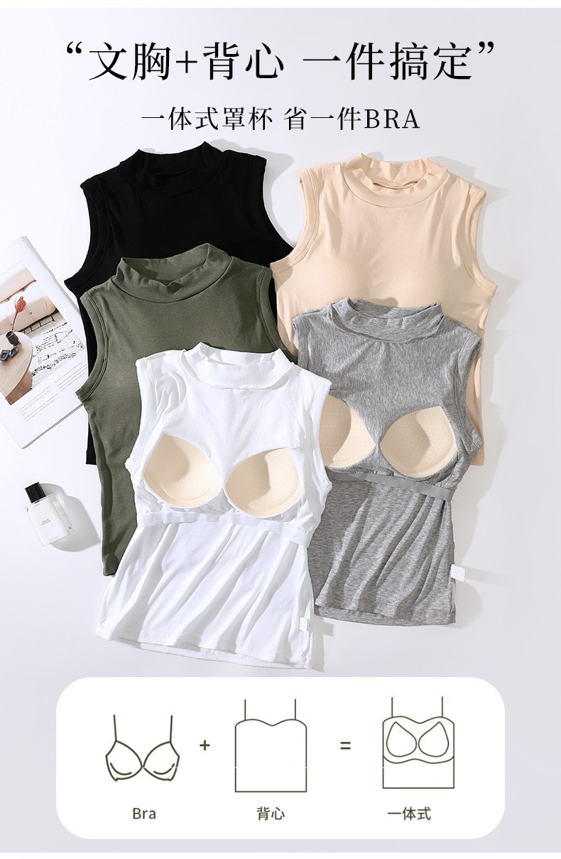 브래지어 원피스 하프 하이 넥 민소매 조끼 여성 내부 벨트 가슴 패드 여성 아우터웨어 서스펜더베이스 셔츠 커버 파라 맨스토어 가기