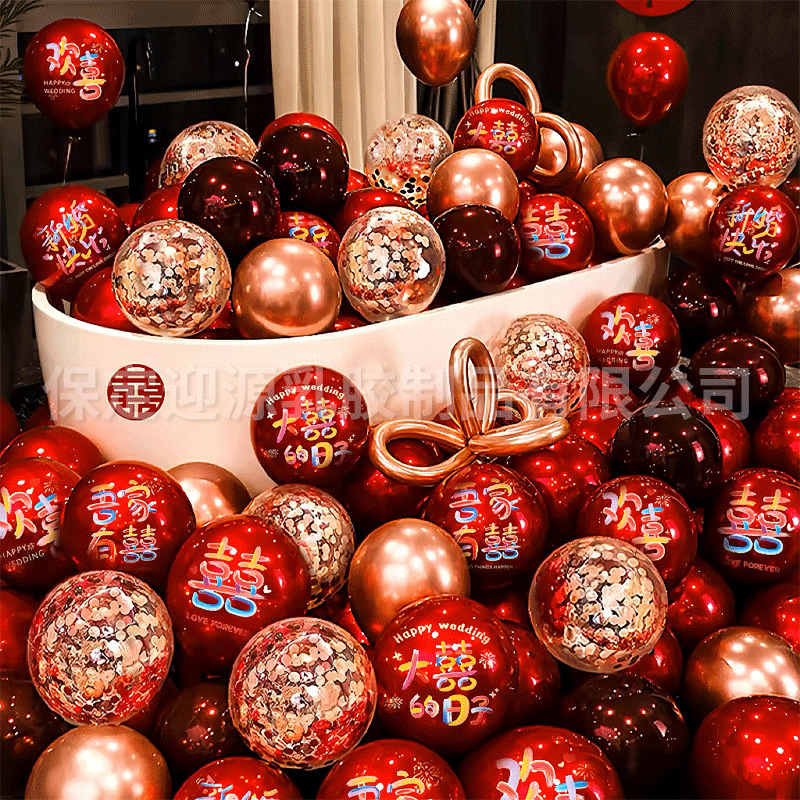 공장 도매 더블 도파민 컬러 웨딩 풍선 결혼식 약혼 장식 석류 붉은 풍선스토어 가기