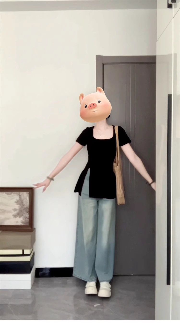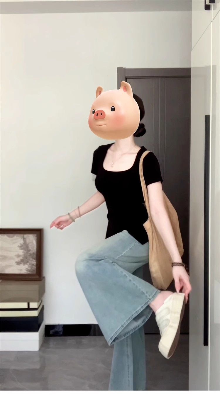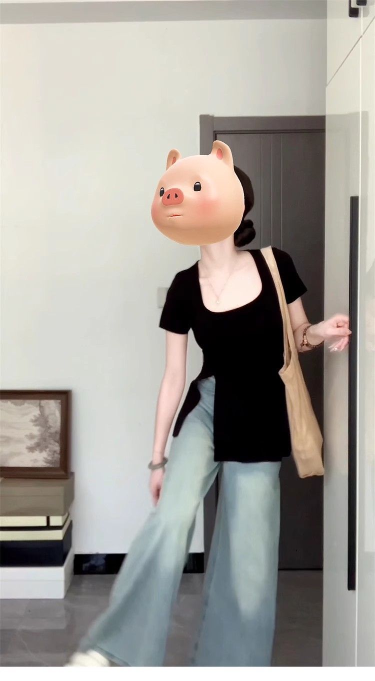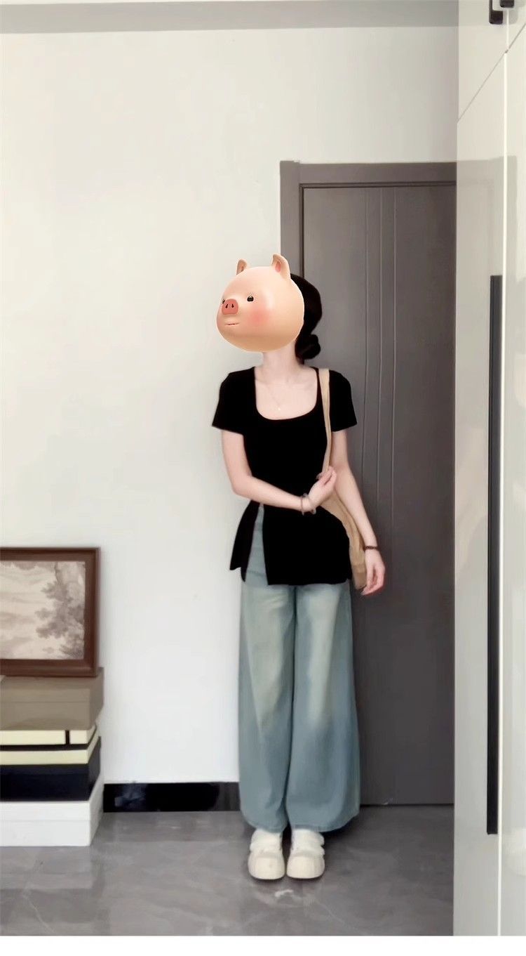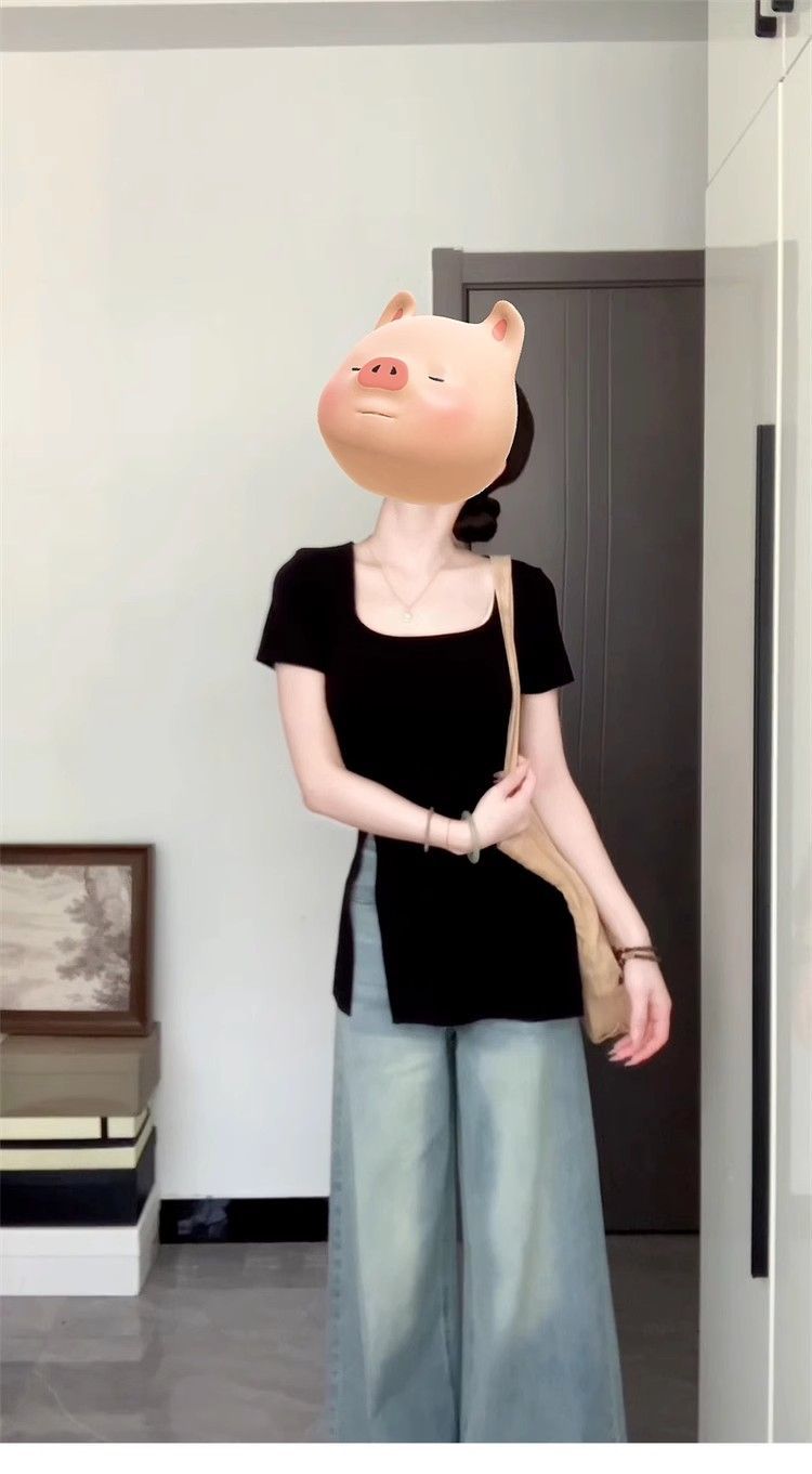 프렌치 스퀘어 칼라 블랙 반팔 티셔츠 여성 여름 2025 뉴 플러스 사이즈 통통녀 타이트 허리 스플릿 슬리밍 탑스토어 가기