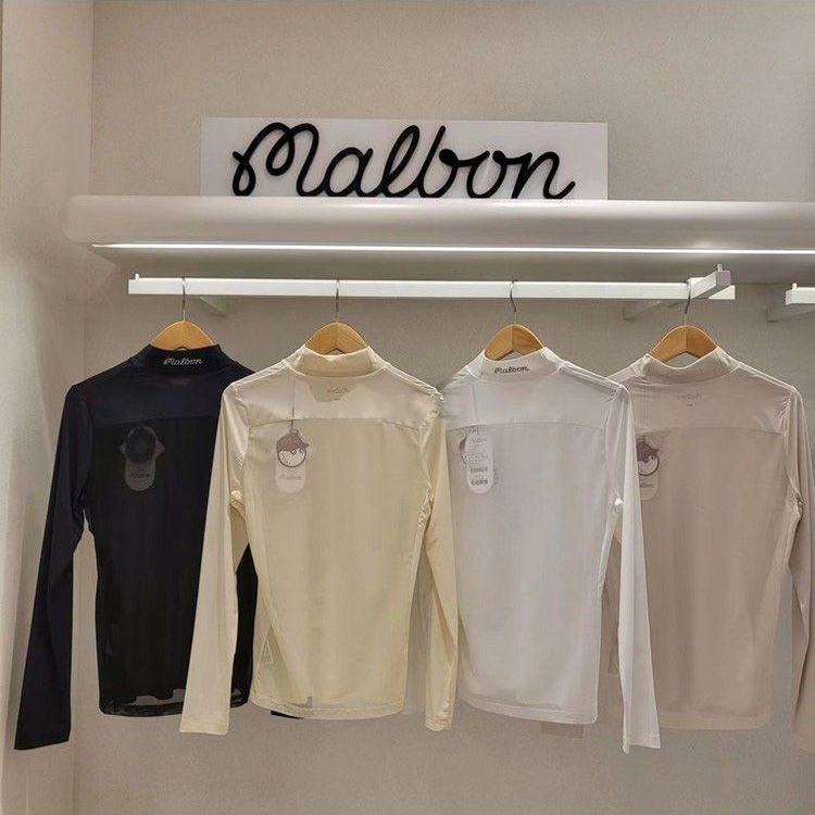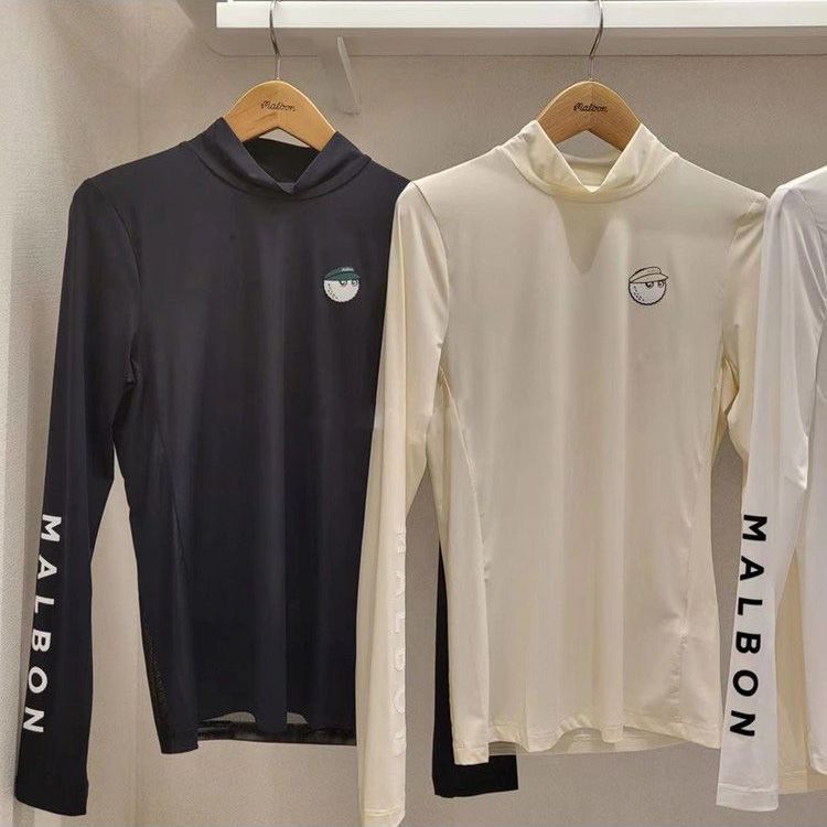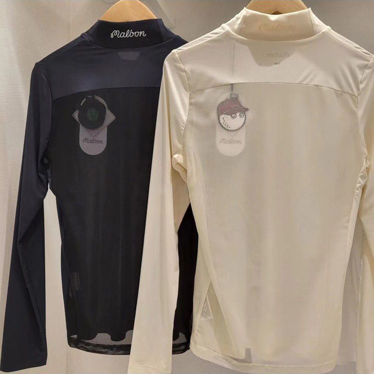 새로운 골프 여름 여성 스타일 스탠드 칼라 라운드 넥 골프 바닥 긴팔 티셔츠 메쉬 통기성스토어 가기