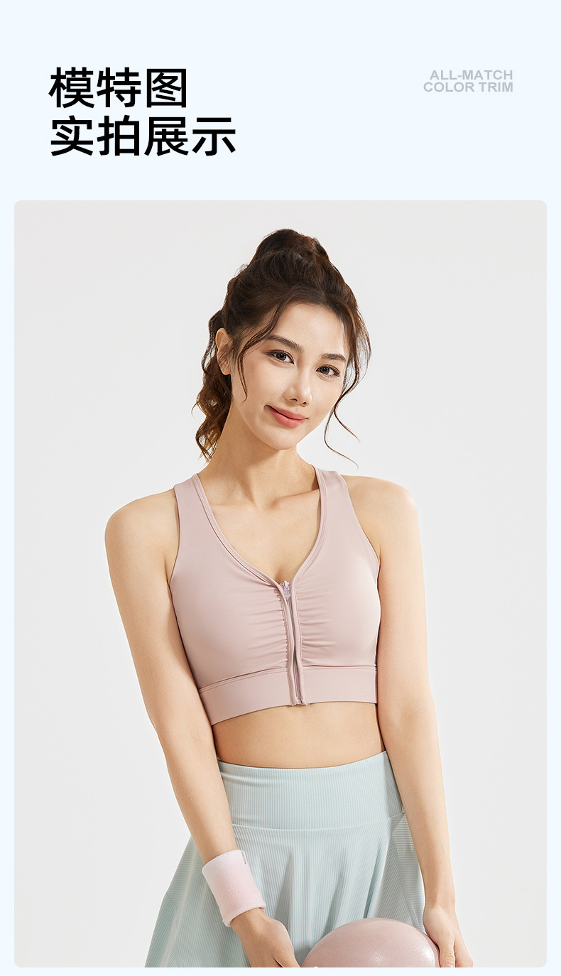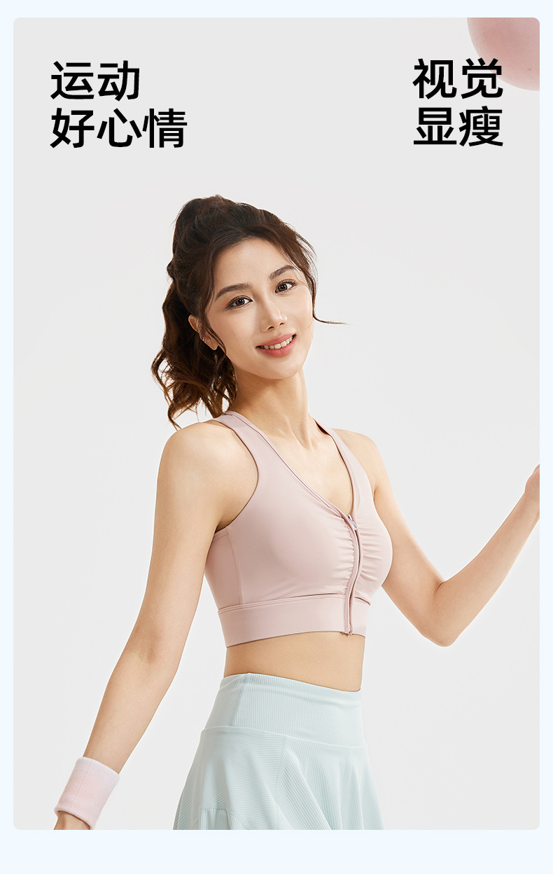 가슴이 작은 여성을 위한 앞지퍼 스포츠 조끼, 빅브라, 필라테스 요가복, 피트니스 앞가슴 플리츠 푸쉬업 속옷스토어 가기