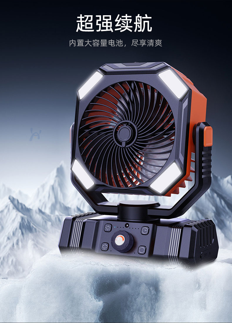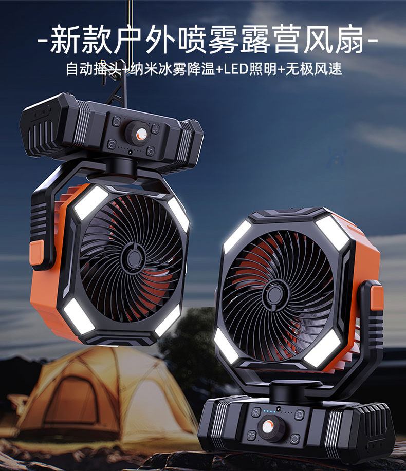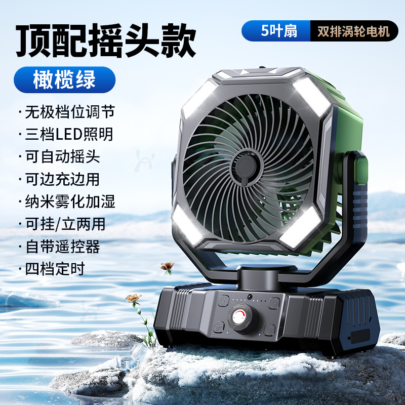 새로운 야외 캠핑 충전 전기 팬 usb 휴대용 쉐이킹 헤드 냉동 에어컨 낚시 캠핑 텐트 강풍