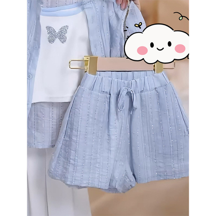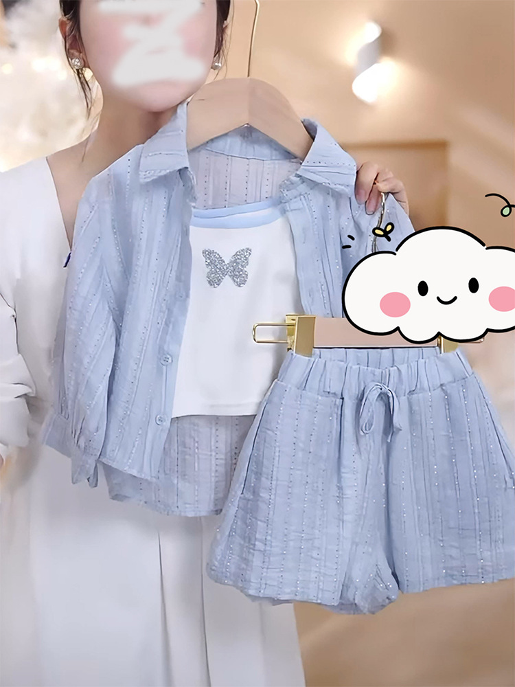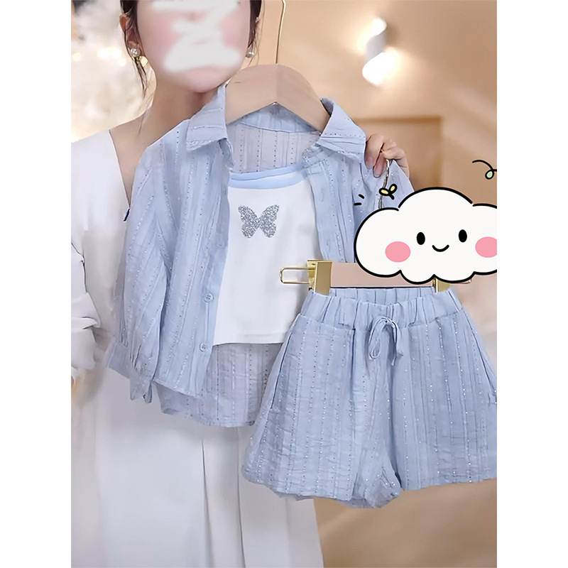 소녀 한국식 여름 세트 2025 새 스타일 재킷 반바지 캐주얼 3 피스 세트 어린 소녀 아동복스토어 가기