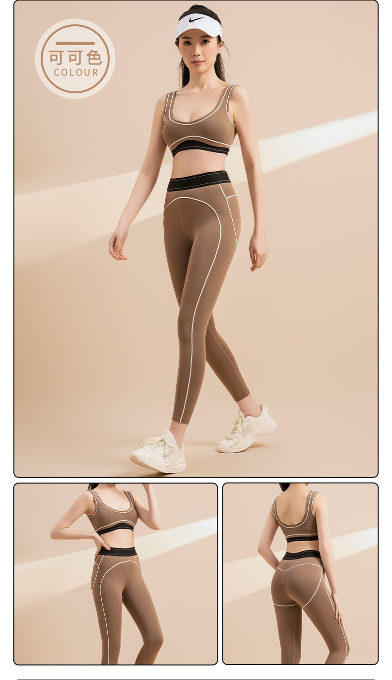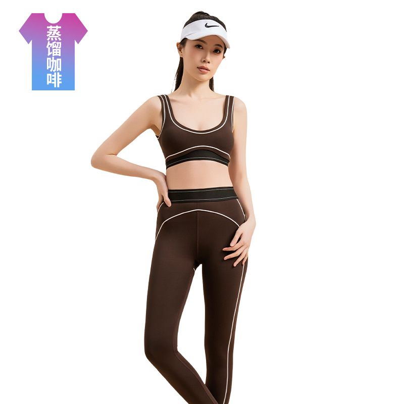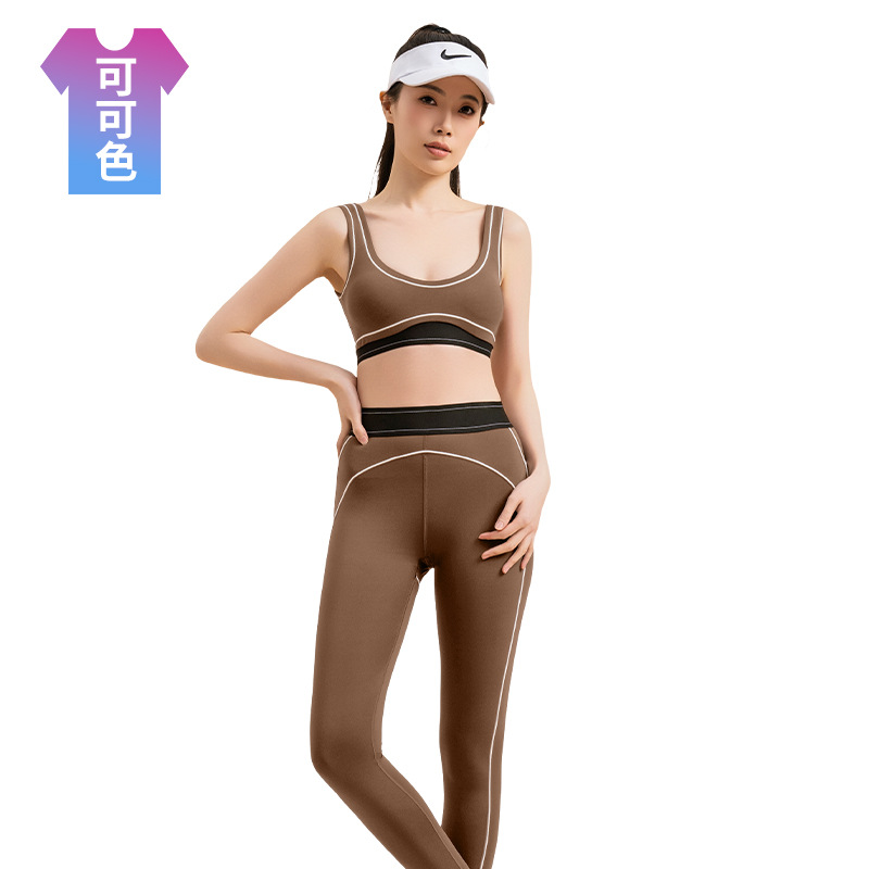 폭발성 인레이 컬러 알몸 요가 브래지어 바지 수분 흡수 및 땀 빠른 건조 달리기 스포츠 피트니스 의류 세트스토어 가기