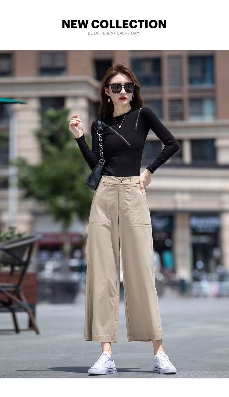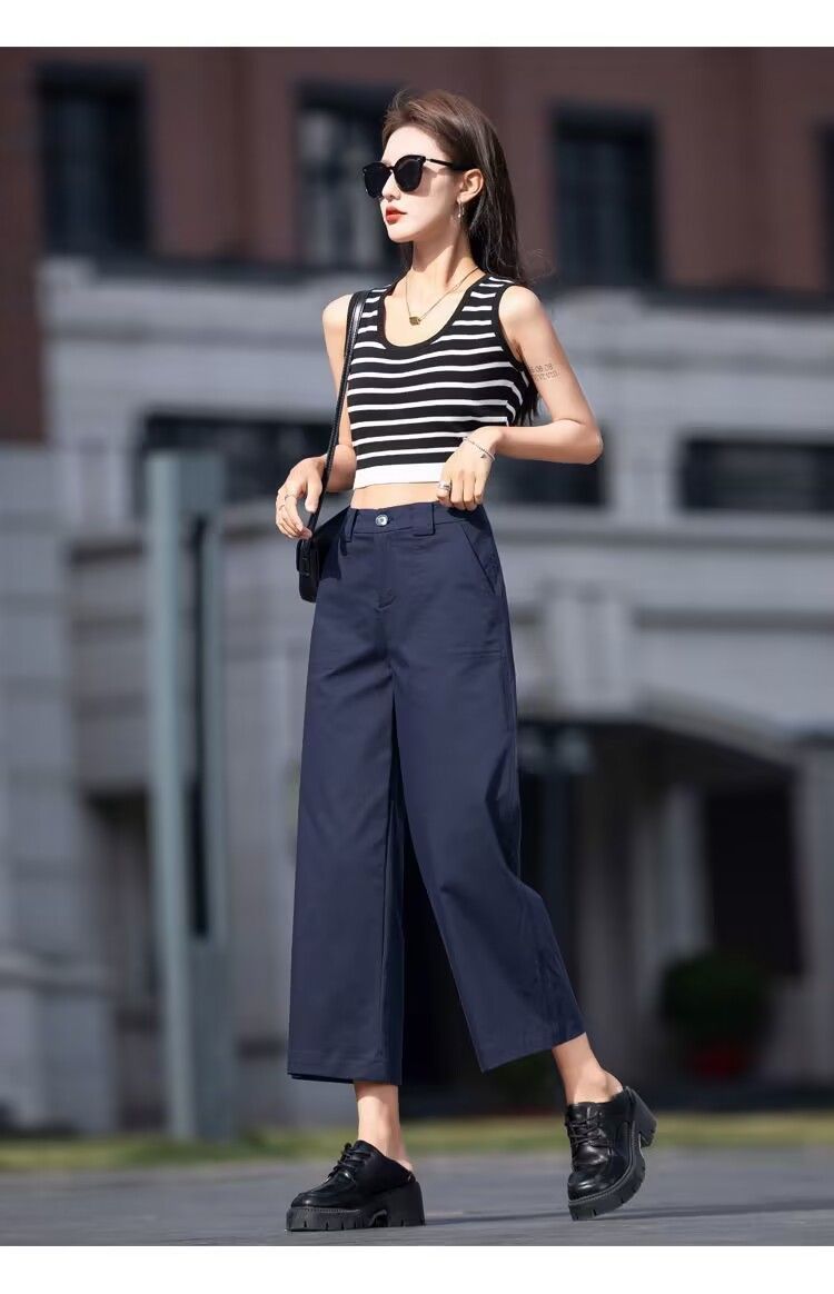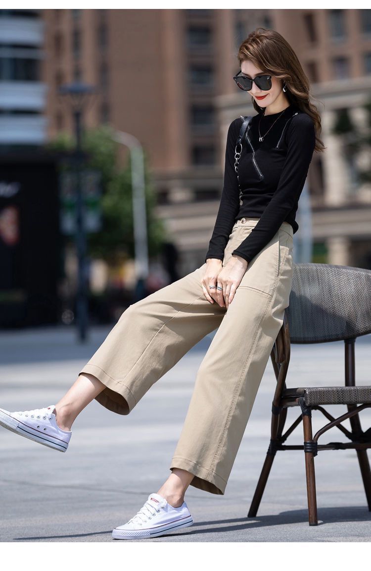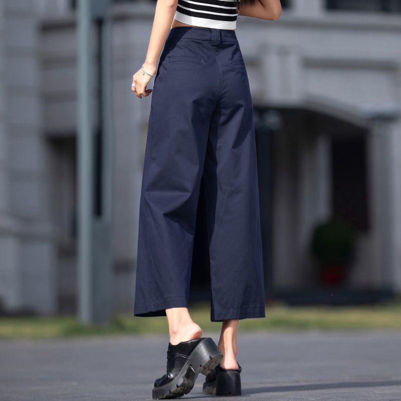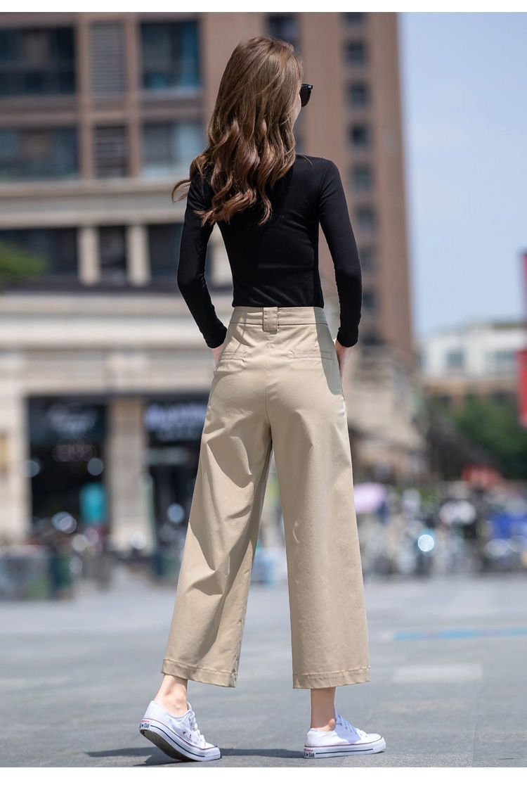 짧은 자른 바지 여성용 고급 서양식 유행 바지 블랙 바지 여성용 여름 얇은 카키 와이드 레그 바지