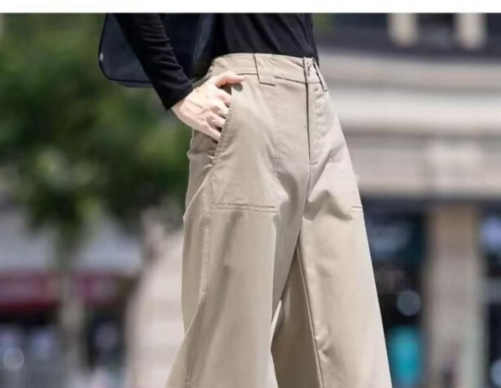 짧은 자른 바지 여성용 고급 서양식 유행 바지 블랙 바지 여성용 여름 얇은 카키 와이드 레그 바지스토어 가기
