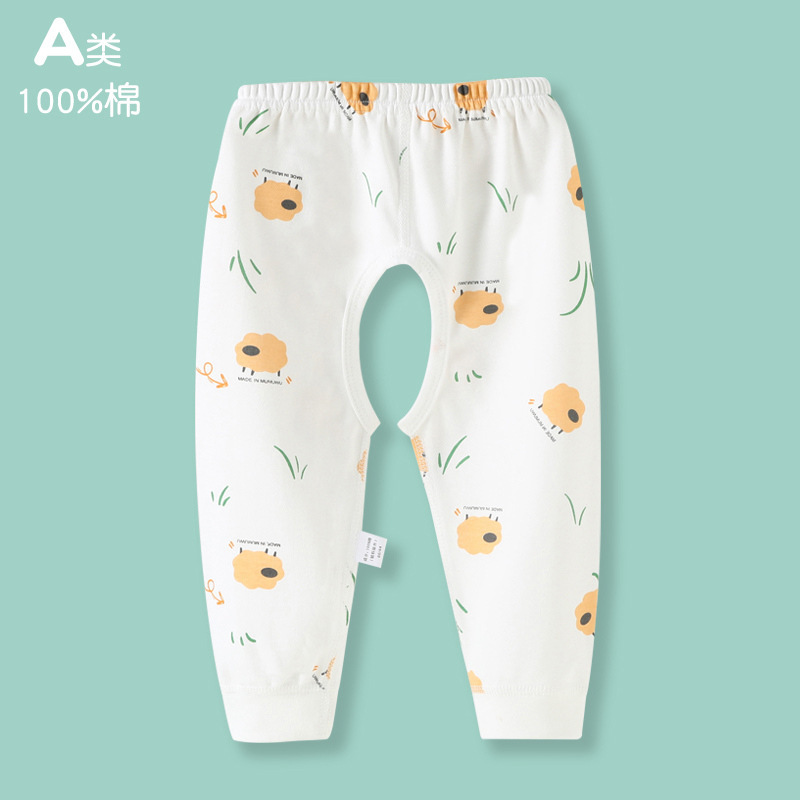 남아용 오픈 팬츠, 유아용 가을 바지, 겉옷용 순면 바지, 뼈 없는 신생아 봄, 가을 사계절 여성용 A형