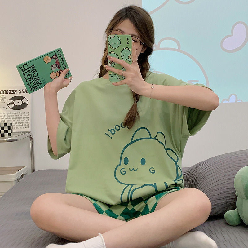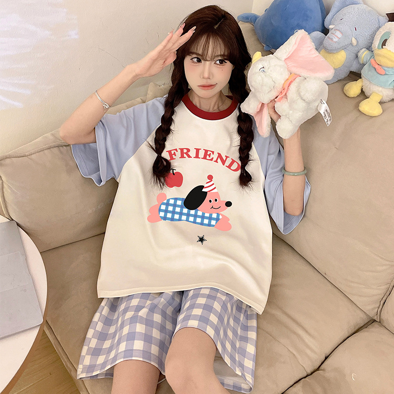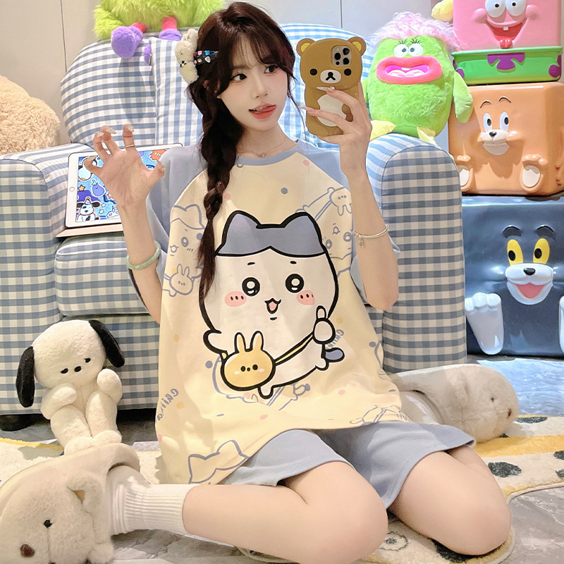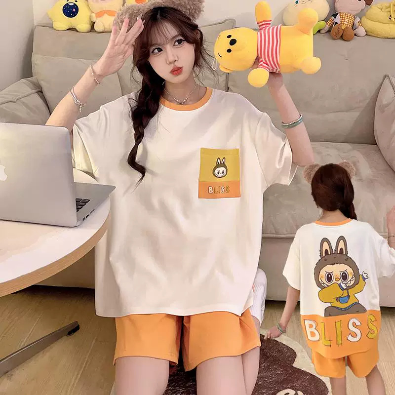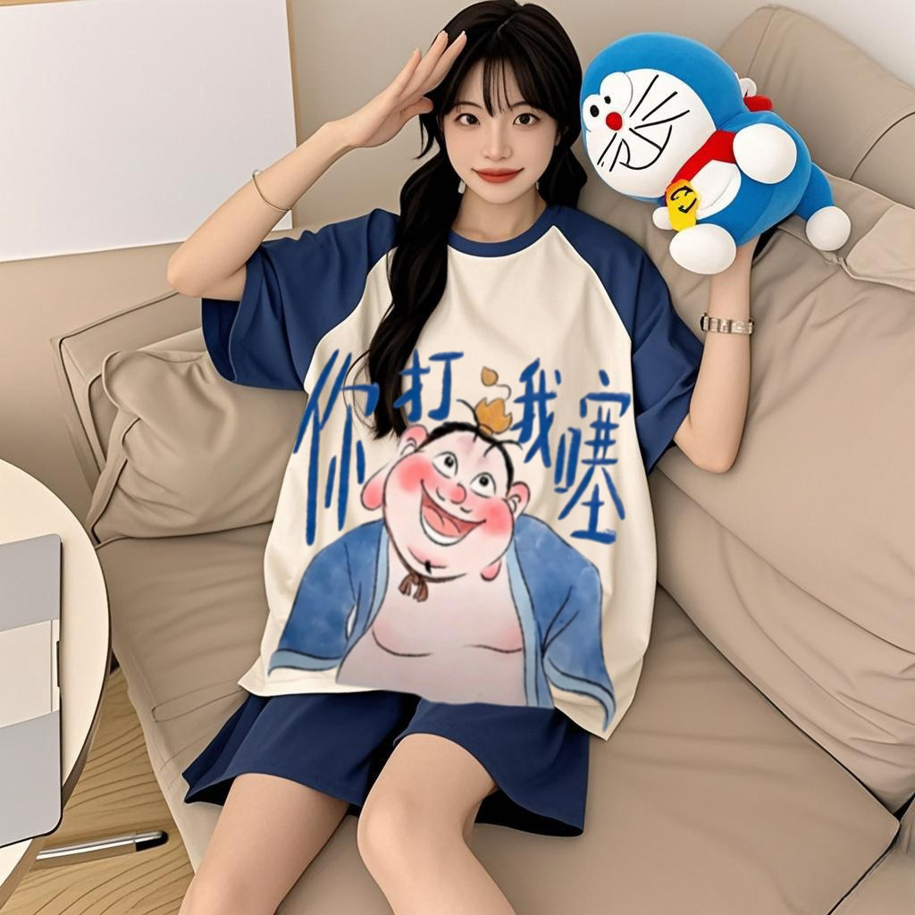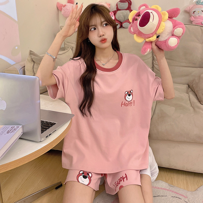 잠옷 여성 여름 만화 반팔 반바지 여름 플러스 사이즈 귀여운 여성 홈 옷 세트 외복스토어 가기