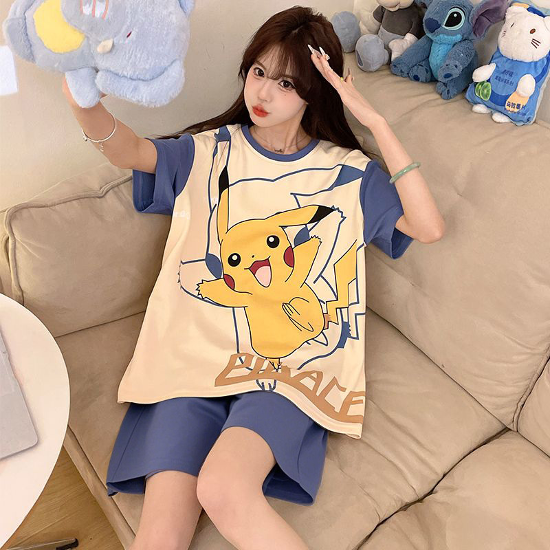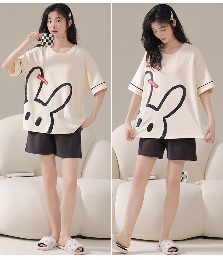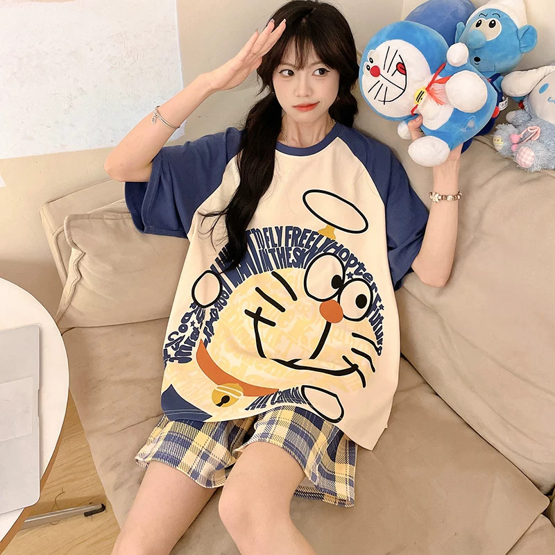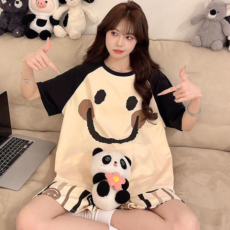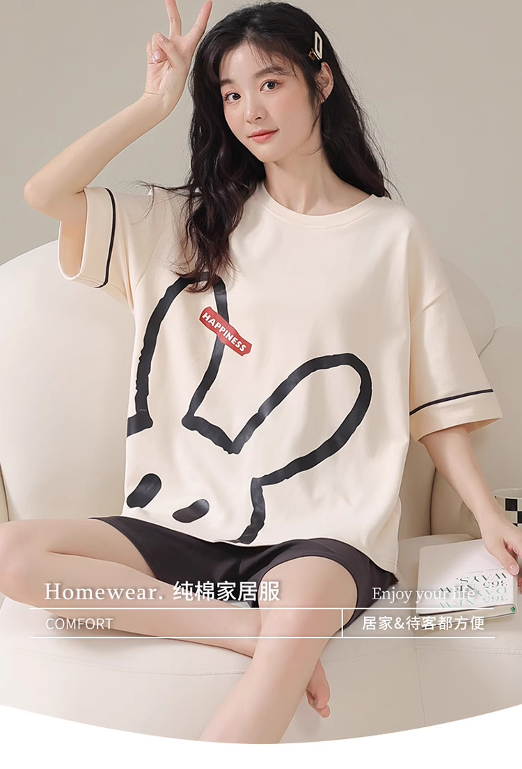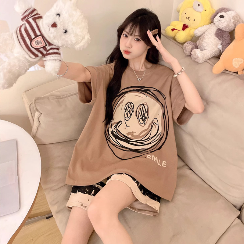 잠옷 여성 여름 만화 반팔 반바지 여름 플러스 사이즈 귀여운 여성 홈 옷 세트 외복스토어 가기