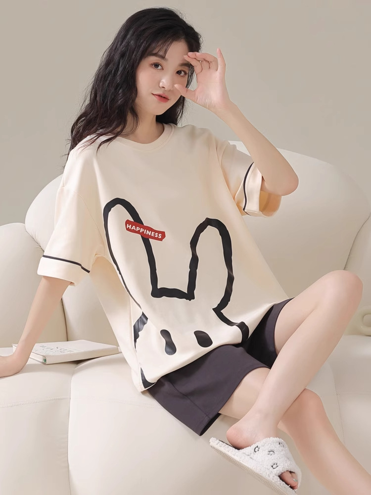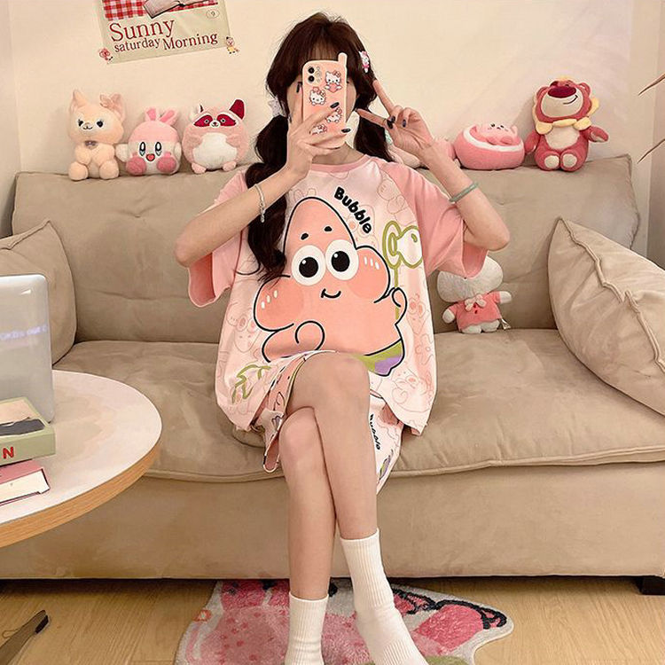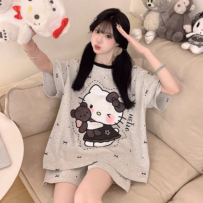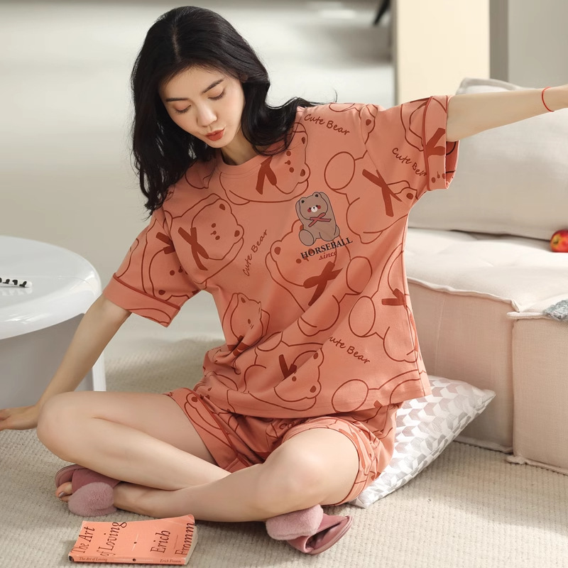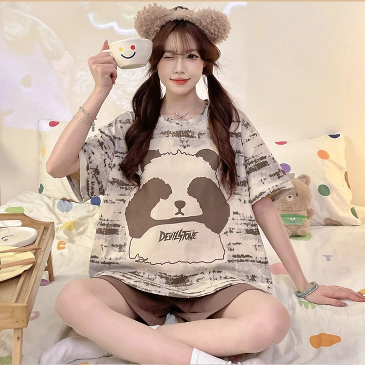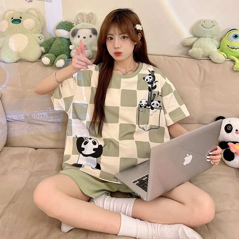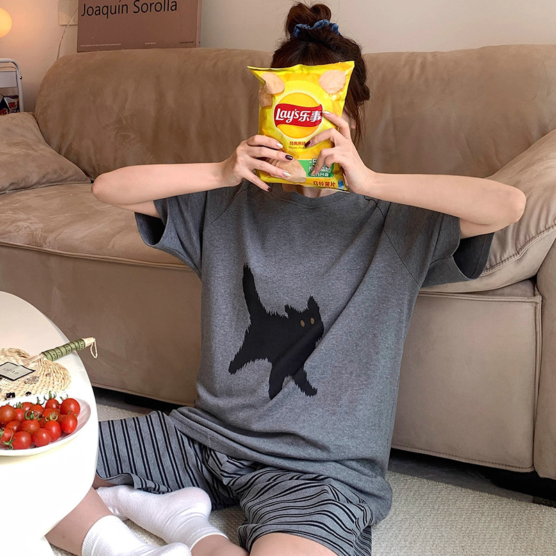 잠옷 여성 여름 만화 반팔 반바지 여름 플러스 사이즈 귀여운 여성 홈 옷 세트 외복스토어 가기