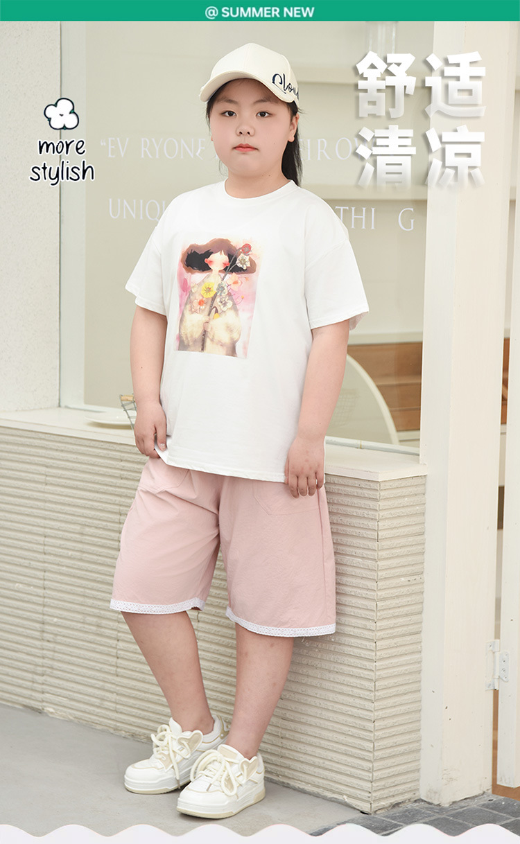 통통한 소녀 반바지 여름 착용 통통한 소녀 플러스 사이즈 바지 대형 루즈 플러스 사이즈 얇은 캐주얼 바지