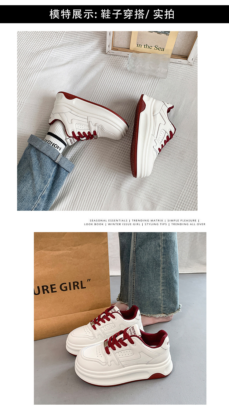 폭발 작은 흰색 신발 여성의 2025 봄 새로운 두꺼운 밑창 다용도 증가 빵 신발 슈퍼 화재 레저 스포츠 보드 신발스토어 가기