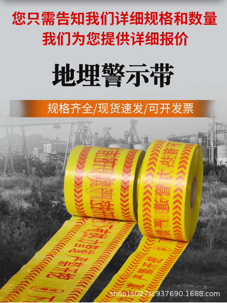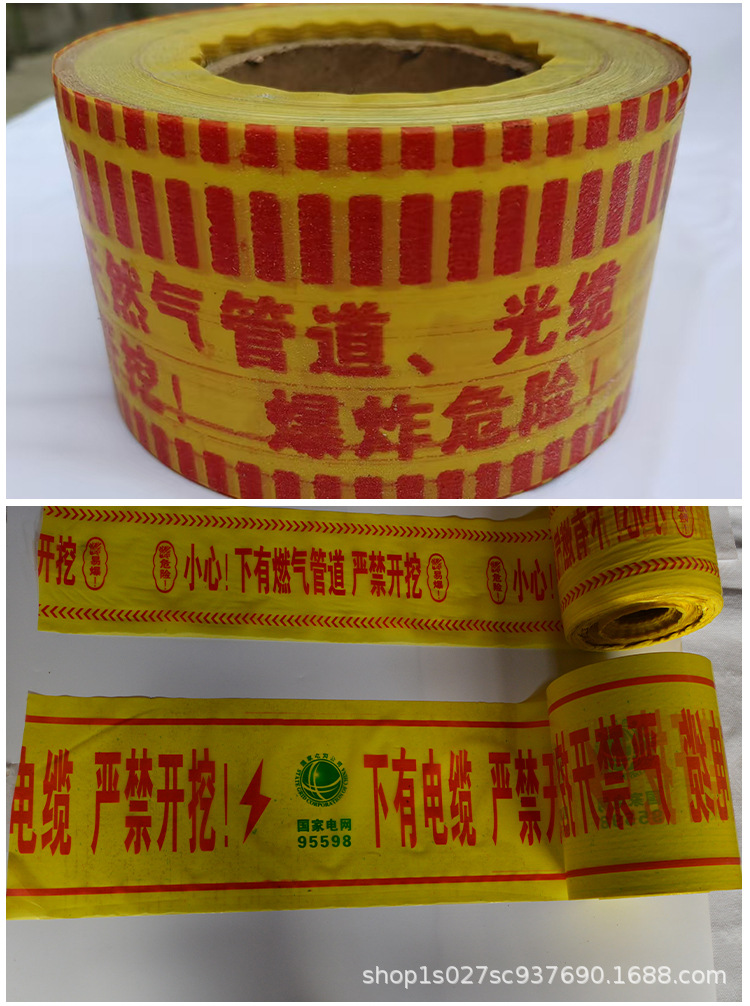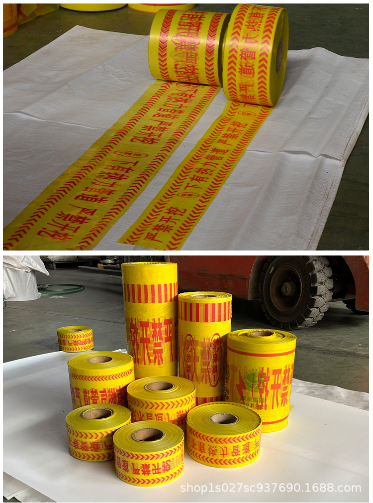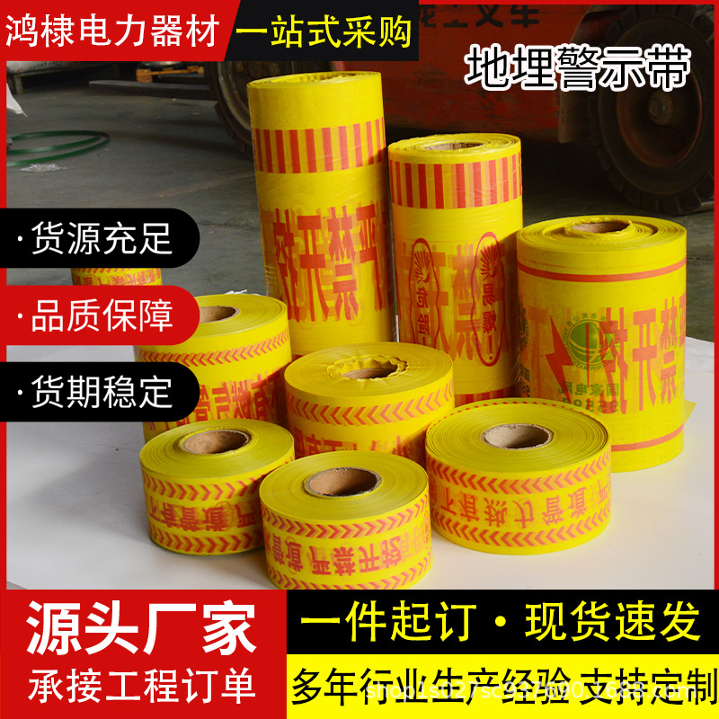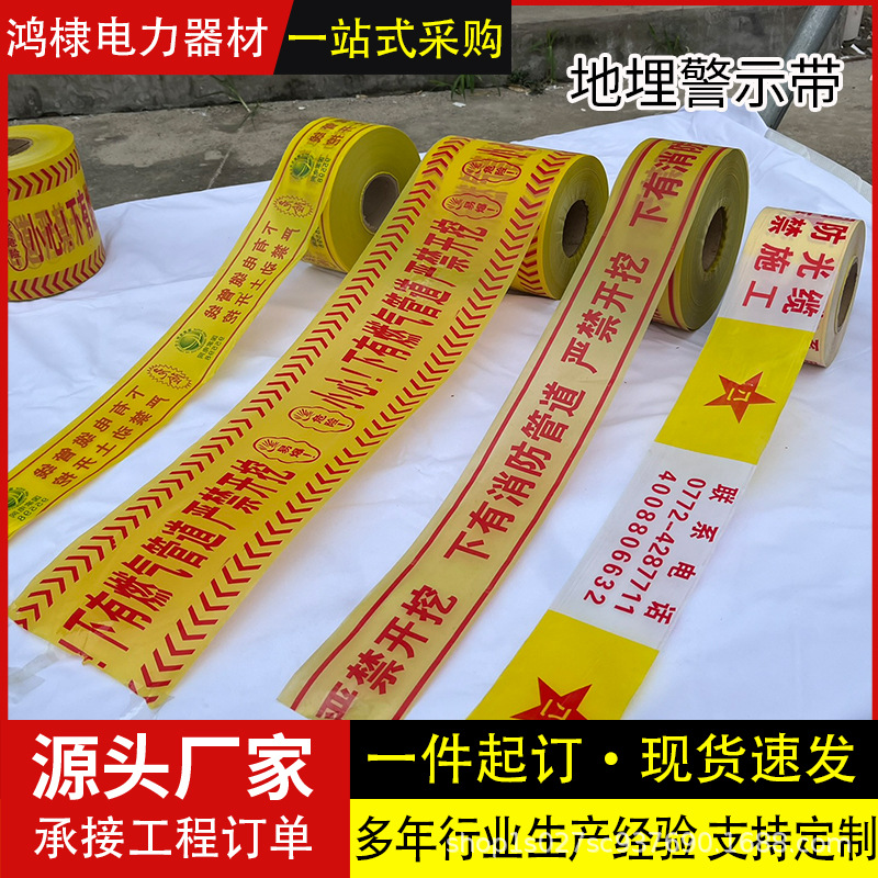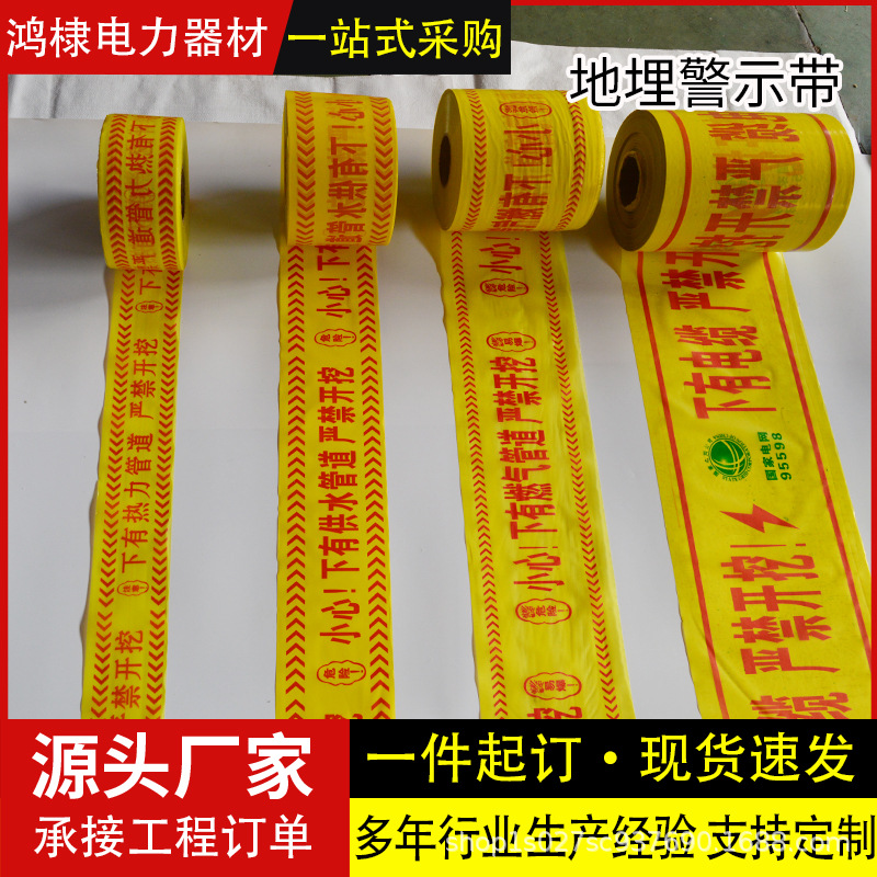 묻힌 경고 벨트 PE 케이블 경고 벨트 전원 가스 급수 파이프 라인 식별 벨트 감지 가능한 철사로 덮인 매장 벨트스토어 가기