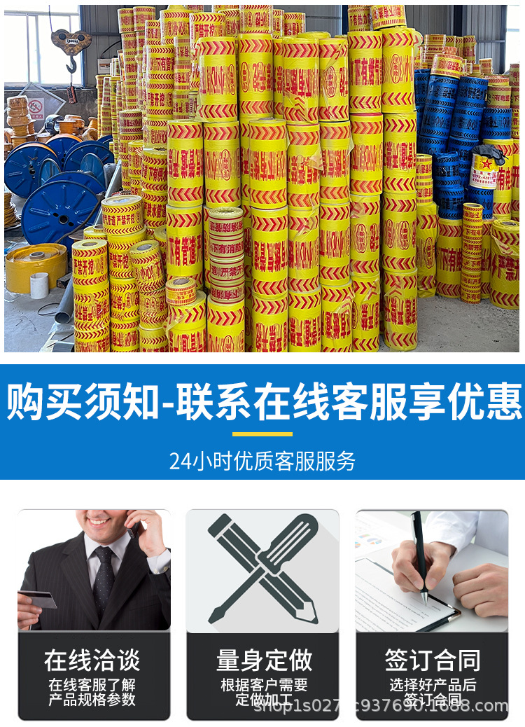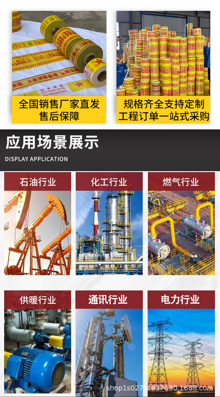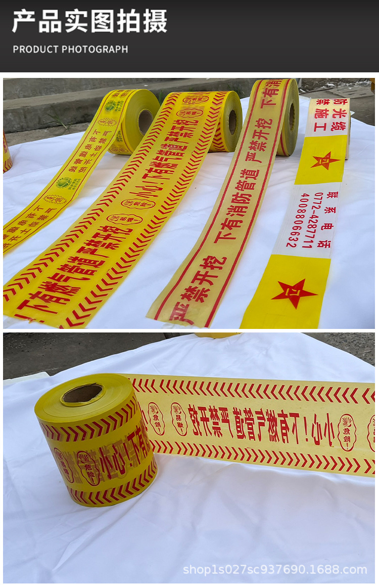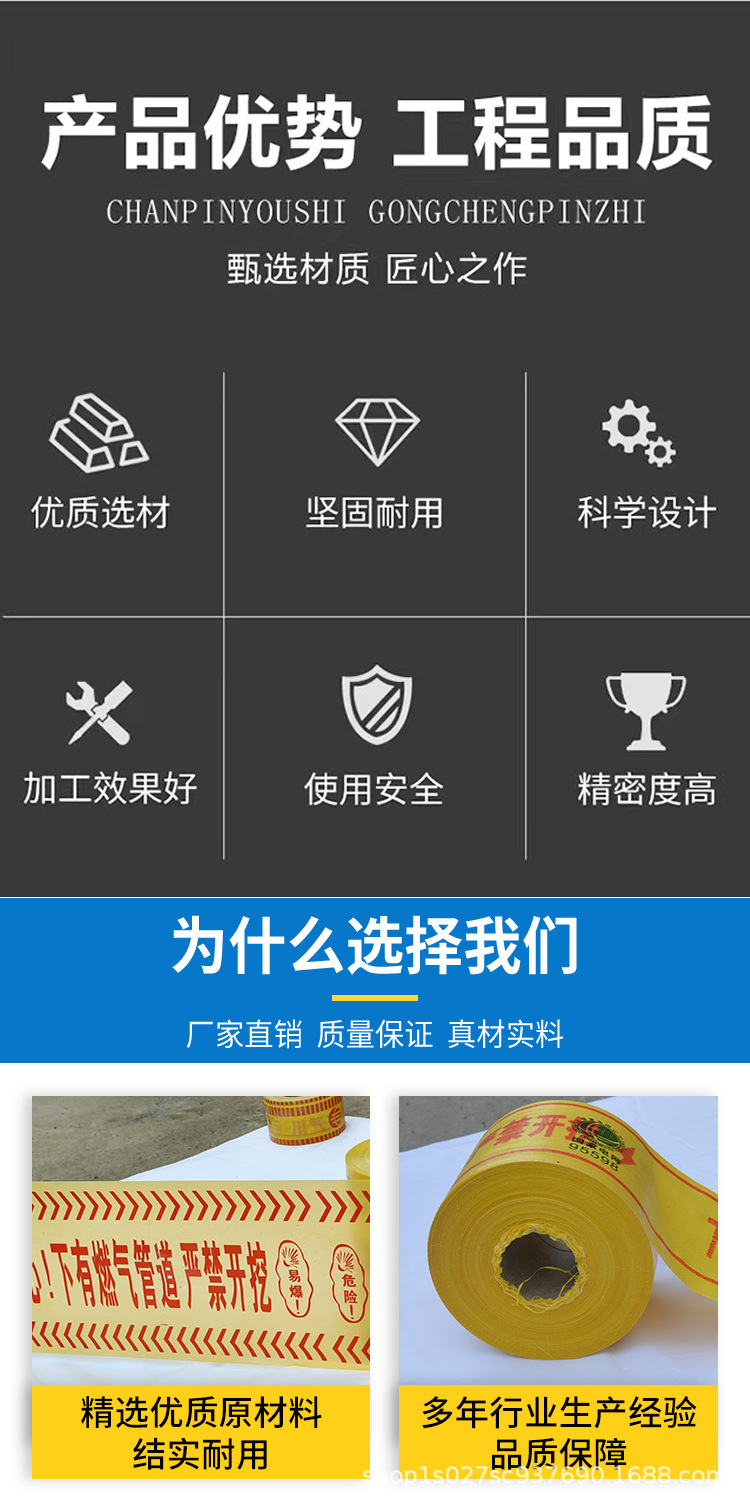 묻힌 경고 벨트 PE 케이블 경고 벨트 전원 가스 급수 파이프 라인 식별 벨트 감지 가능한 철사로 덮인 매장 벨트스토어 가기