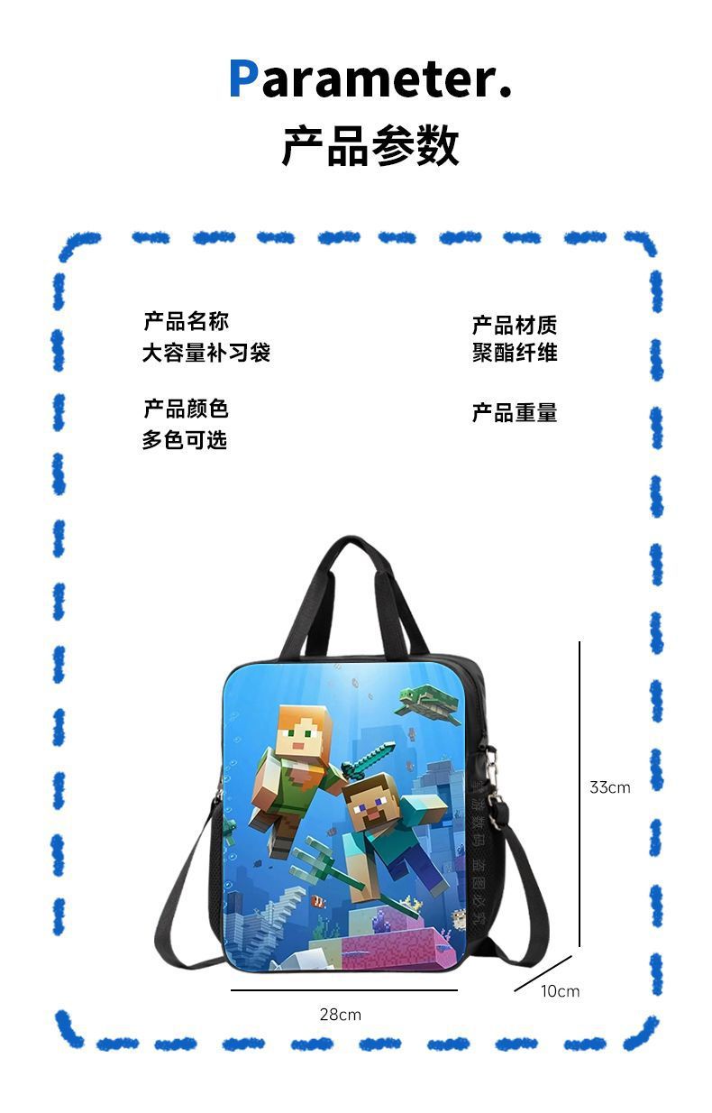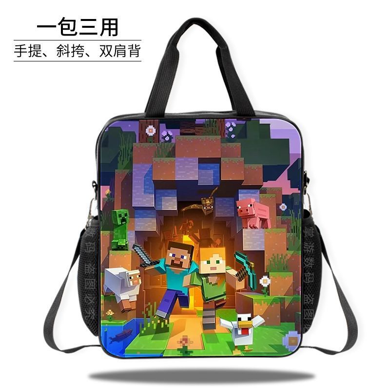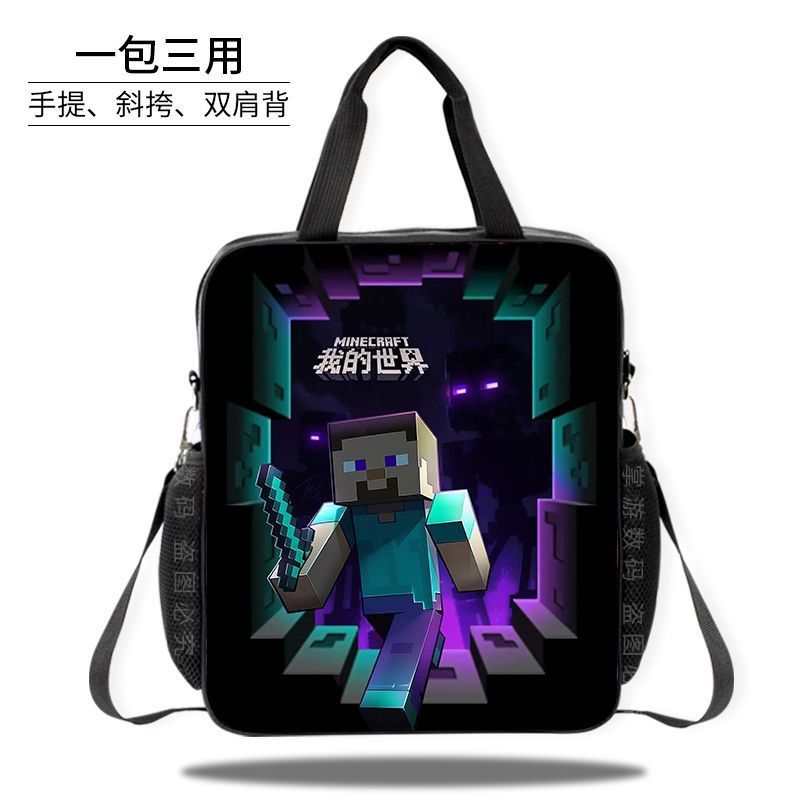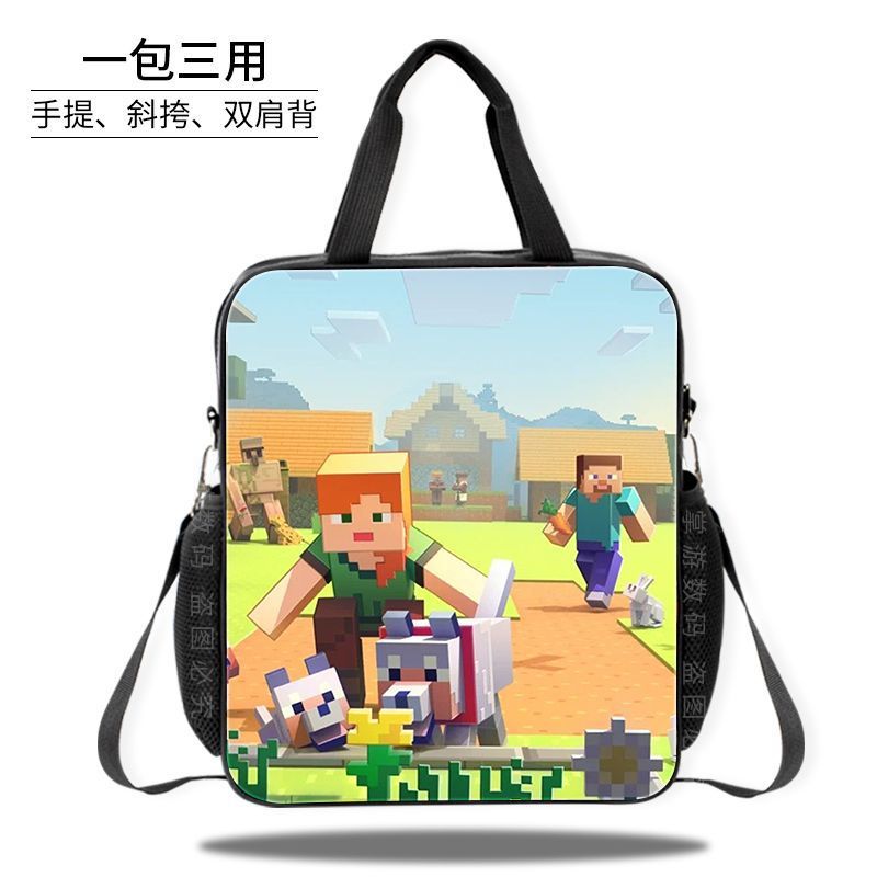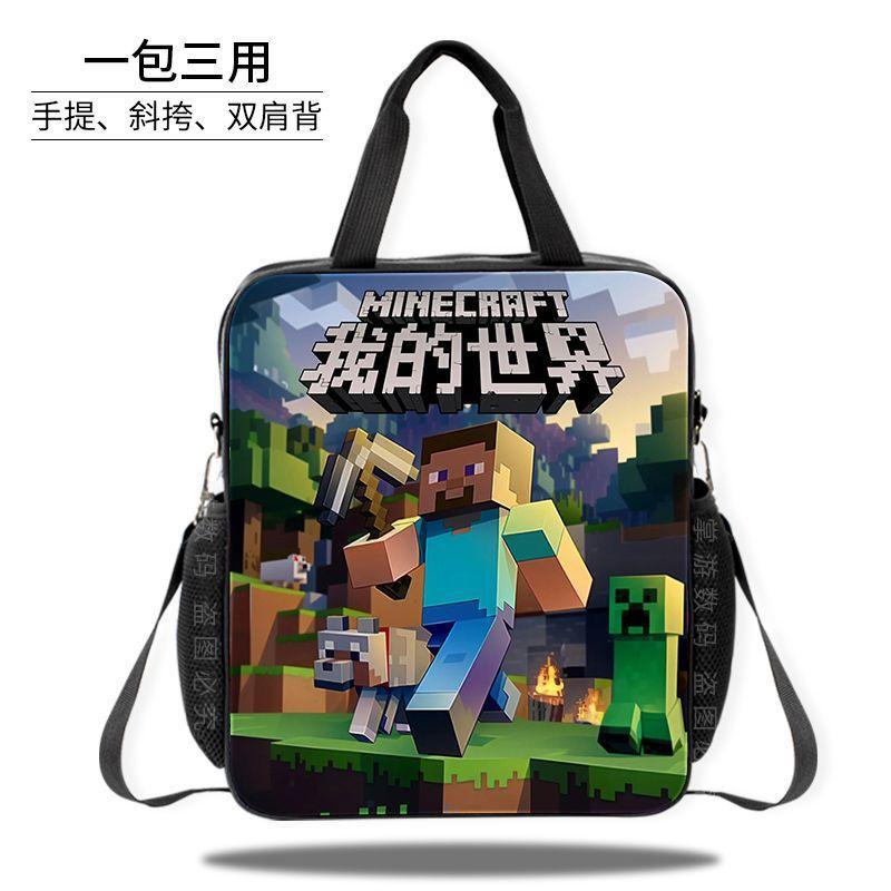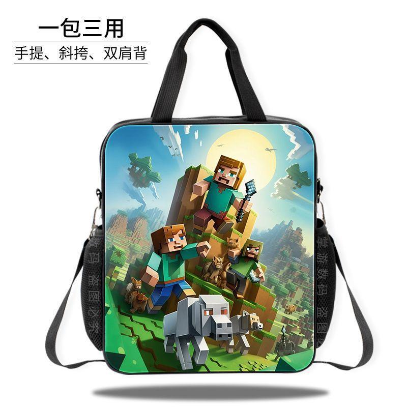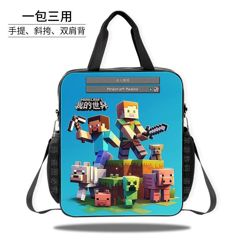 Minecraft 초등 및 중등 학교 학생 과외 가방 방수 핸드백 소녀 과외 가방 도서 파일 가방 크로스 바디 백