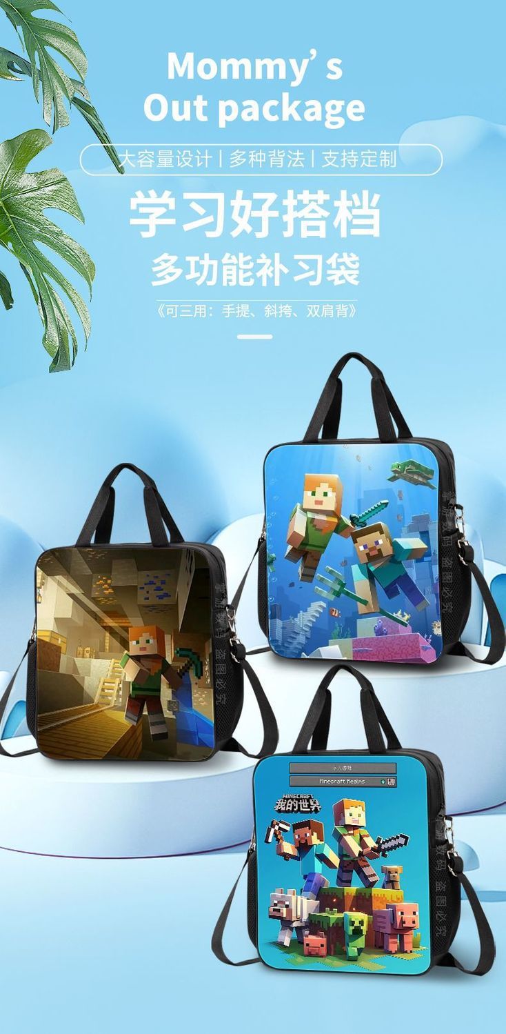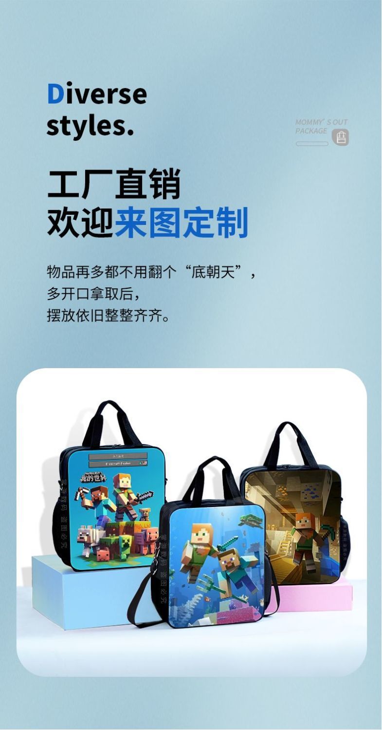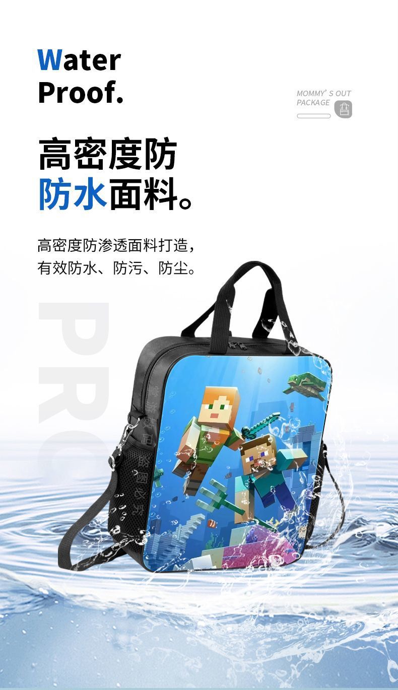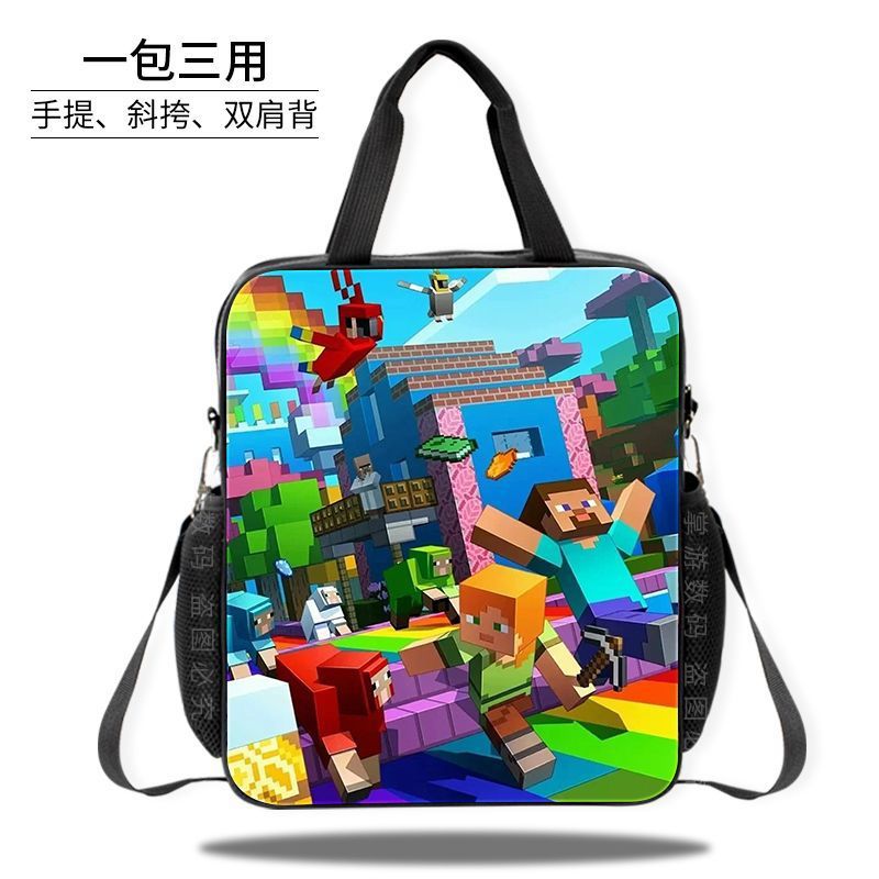 Minecraft 초등 및 중등 학교 학생 과외 가방 방수 핸드백 소녀 과외 가방 도서 파일 가방 크로스 바디 백
