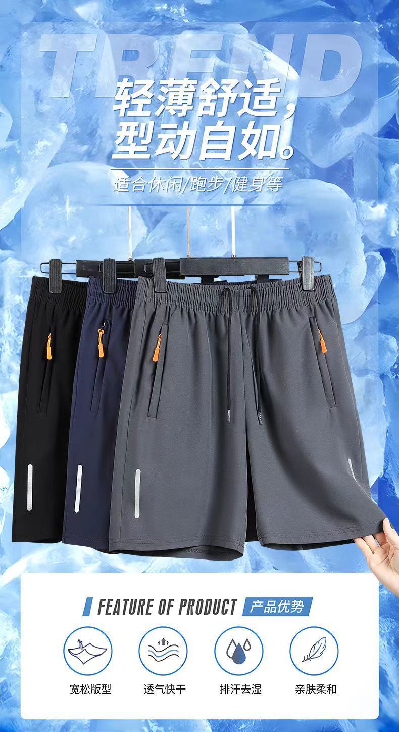 여름용 고급 아이스 실크 통기성 반바지 남성용 속건 시원한 스포츠 캐주얼 트렌디 만능 이중 색상 배색스토어 가기