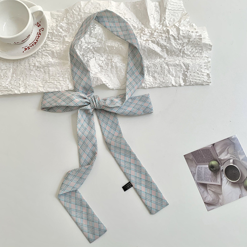 여성용 실크 스카프 긴 하이 엔드 다기능 복고풍 일본 스타일 격자 무늬 넥타이 줄무늬 헤드 스카프 헤어 벨트 장식 벨트