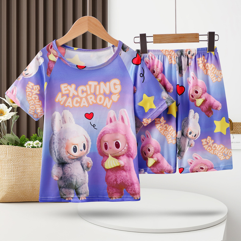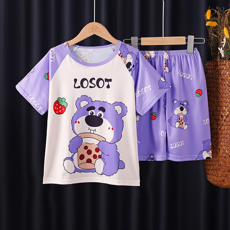 2025 새로운 소년 잠옷 어린이 봄, 가을 반팔 소녀 여름 소년 청소년 중대형 어린이 가정 의류스토어 가기