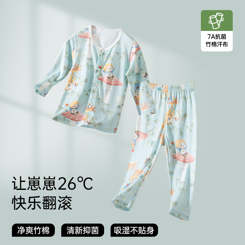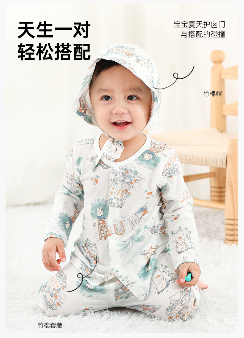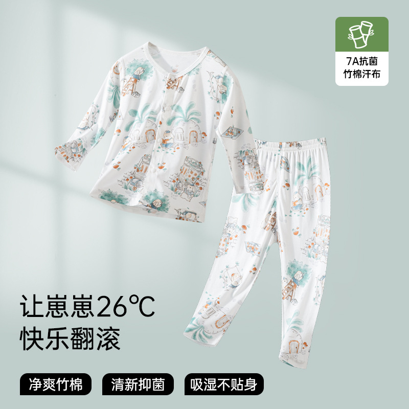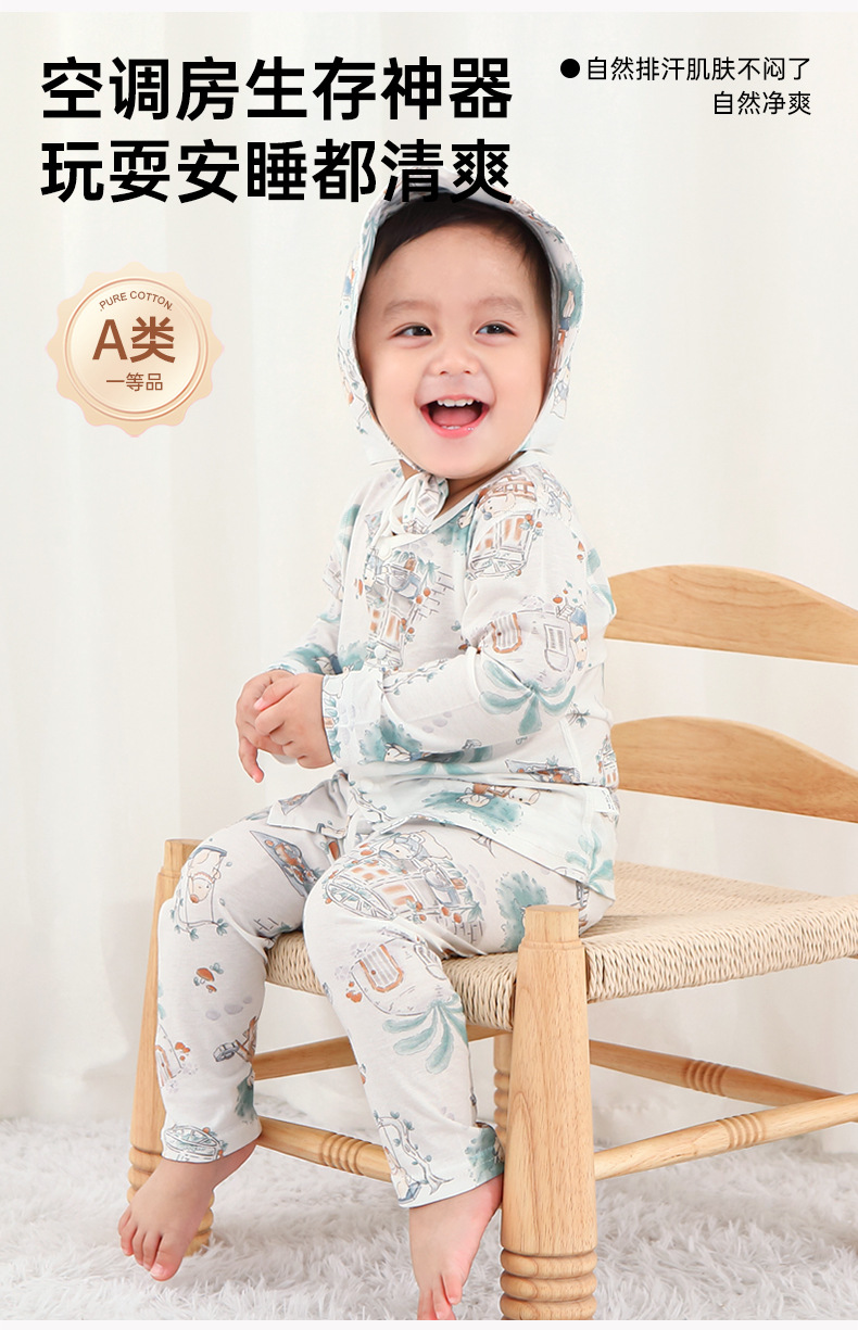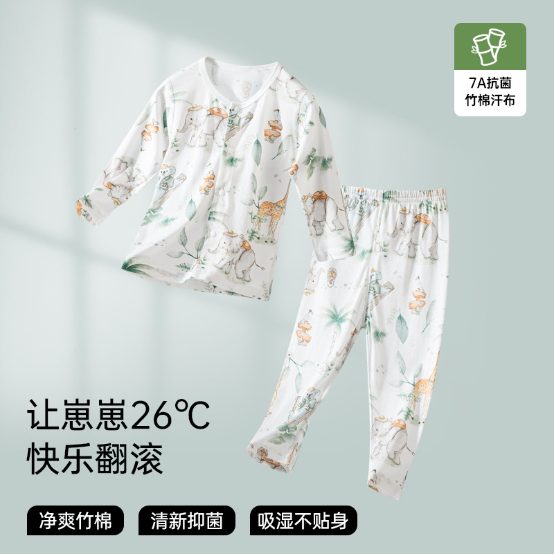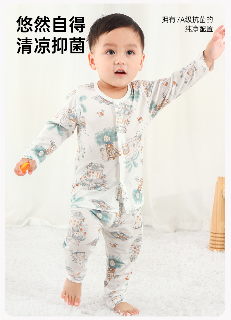 아기 스플릿 슈트 여름 얇은 아기 긴팔 대나무 섬유 잠옷 소년 가정 의류 바지 투피스 세트스토어 가기