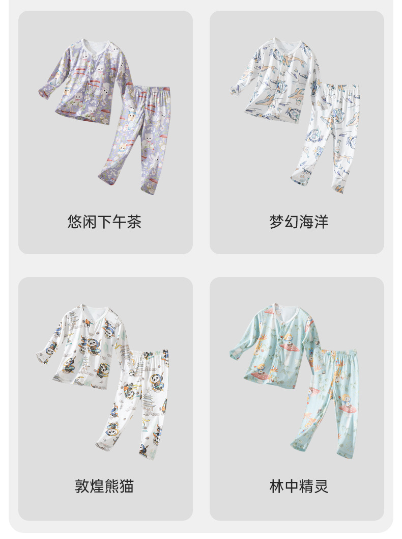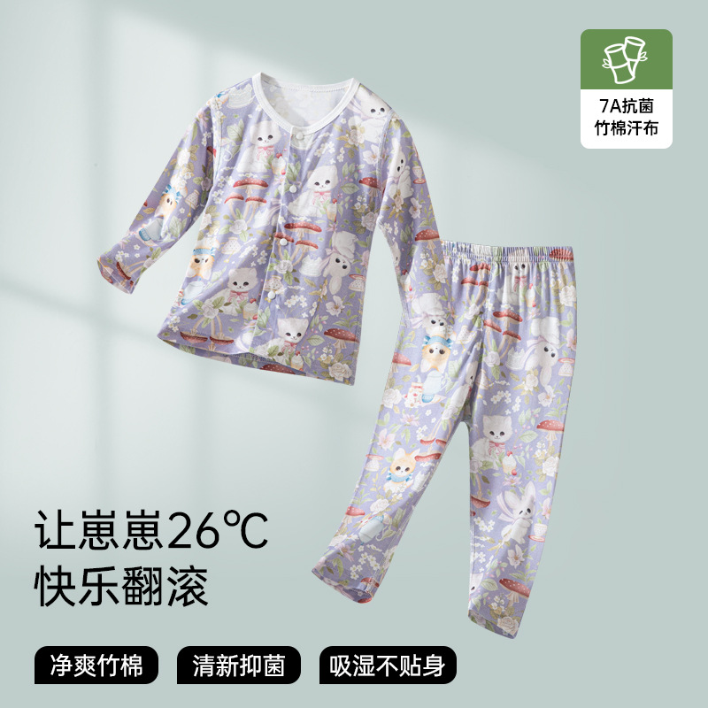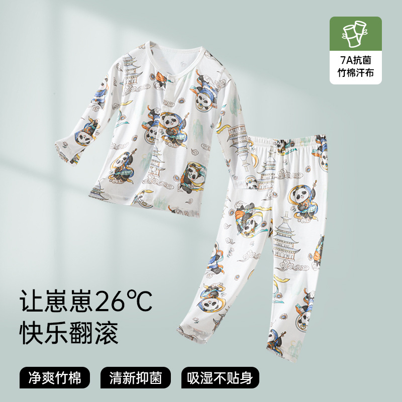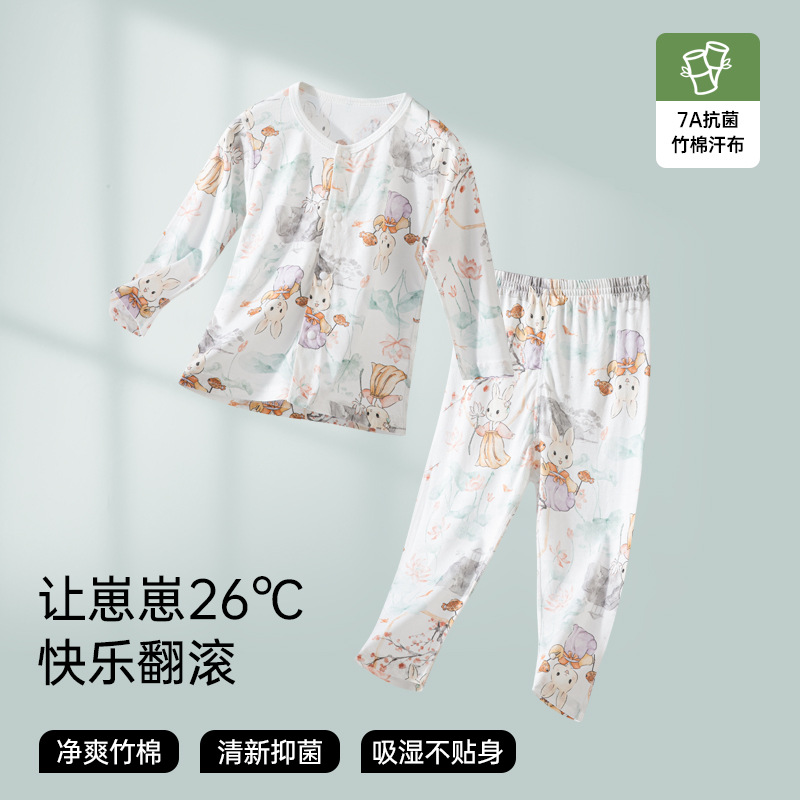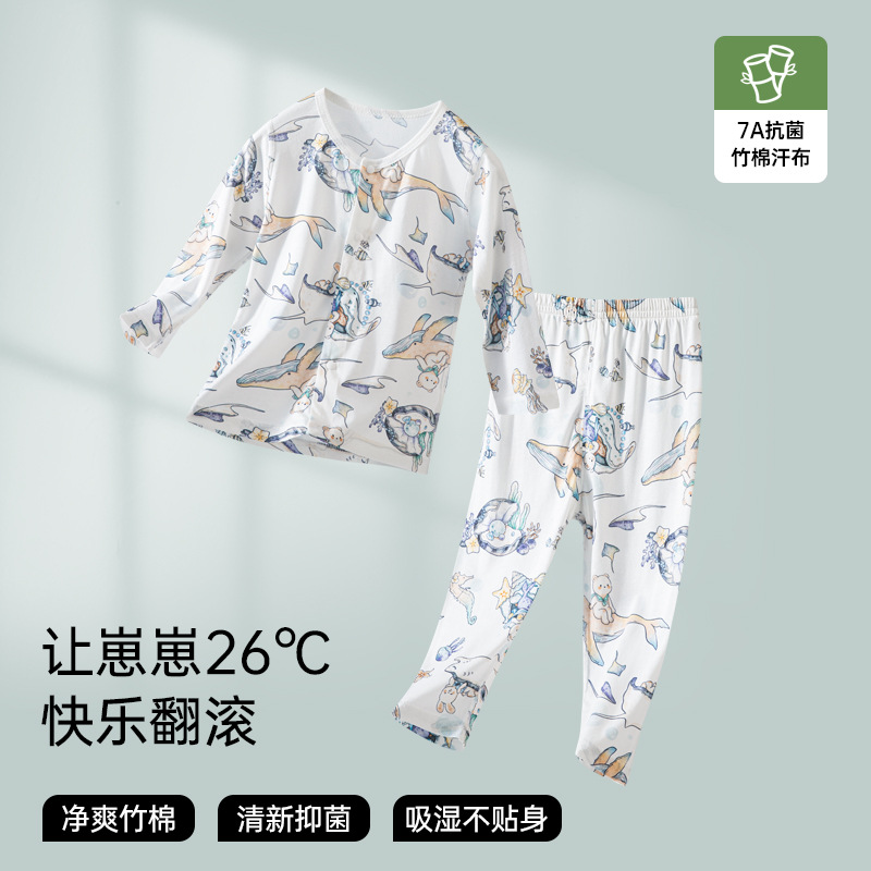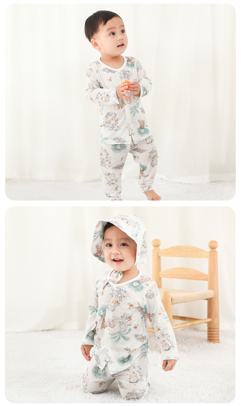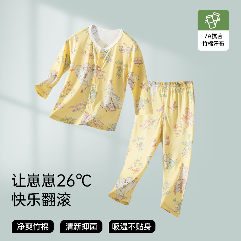 아기 스플릿 슈트 여름 얇은 아기 긴팔 대나무 섬유 잠옷 소년 가정 의류 바지 투피스 세트스토어 가기