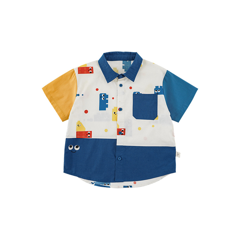 Wuri Boys의 빌딩 블록 반팔 셔츠 2025 여름 새로운 어린이 만화 얇은 캐주얼 셔츠 탑