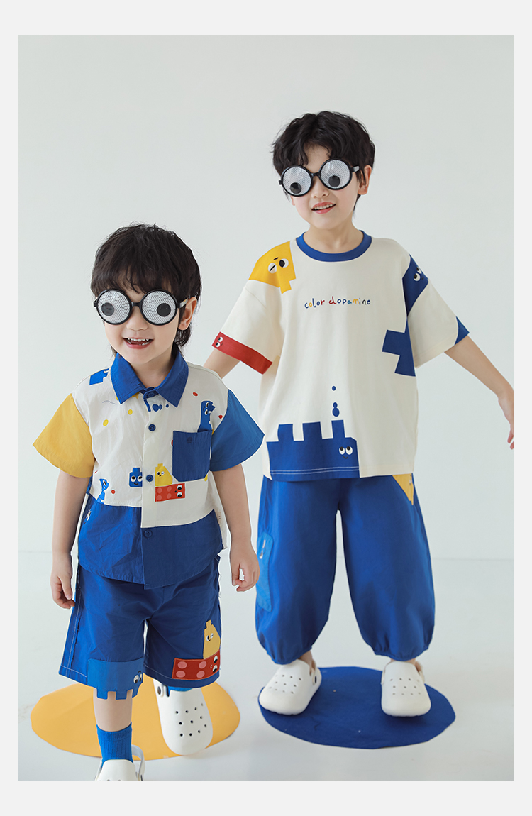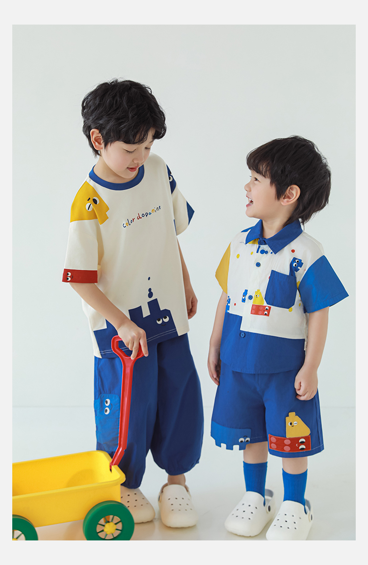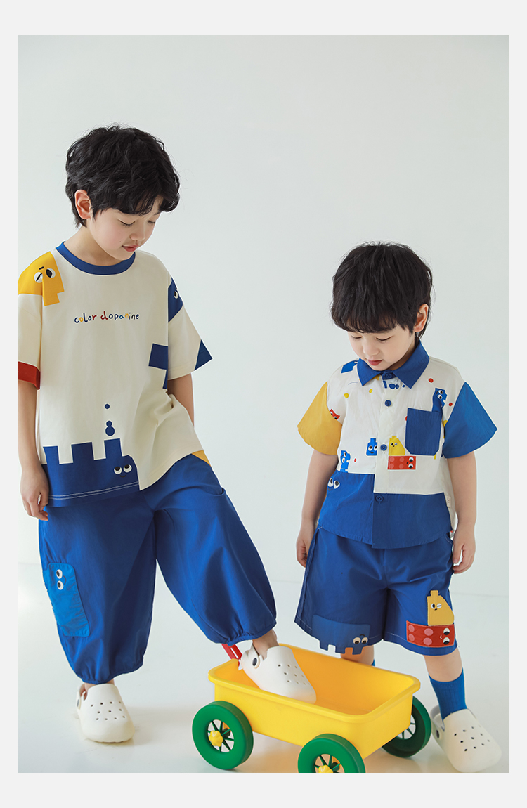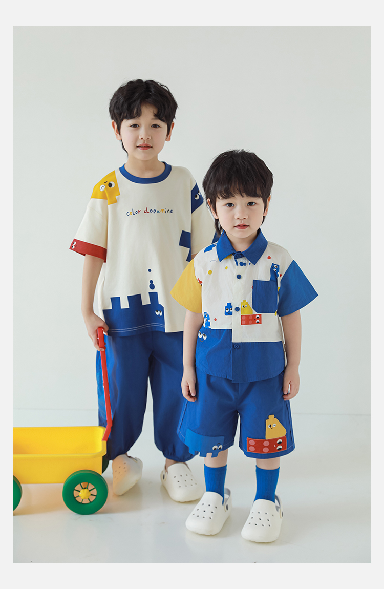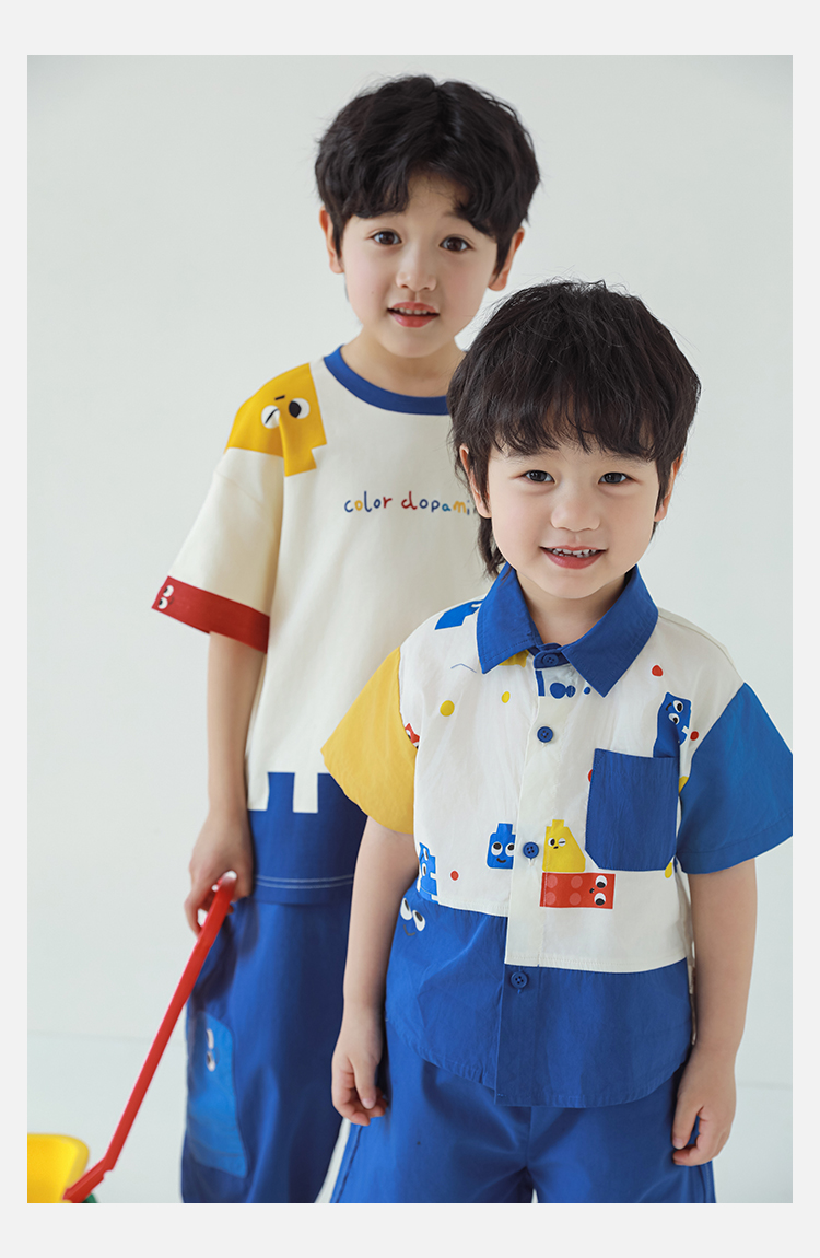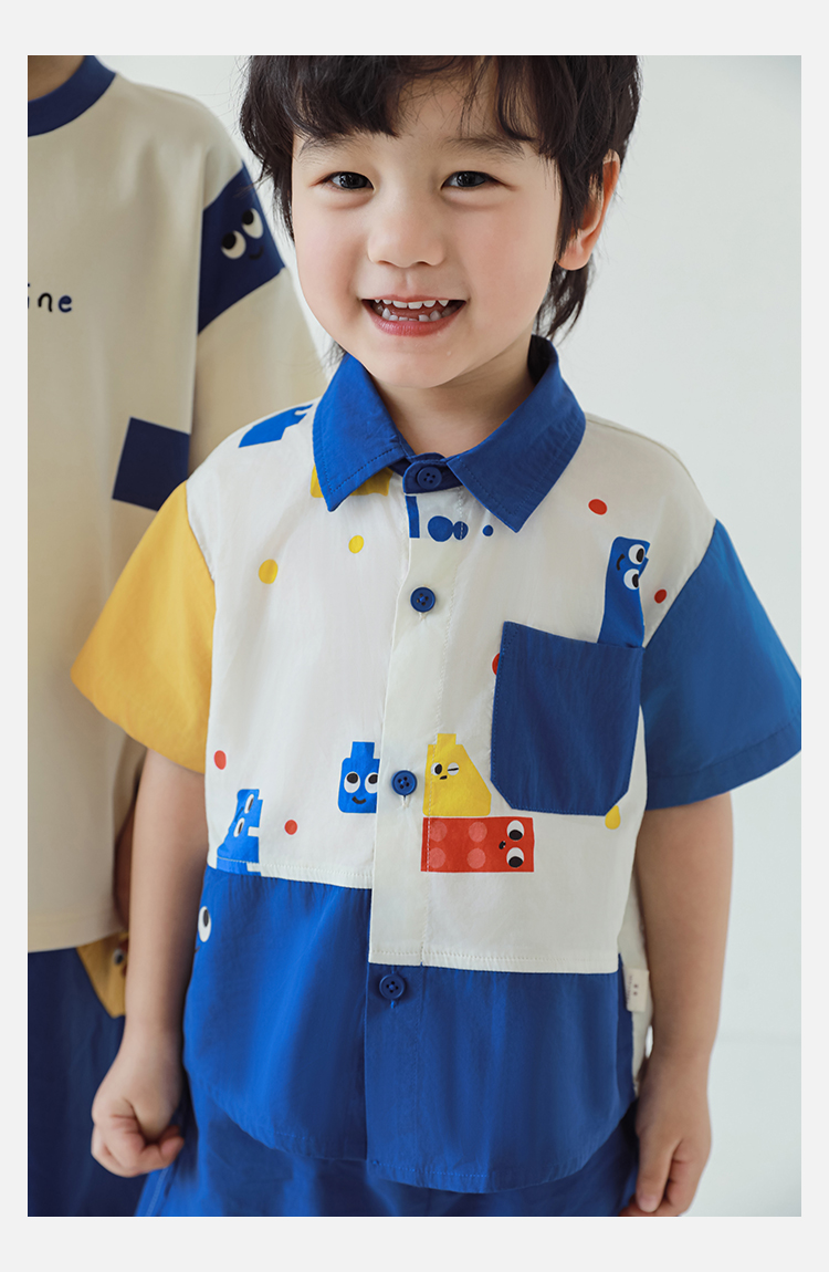 Wuri Boys의 빌딩 블록 반팔 셔츠 2025 여름 새로운 어린이 만화 얇은 캐주얼 셔츠 탑스토어 가기