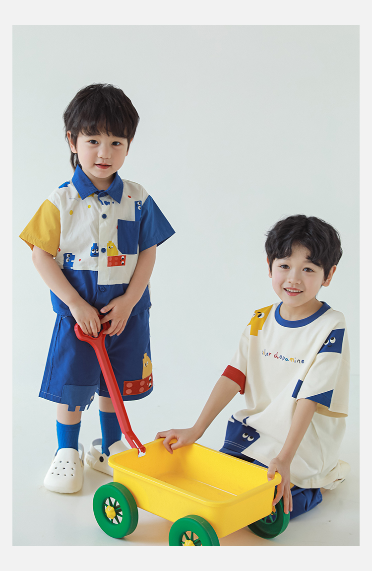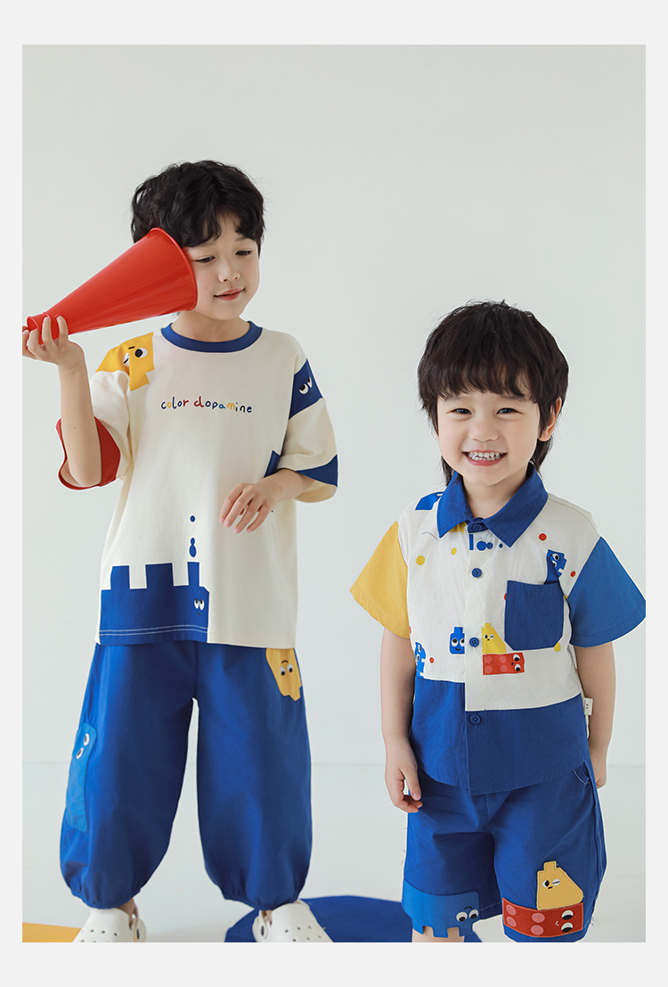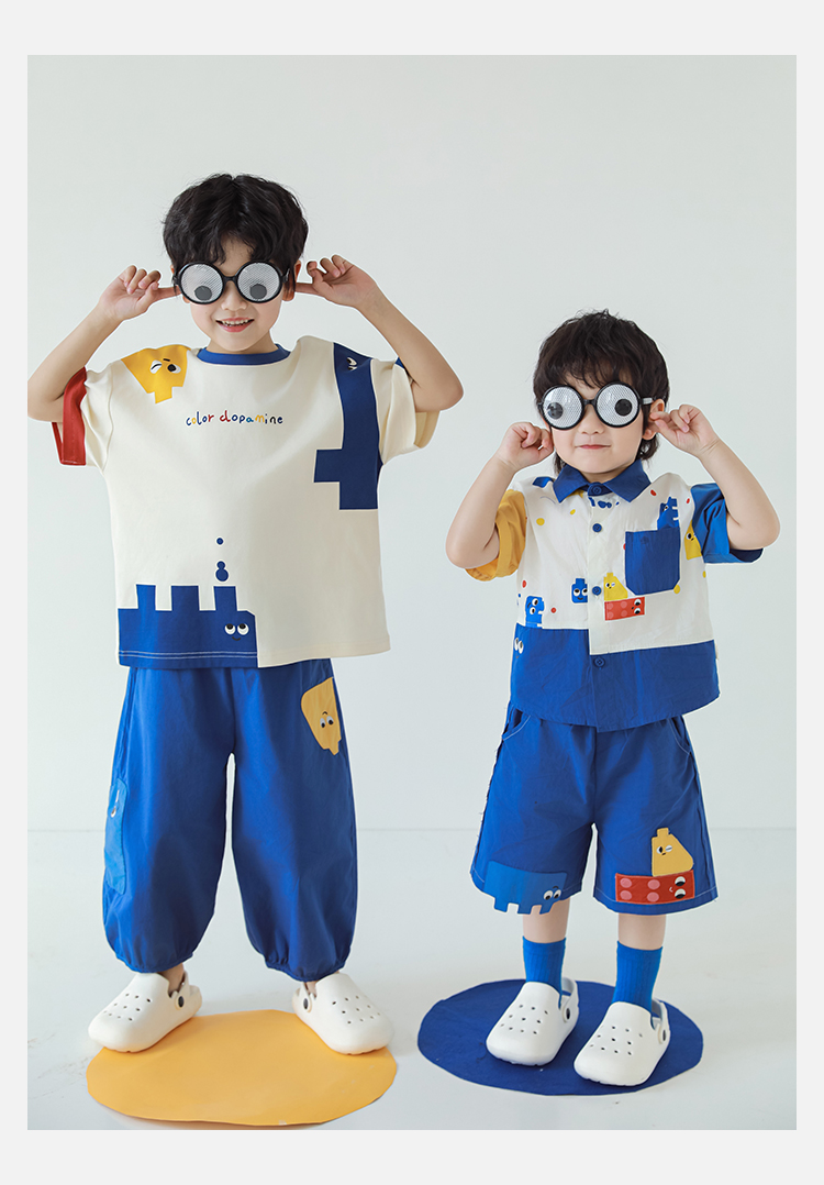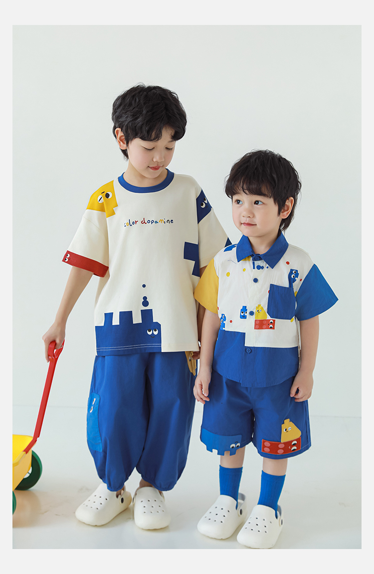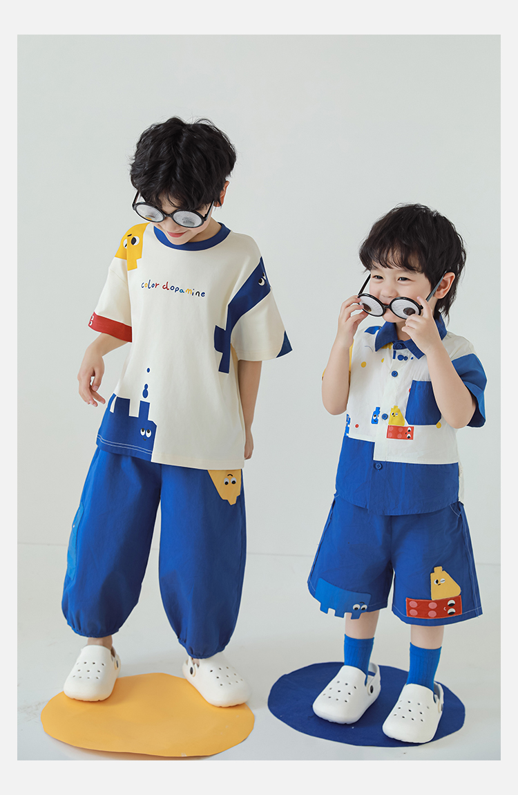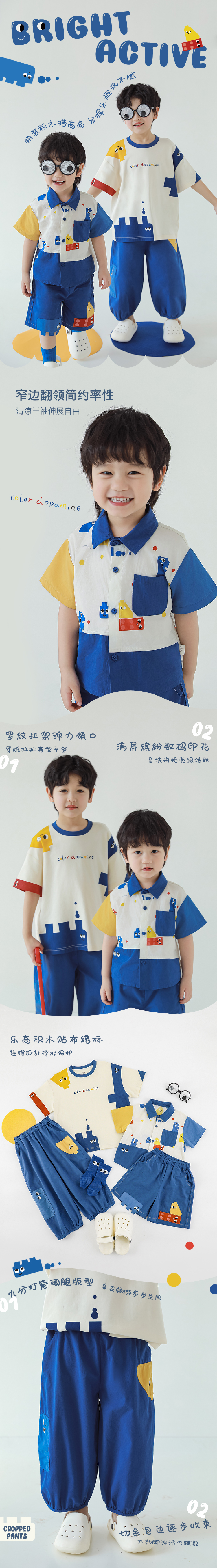 Wuri Boys의 빌딩 블록 반팔 셔츠 2025 여름 새로운 어린이 만화 얇은 캐주얼 셔츠 탑스토어 가기