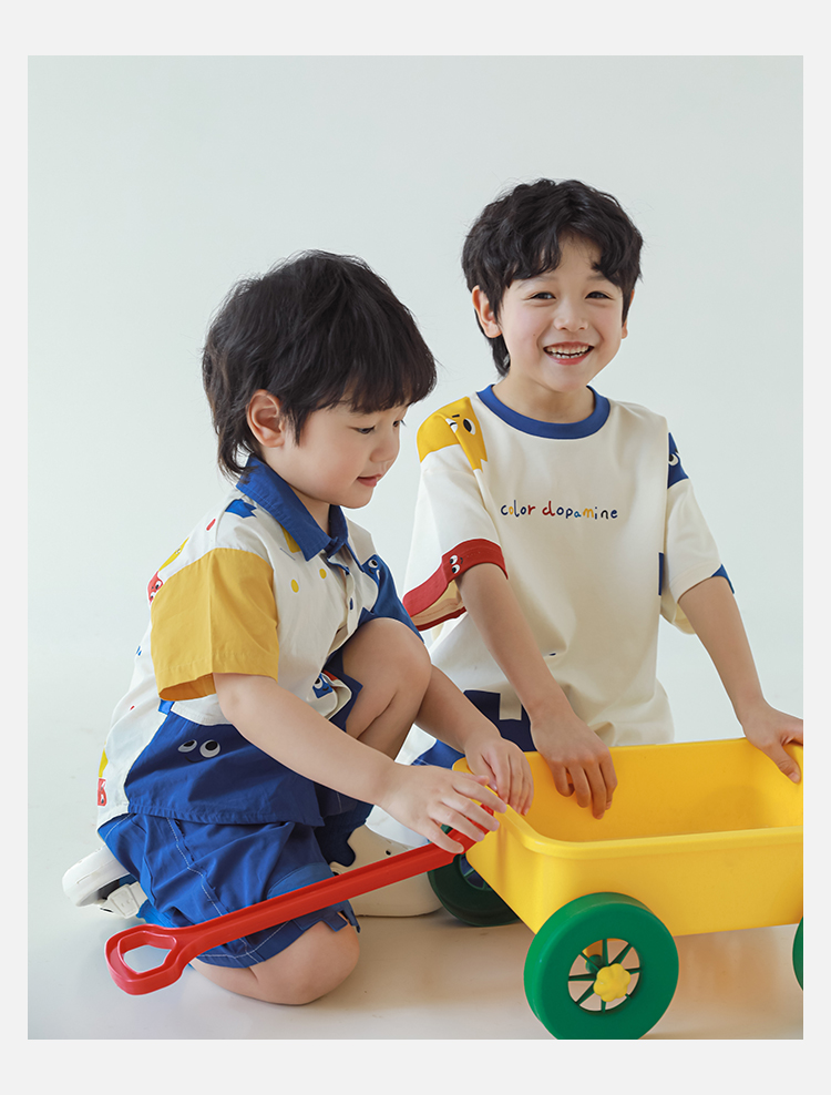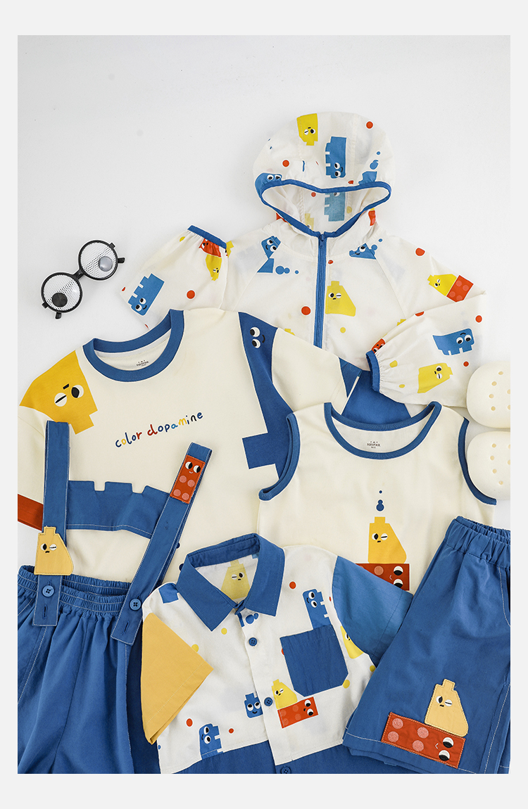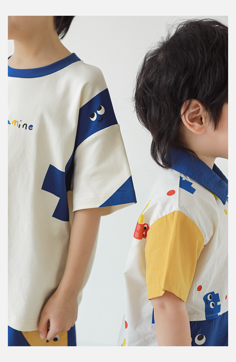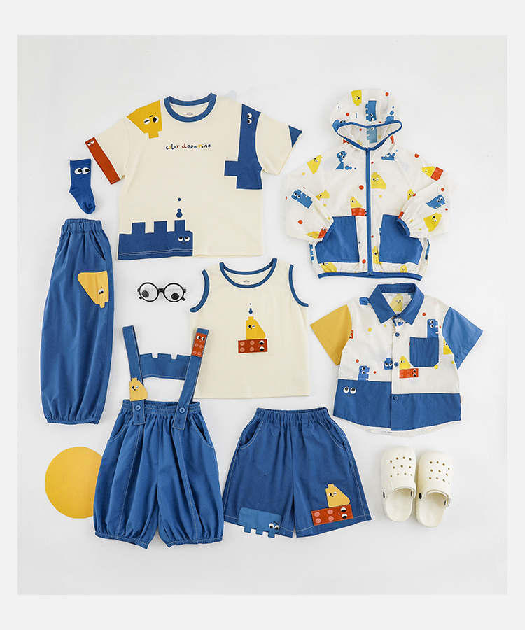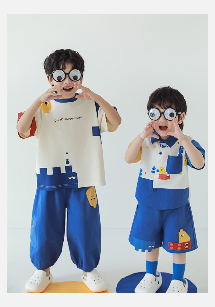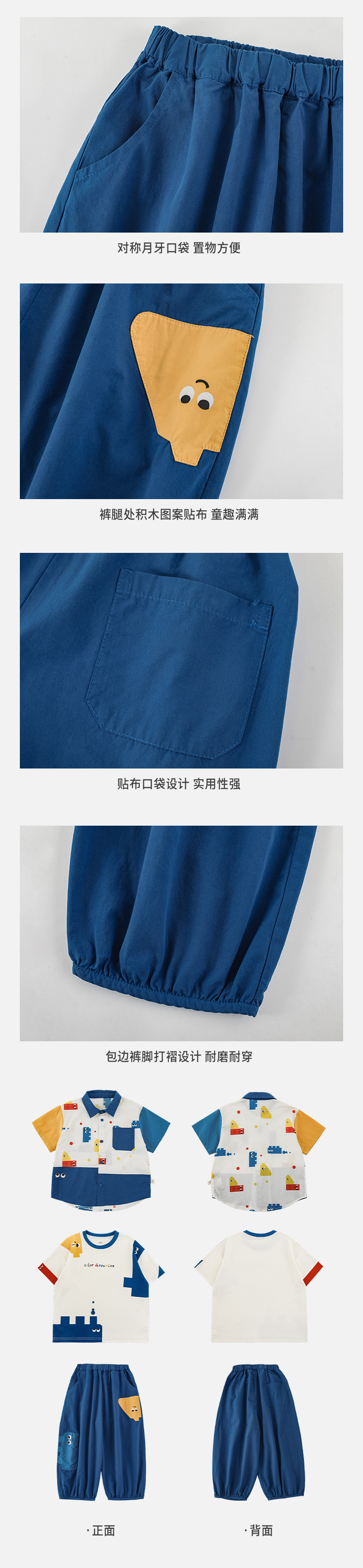 Wuri Boys의 빌딩 블록 반팔 셔츠 2025 여름 새로운 어린이 만화 얇은 캐주얼 셔츠 탑스토어 가기