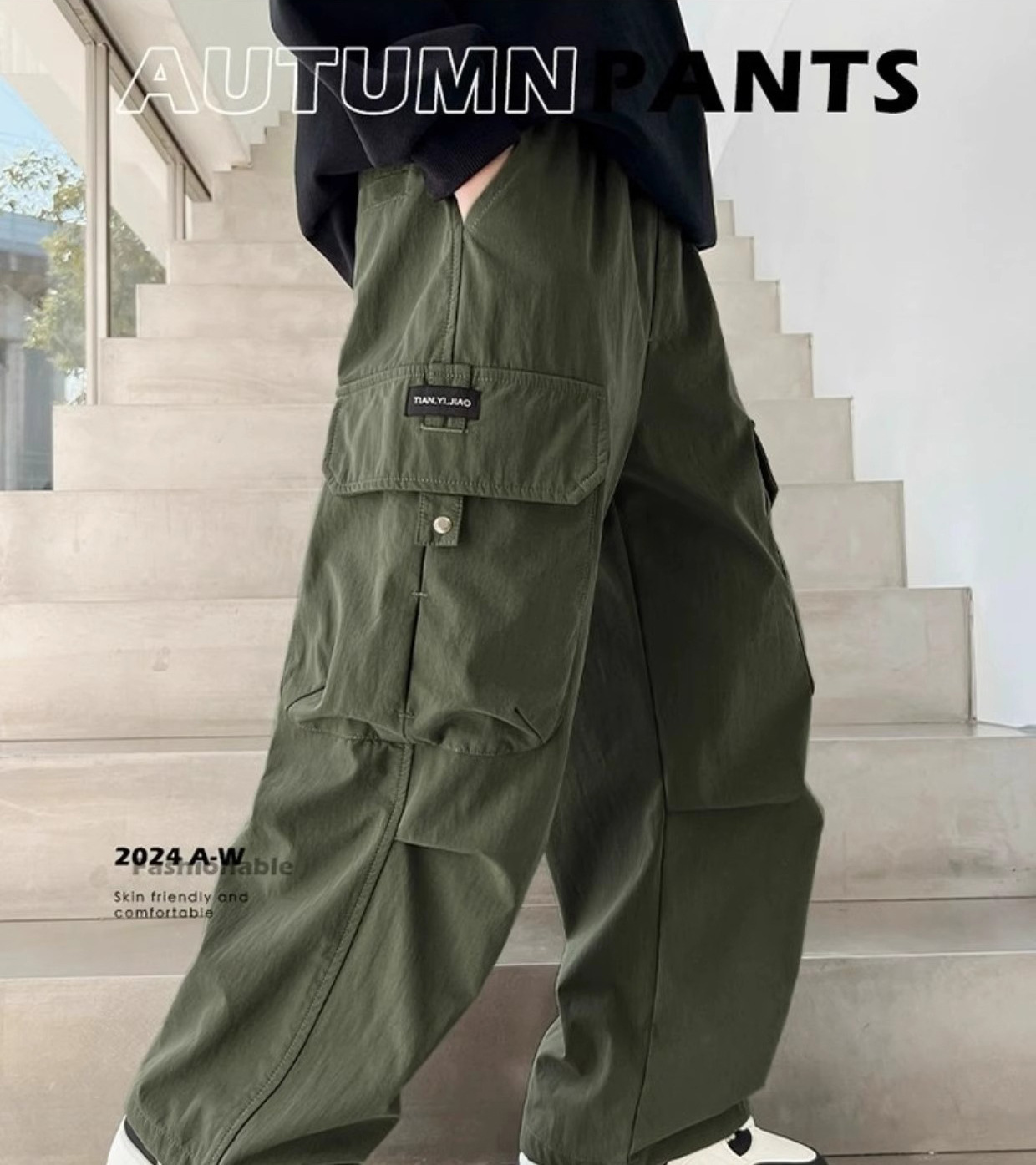 어린이 스포츠 바지 2025 봄과 가을 새로운 어린이 작업복 캐주얼 바지 소년 패션 와이드 다리 긴 바지스토어 가기
