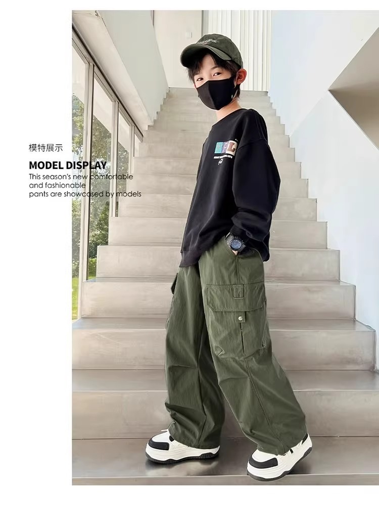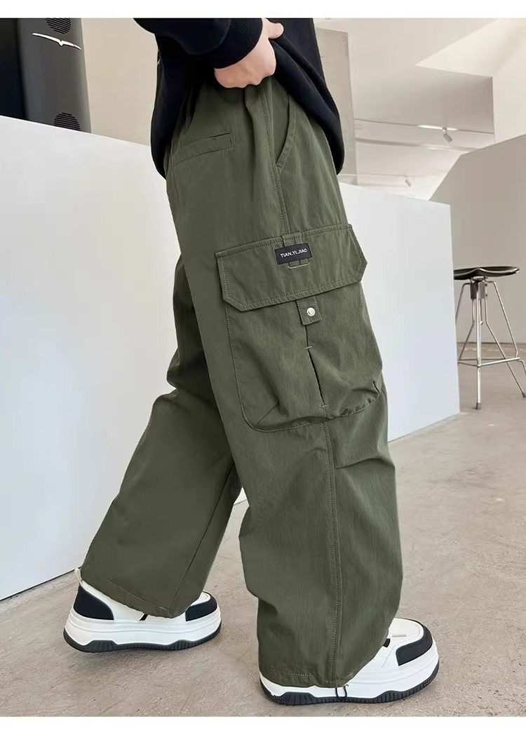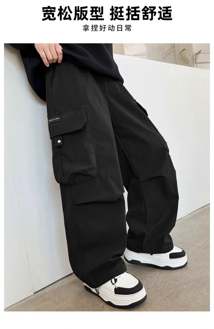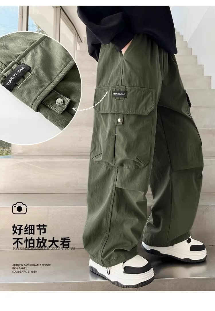 어린이 스포츠 바지 2025 봄과 가을 새로운 어린이 작업복 캐주얼 바지 소년 패션 와이드 다리 긴 바지