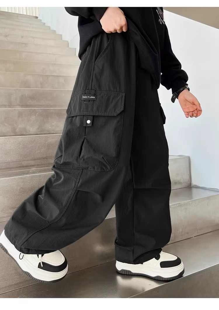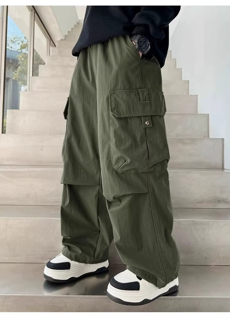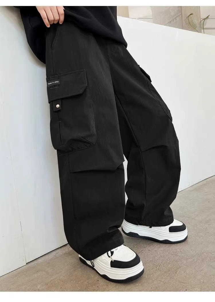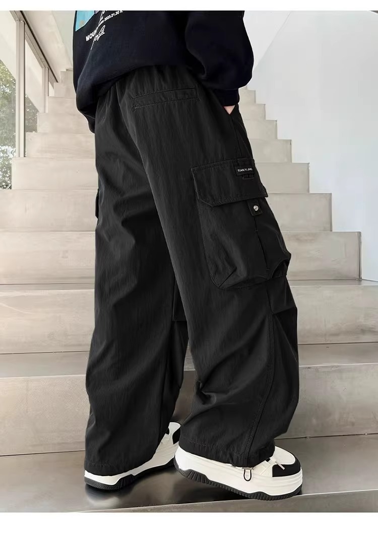 어린이 스포츠 바지 2025 봄과 가을 새로운 어린이 작업복 캐주얼 바지 소년 패션 와이드 다리 긴 바지