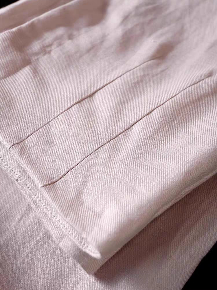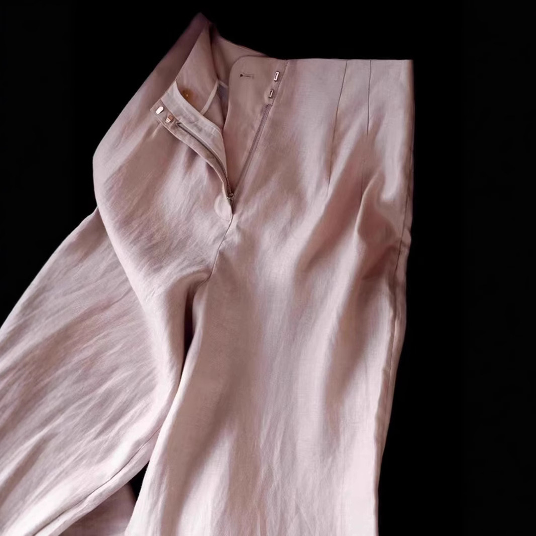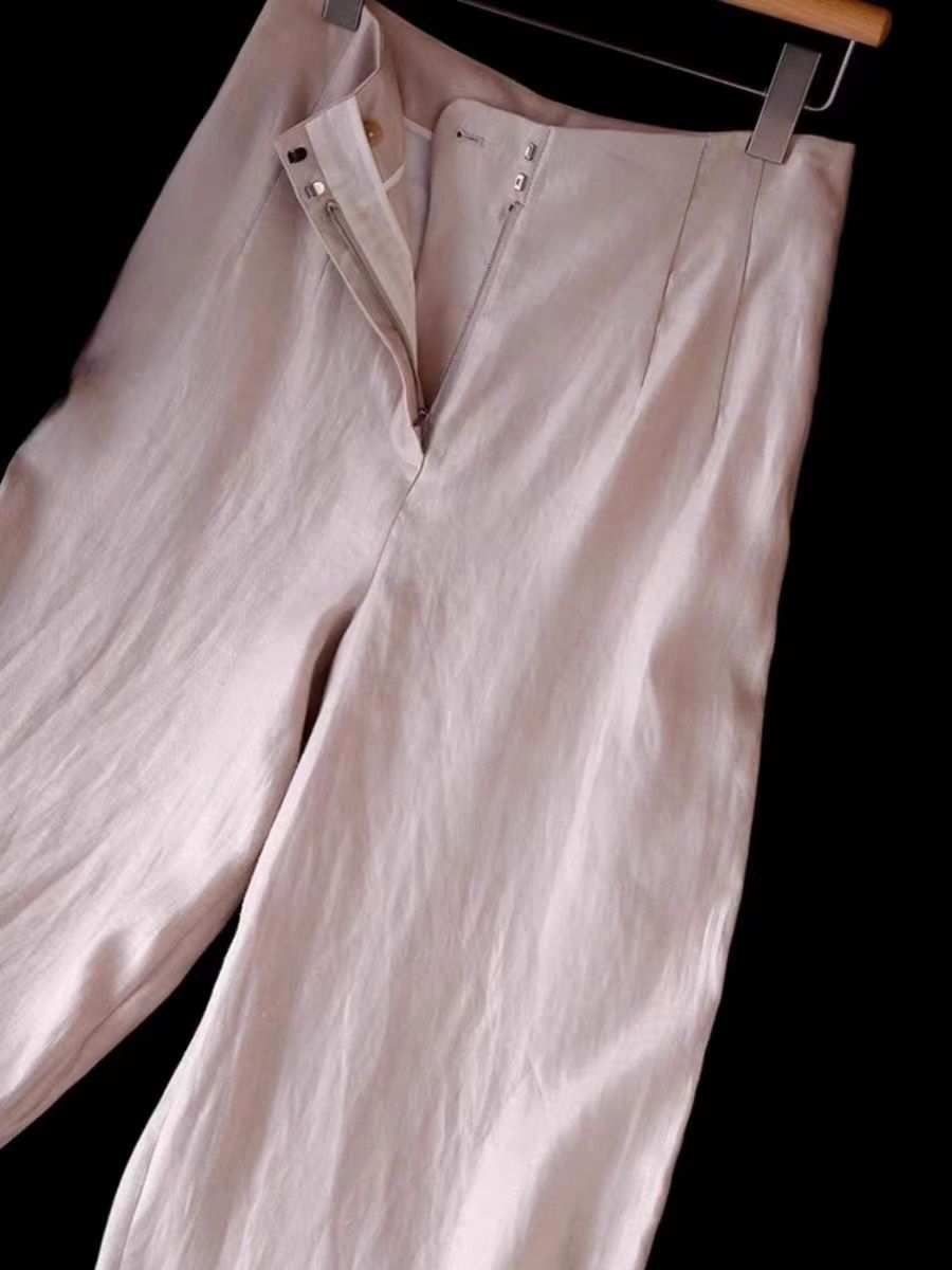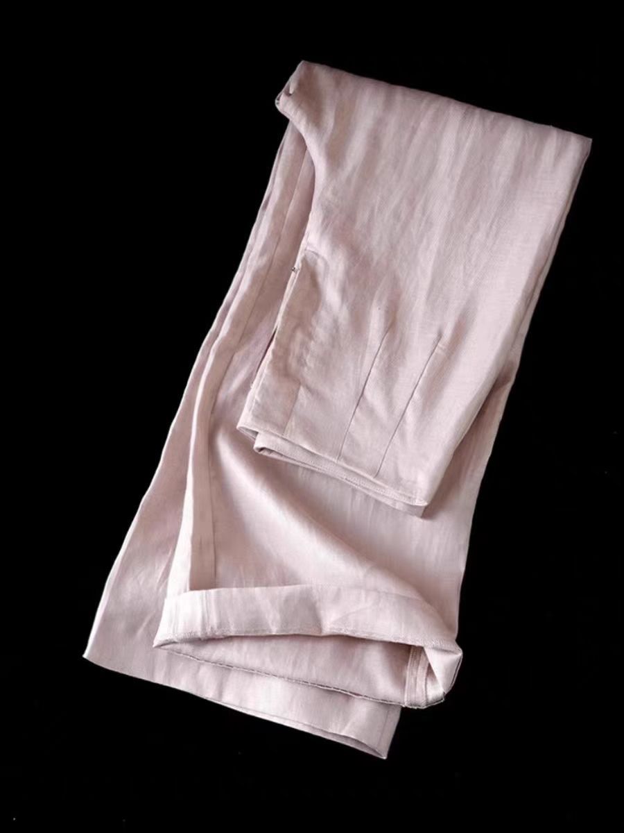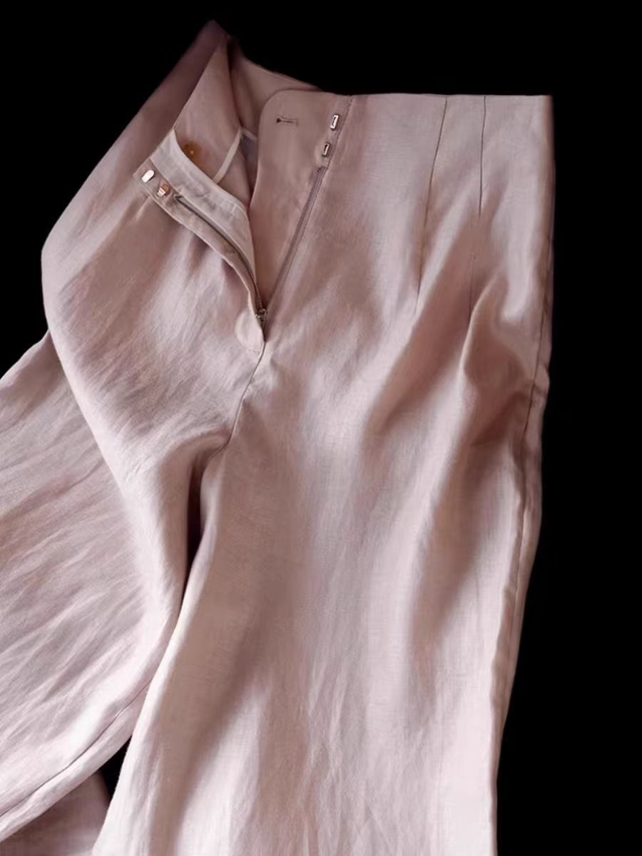 今年流行天丝亚麻淡粉色垂感直筒裤女夏季宽松舒适苎麻显瘦西装裤