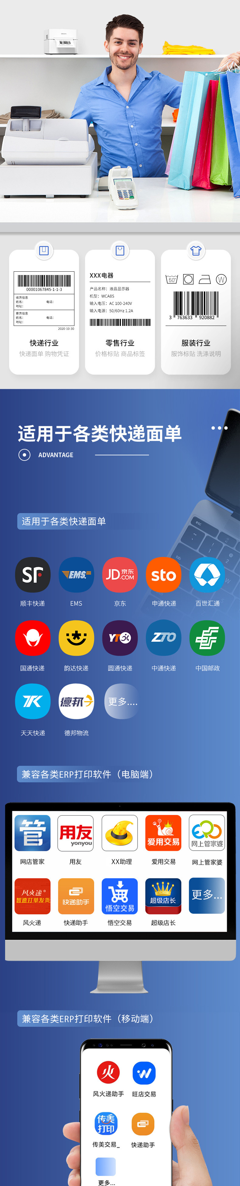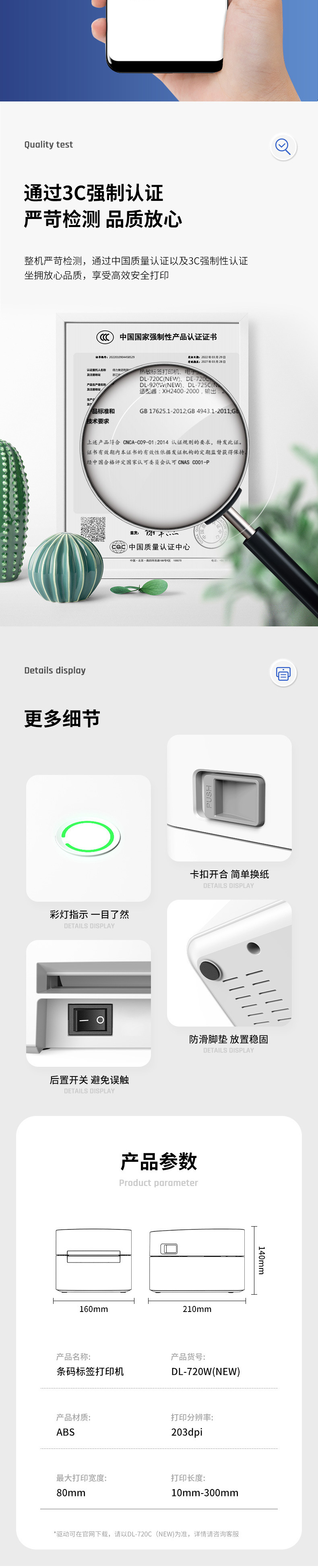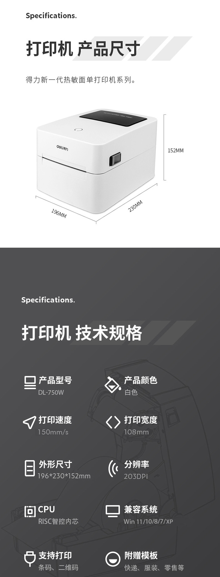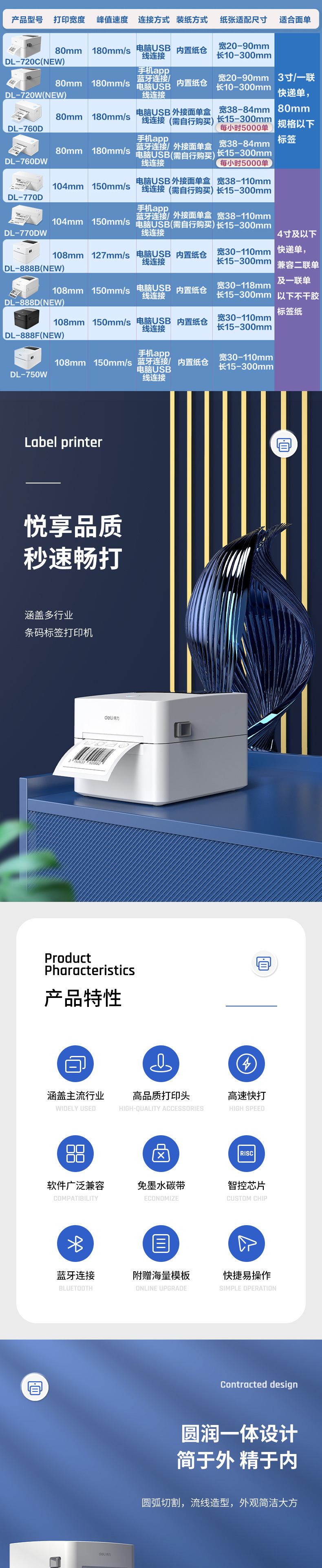 Deli DL-720W(NEW) 바코드 라벨 프린터 익스프레스 인쇄 기계 전자 인쇄 기계 도매스토어 가기