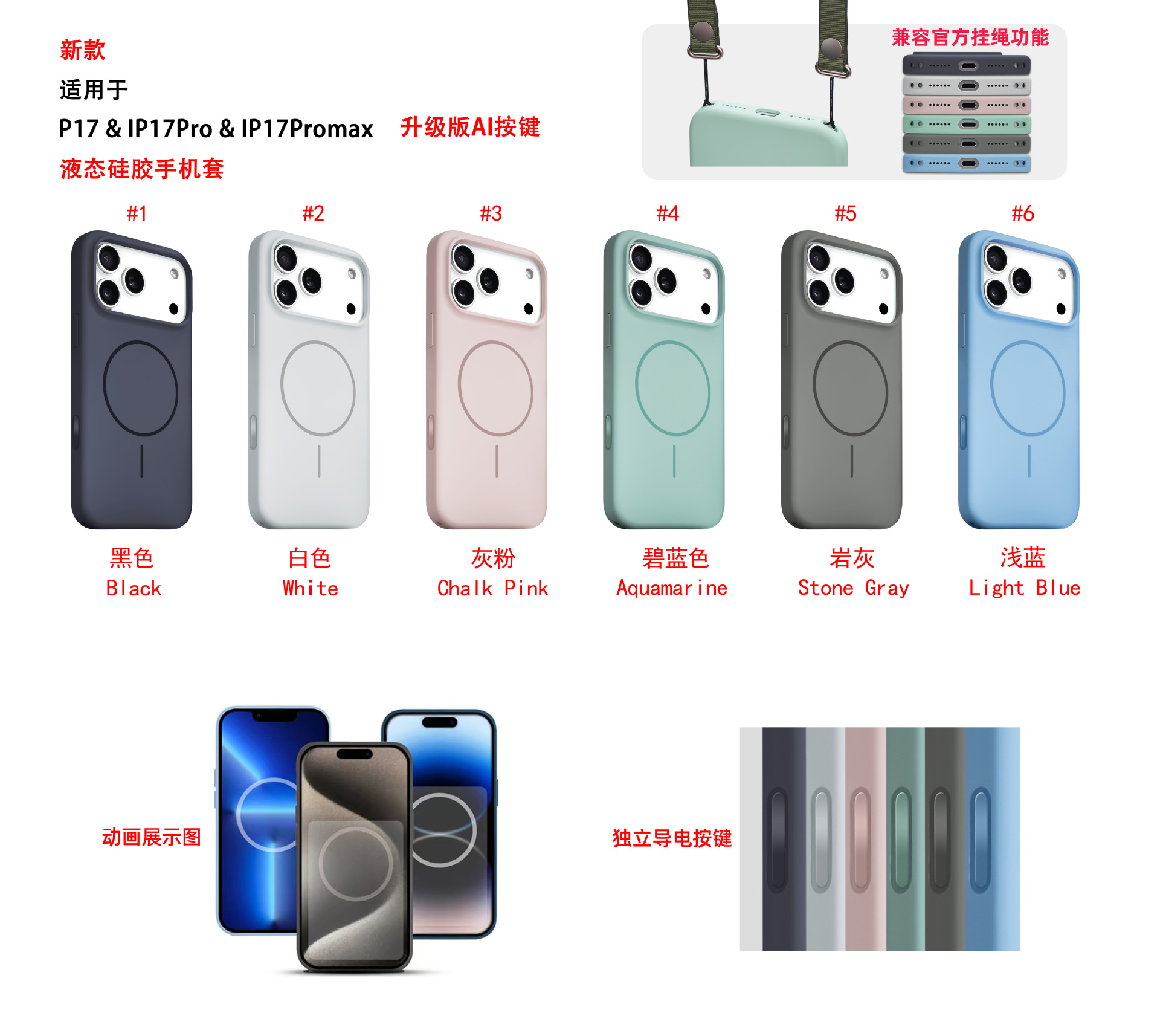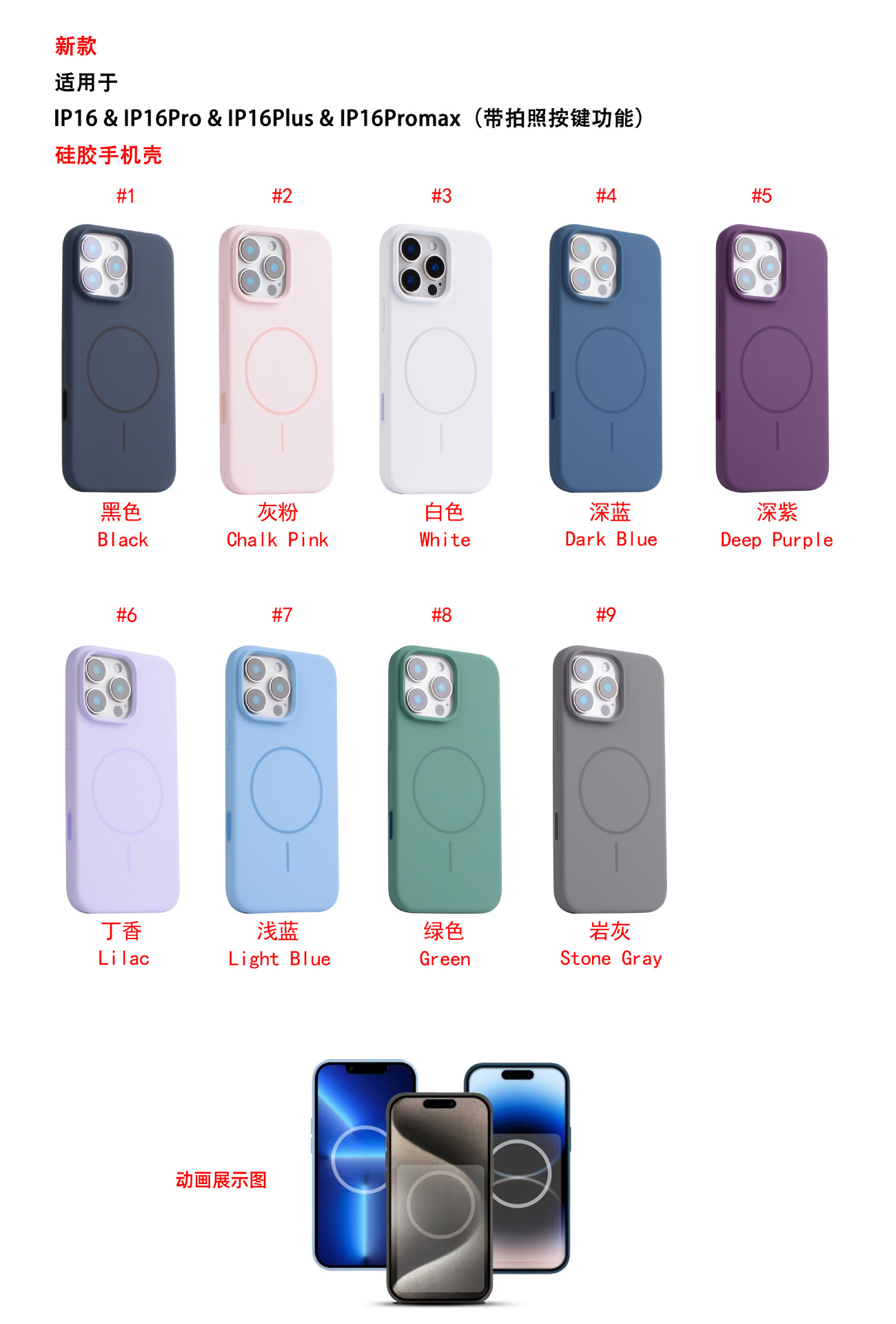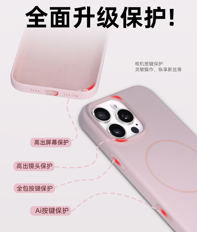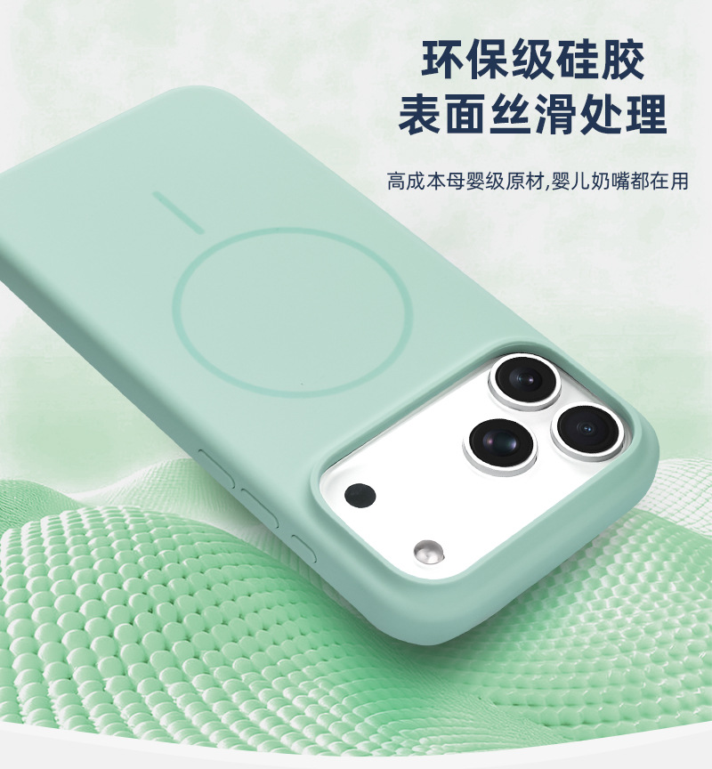 애플 아이폰 13/14/15/16/17 프로맥스 실리콘 자석 대형 홀 휴대폰 보호 케이스 풀커버 Ai 터치
