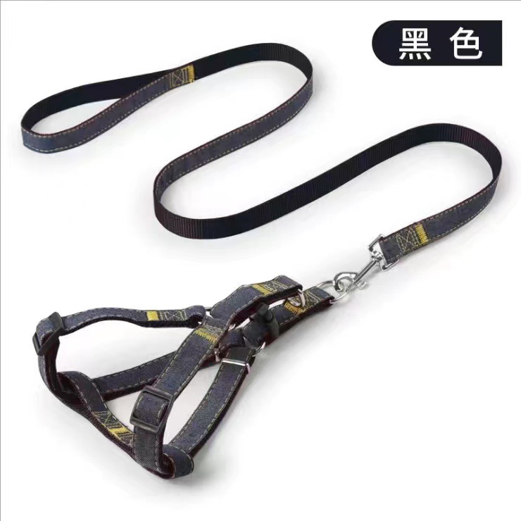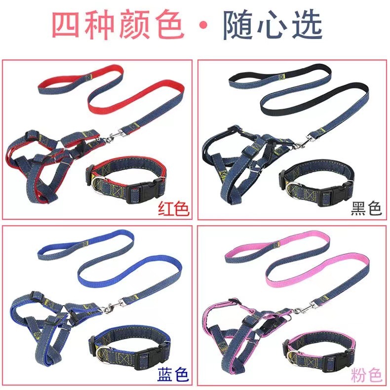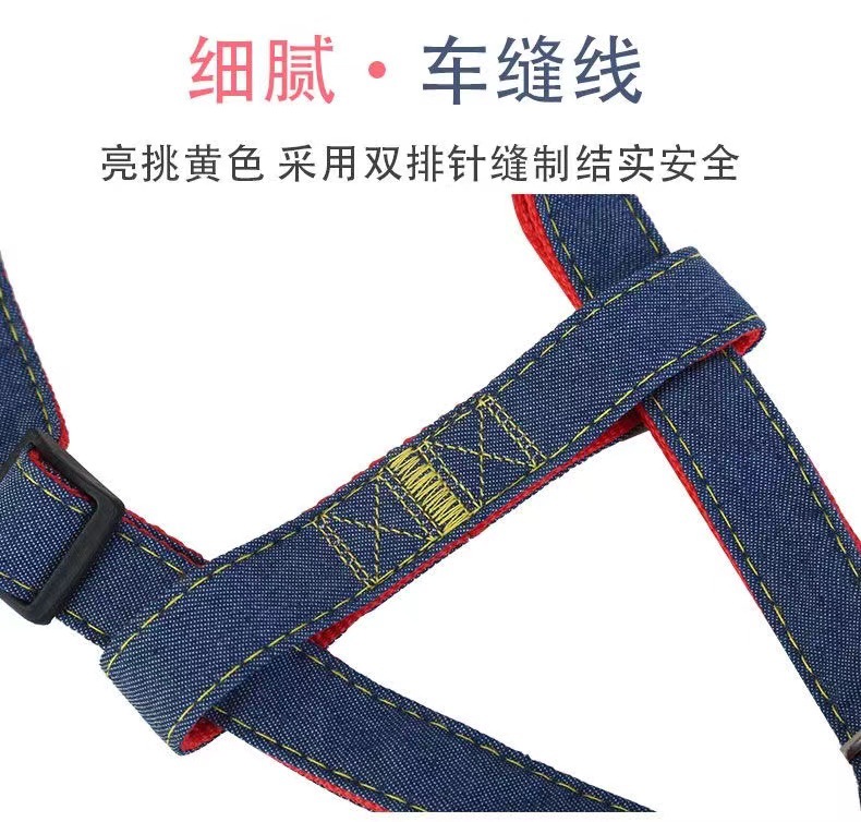 데님 개 가죽 끈 중간 및 작은 개 체인 개 로프 테디 베어 조끼 걷는 개 로프 가슴 뒤로스토어 가기