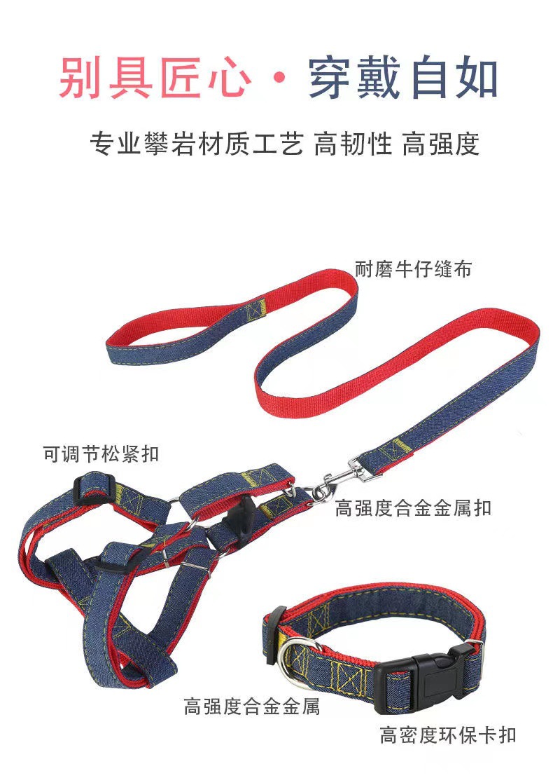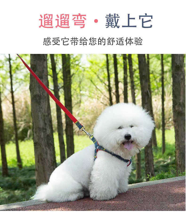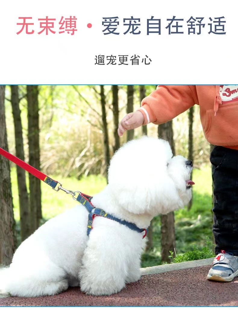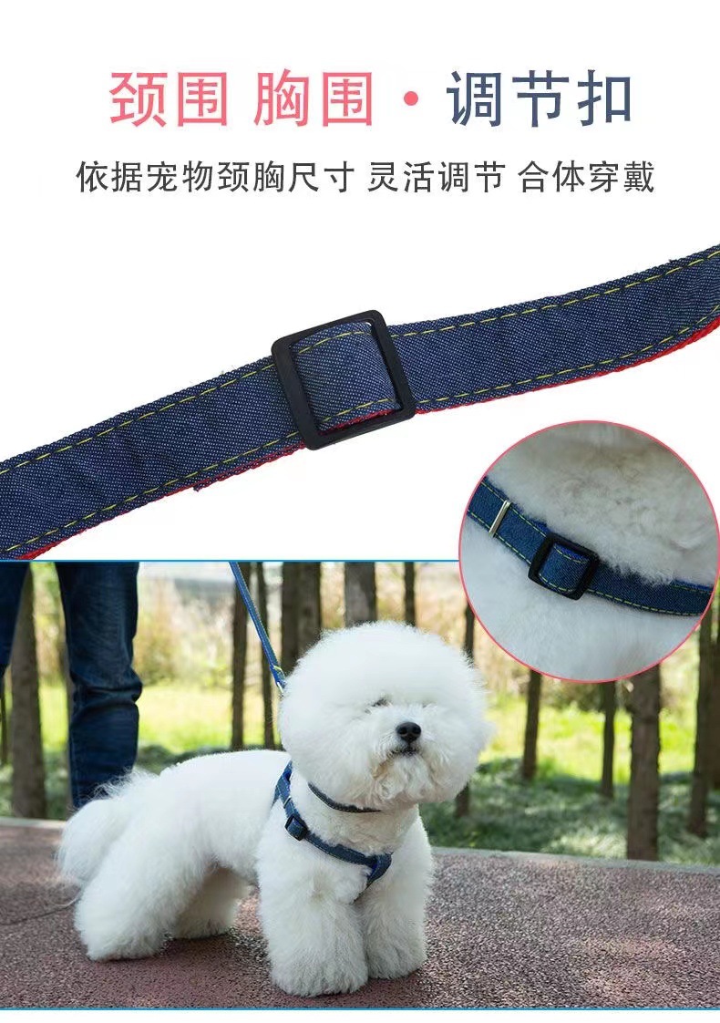 데님 개 가죽 끈 중간 및 작은 개 체인 개 로프 테디 베어 조끼 걷는 개 로프 가슴 뒤로