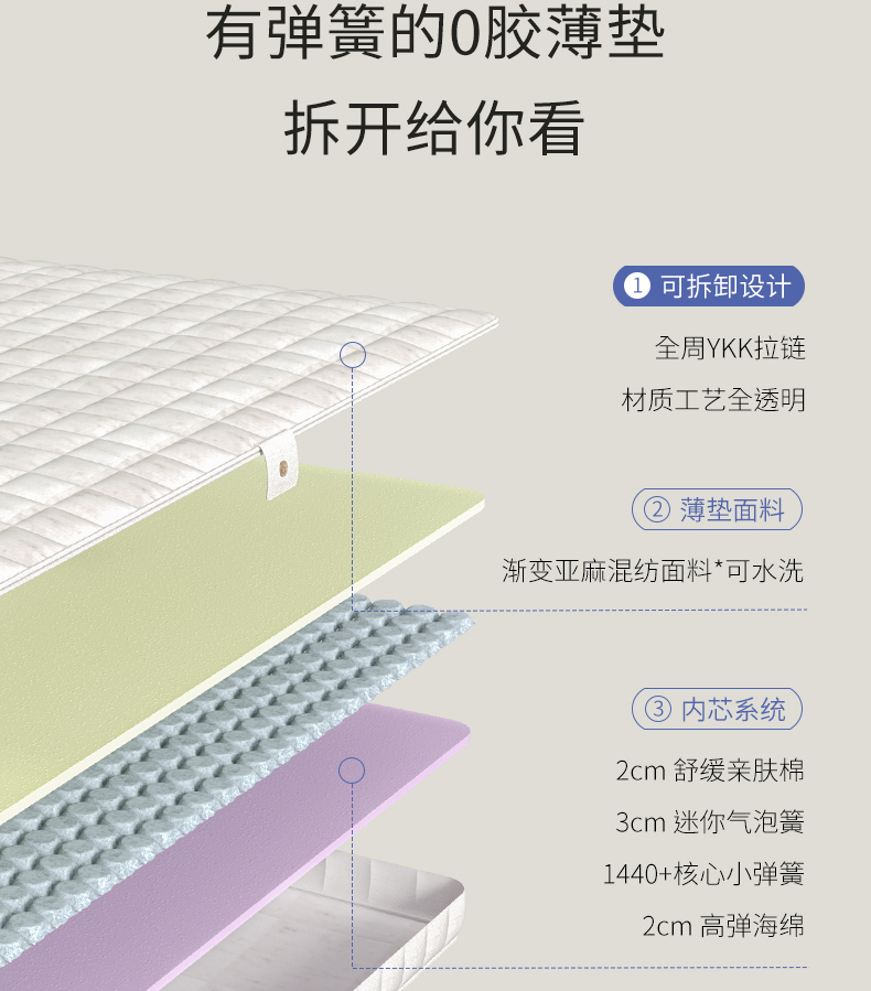 [소형 스프링 패드] Qizuo 매트리스 스프링 얇은 매트 학생 기숙사 싱글 척추 보호 메모리 폼 매트 다다미스토어 가기