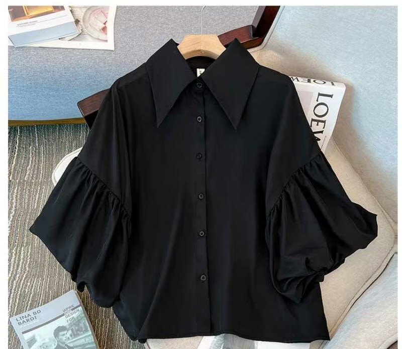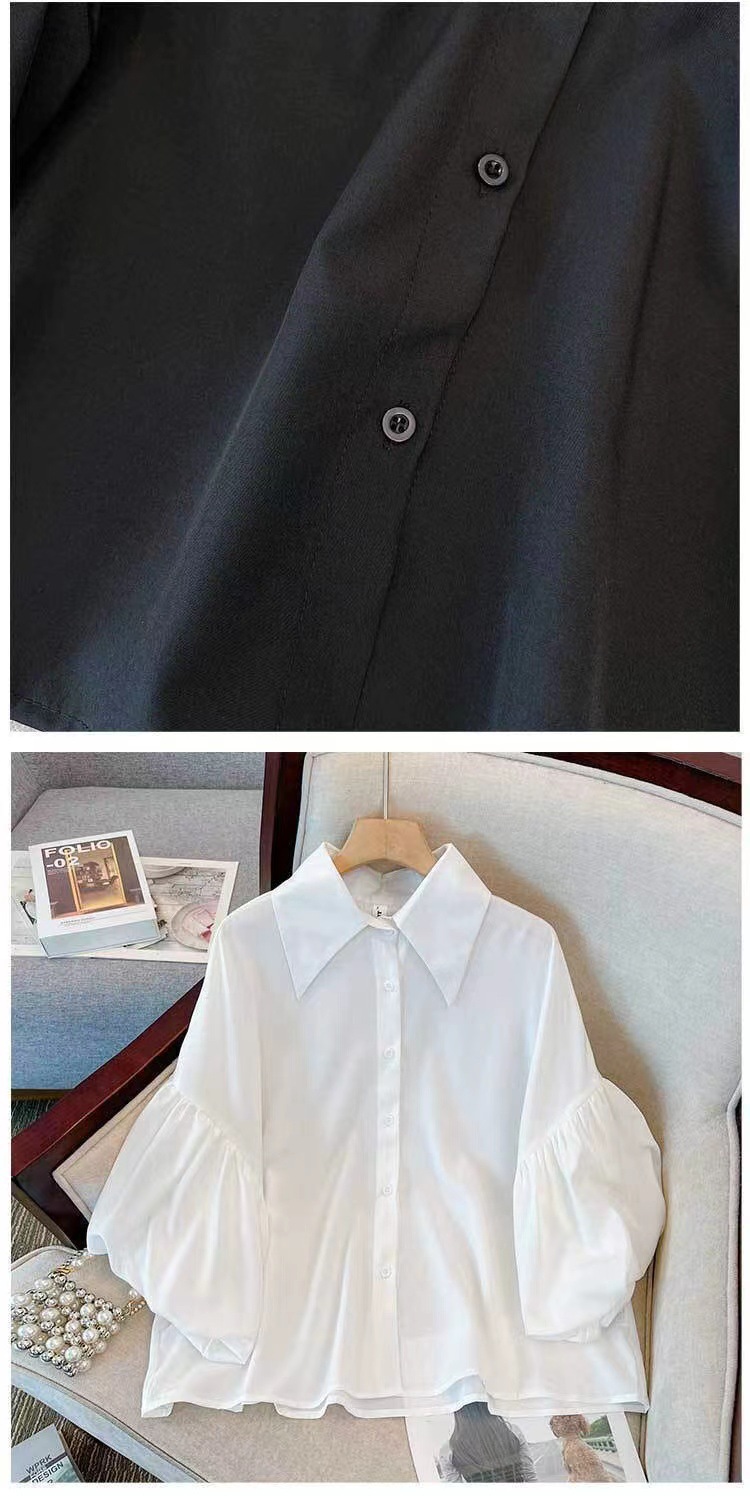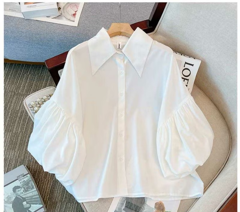 2025 크로스보더 새로운 한국 스타일 쉬폰 인형 셔츠 플러스 사이즈 여성 봄 여름 뚱뚱한 mm 랜턴 슬리브 셔츠 탑 트렌디스토어 가기