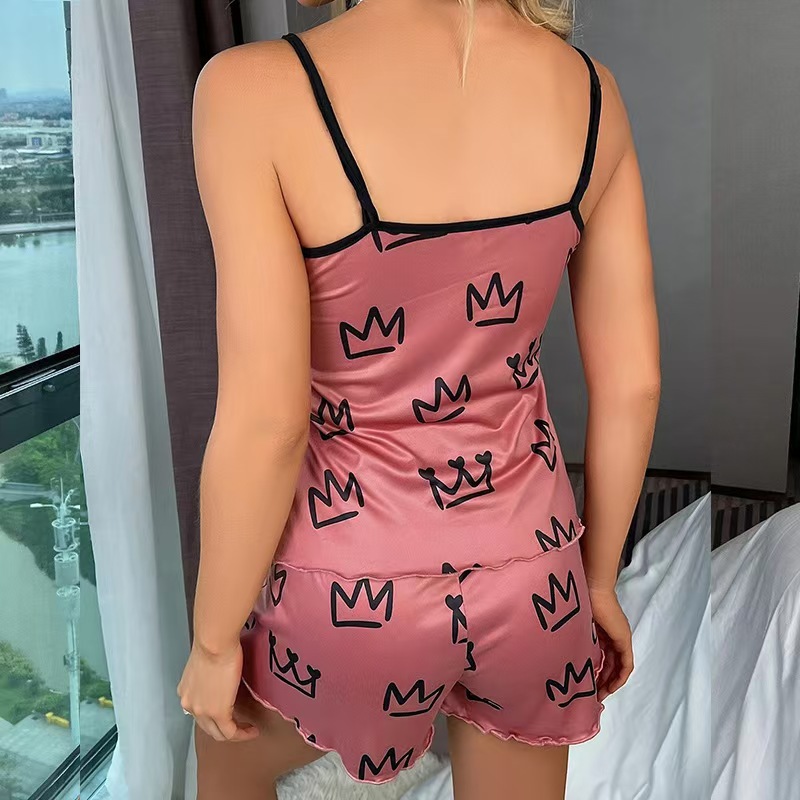유럽과 미국의 국경 간 잠옷, 섹시한 등이없는 서스펜더 스커트, 홈웨어, 얇은 통기성 잠옷, 여성용 프린트 슈트 도매스토어 가기