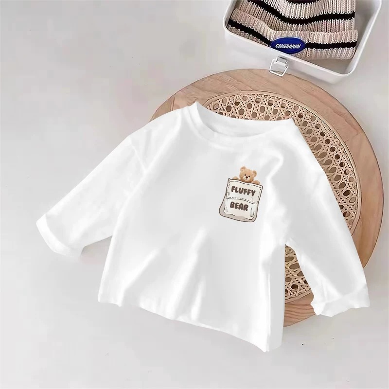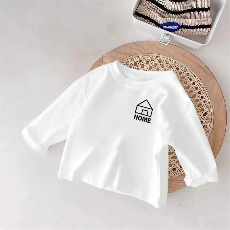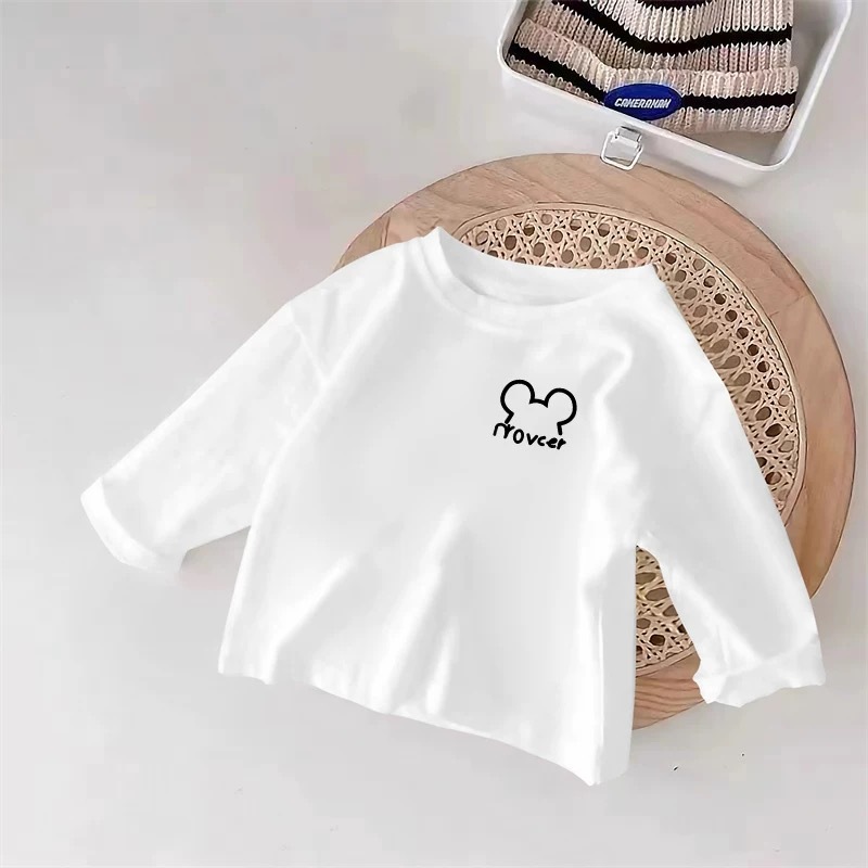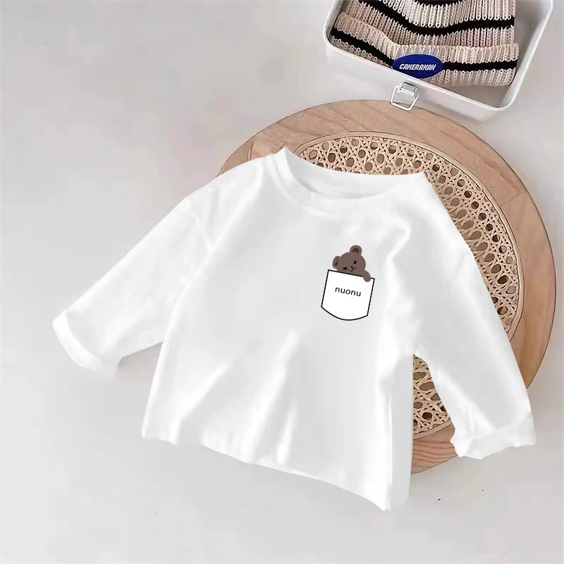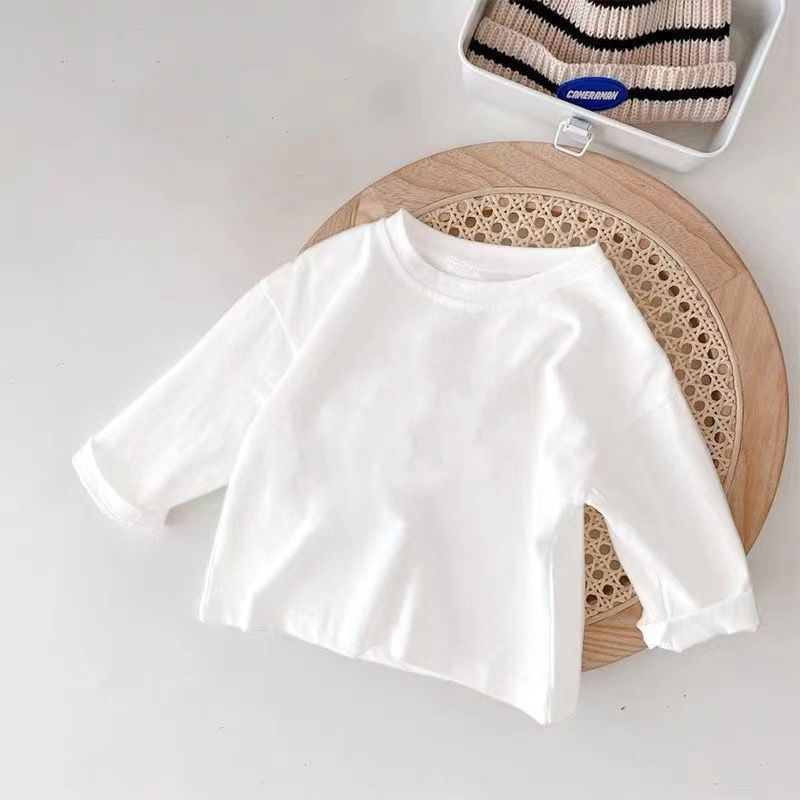 어린이 순면 봄, 가을 긴팔 새로운 스타일 흰색 티셔츠 베이비 탑 소녀 소년 바닥 셔츠 유행스토어 가기
