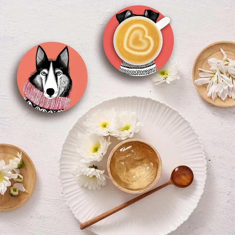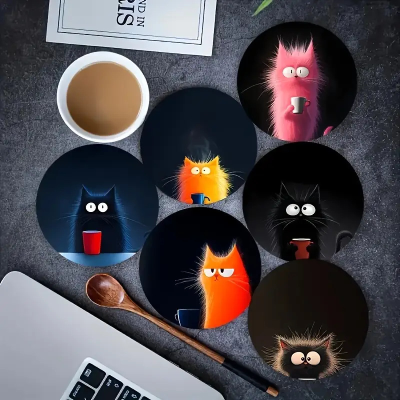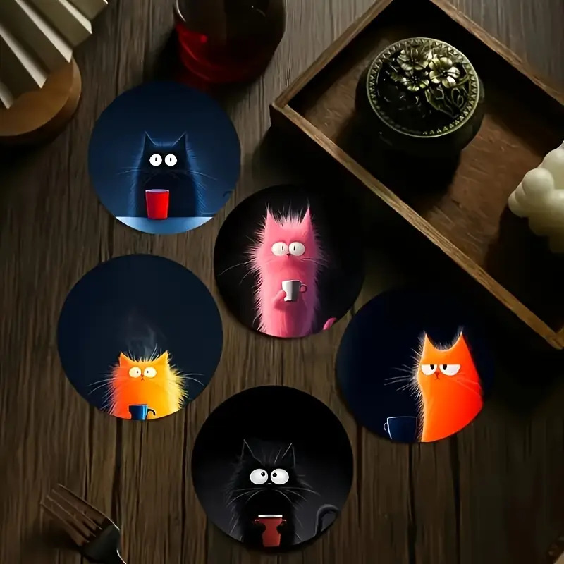 아메리칸 컨트리 스타일의 새로운 크리스마스 고양이 코스터 세트 단열 패드 UV 인쇄 테이블 매트 탁상용 플레이스 매트스토어 가기